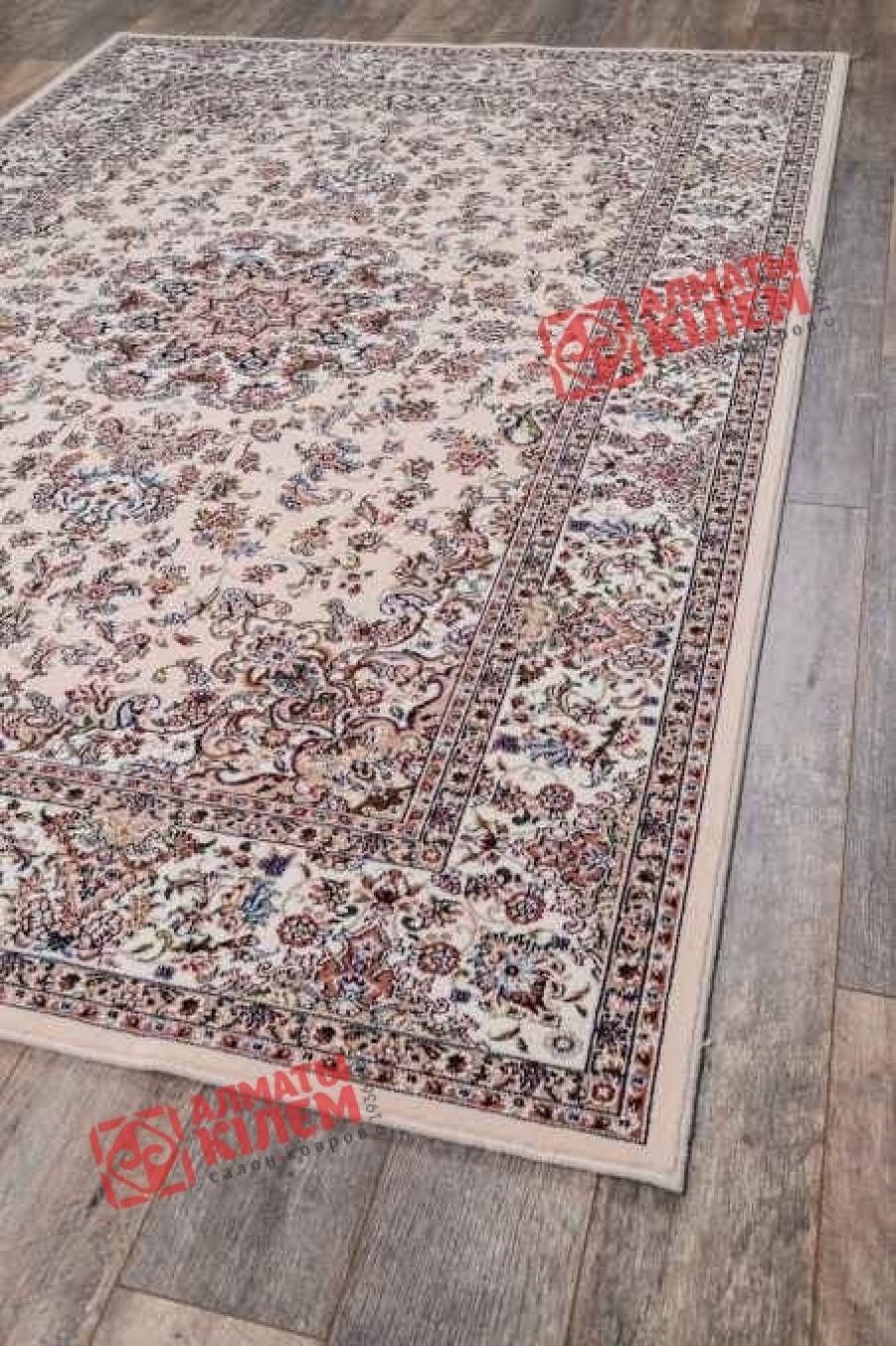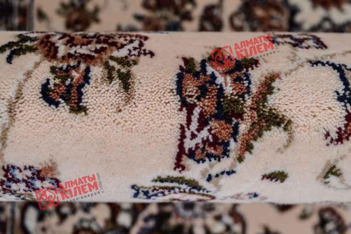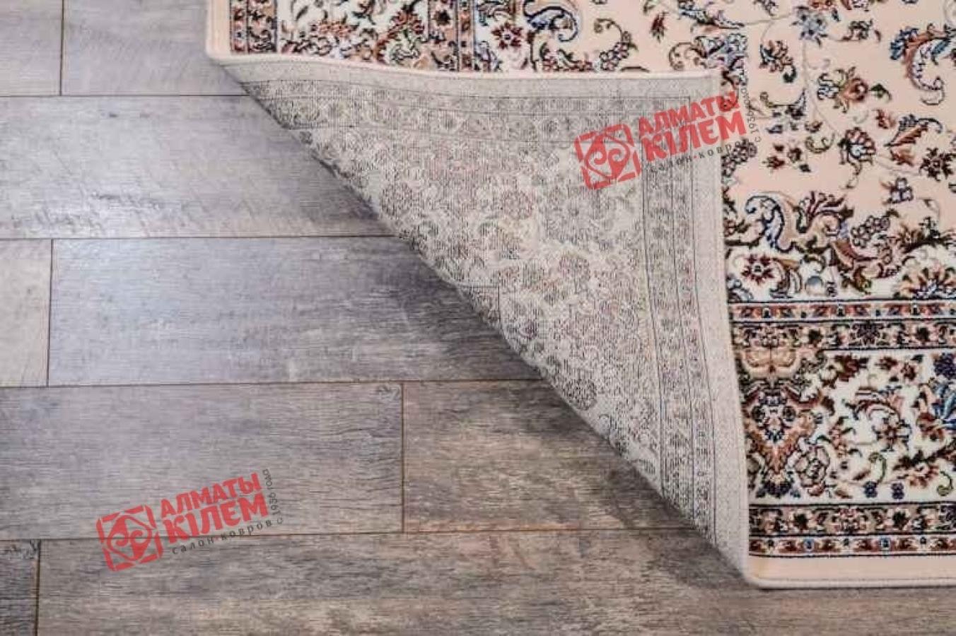 Роскошный классический ковер в бежево-кремовой палитре из коллекции «Хунну» прекрасно сочетается с аналогичного дизайна интерьерами. Он великолепно дополняет собой богатые обстановки гостиных, спален, столовых, прихожих, офисов и кабинетов. Примесь полиамида представляет собой добавку, которая повышает эксплуатационные свойства коврового покрытия. Полотно декорировано медальоном и бордюром. Оно украшено флористическим узором и листочками с витиеватыми изгибами. Средний ворс надежно сидит в подложке из хлопка, полиэстера, джута и имеет плотность 680 000 на квадратный метр, оставляя после себя исключительно приятные тактильные ощущения.
