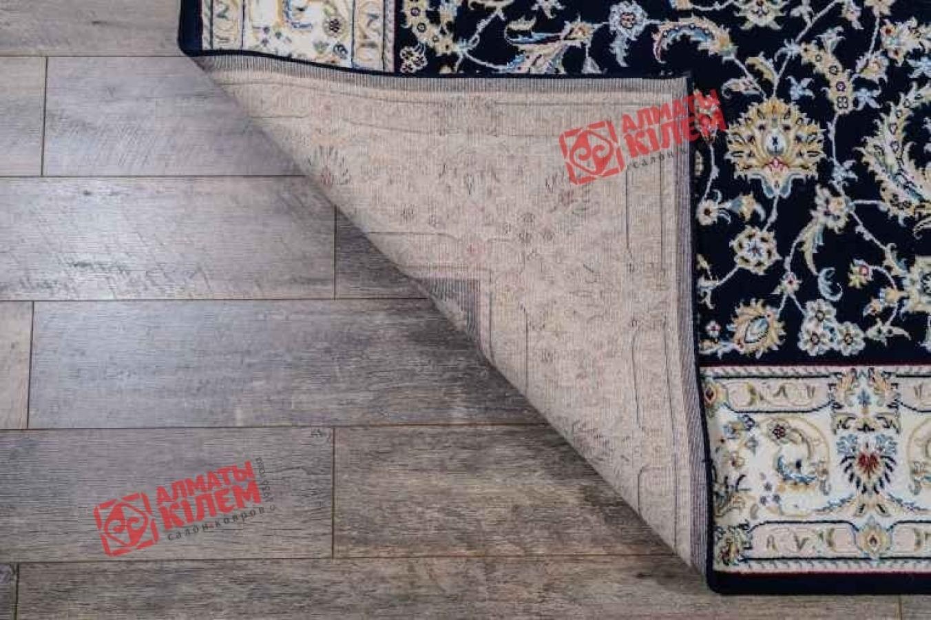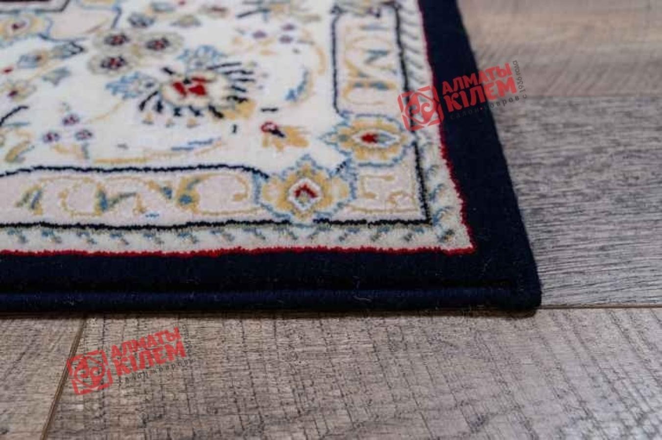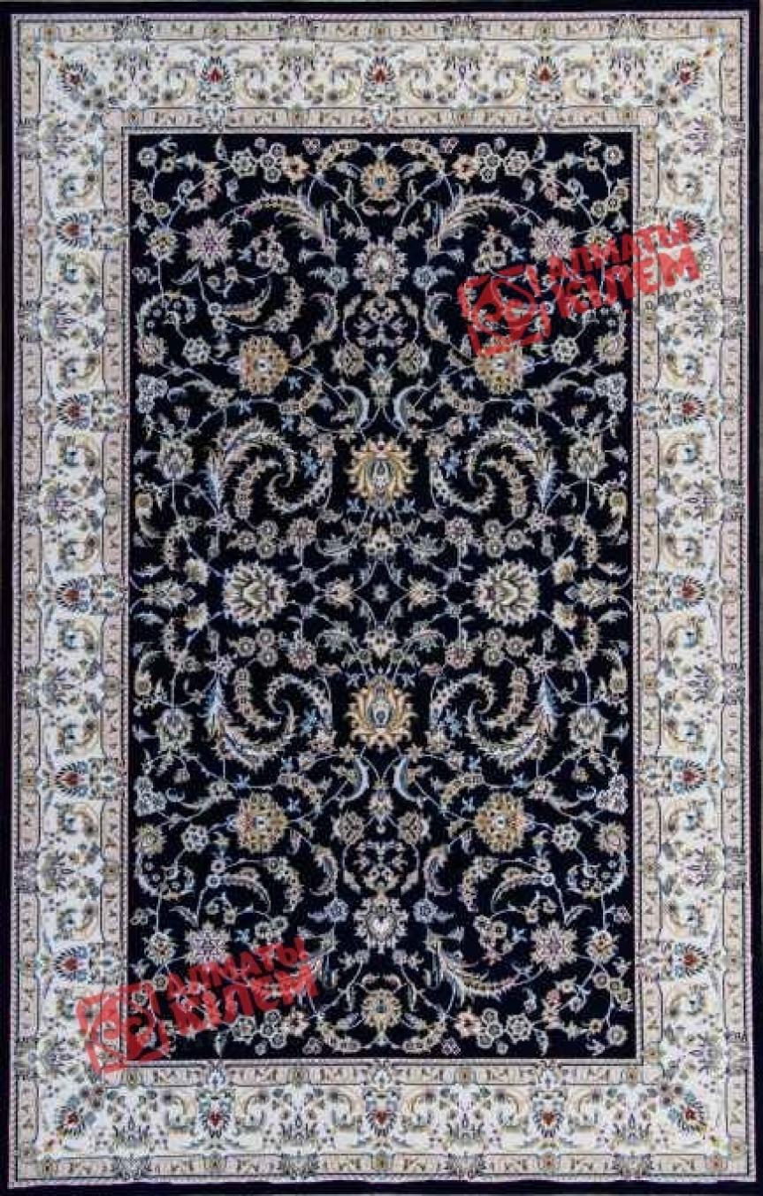Шикарный классический ковер из коллекции «Хунну» с бежево-кремовым флористическим узором на темно-синем фоне идеально вписывается в интерьере богато обставленных квартир, домов, особняков, офисов и кабинетов. Особую изысканность дизайну придают традиционные элементы, среди которых широкий светлый бордюр, обрамляющий прямоугольный медальон с цветами бежевого оттенка. Полотно имеет среднюю высоту, которое оставляет после себя исключительно приятные тактильные ощущения. Благодаря полиамиду, шерстяное изделие отличается не только внешней красотой и изысканным блеском, но и становится гораздо более устойчивым к потертостям и загрязнениям.