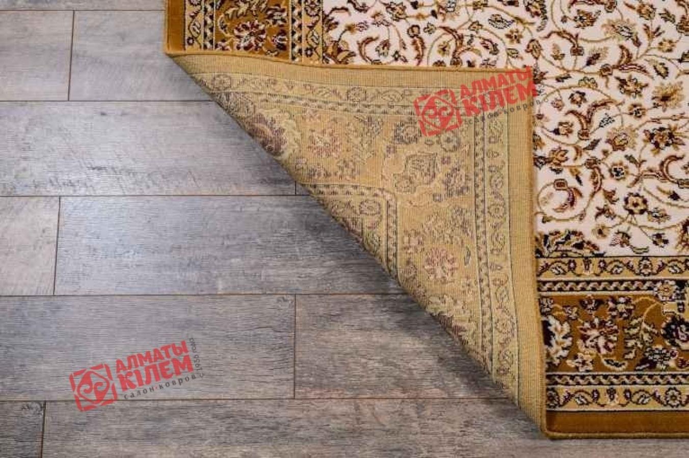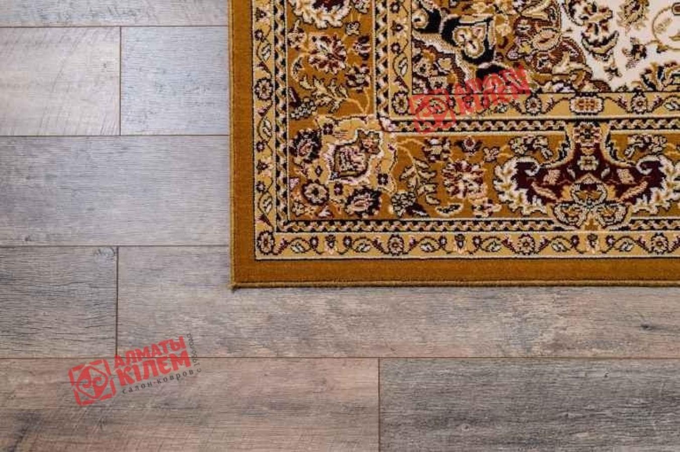 Великолепное напольное покрытие в классическом утонченном дизайне с роскошной продолговатой темной розеткой на светлом медальоне. Завершенность винтажному ковру придает широкий бордюр, оттенок которого перекликается с центральным рисунком. Полотно смотрится великолепно не только в домашних, но и в офисных интерьерах. Оно выполнено в кремовой и бежевой палитре, имеет достаточную плотность и средний ворс. Изделие оставляет после себя исключительно приятные тактильные ощущения. Примесь полиамида придает шерстяному изделию устойчивость к износу, а также к истиранию, делает покрытие менее марким и более простым в уборке.