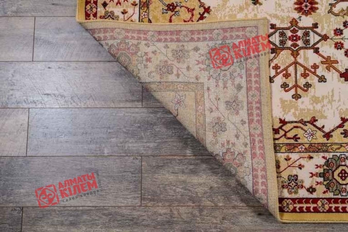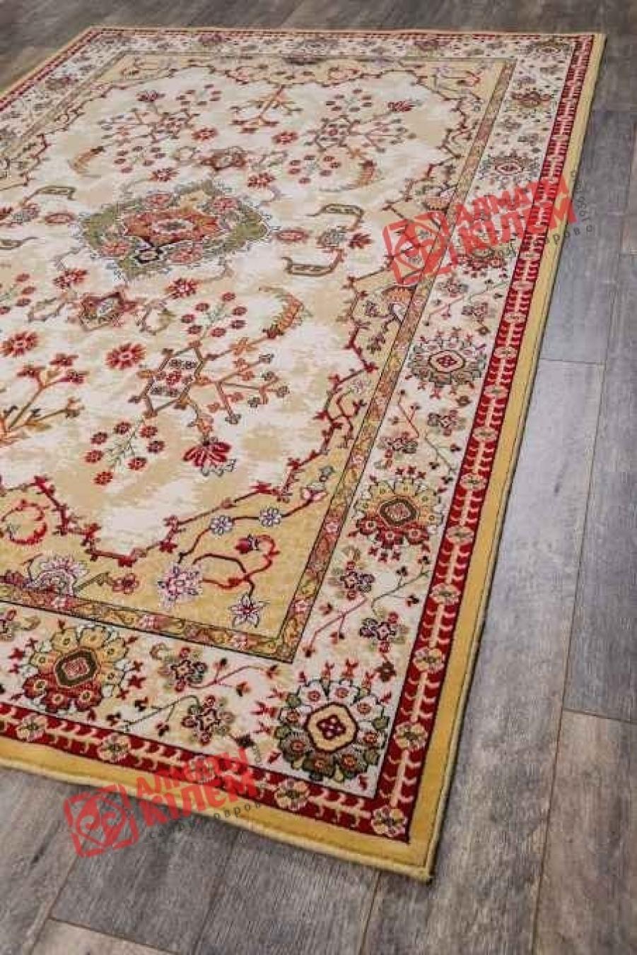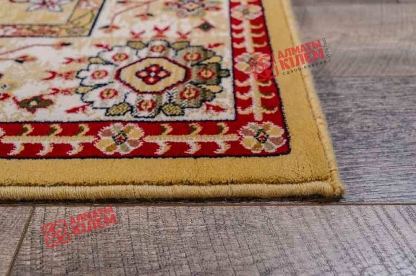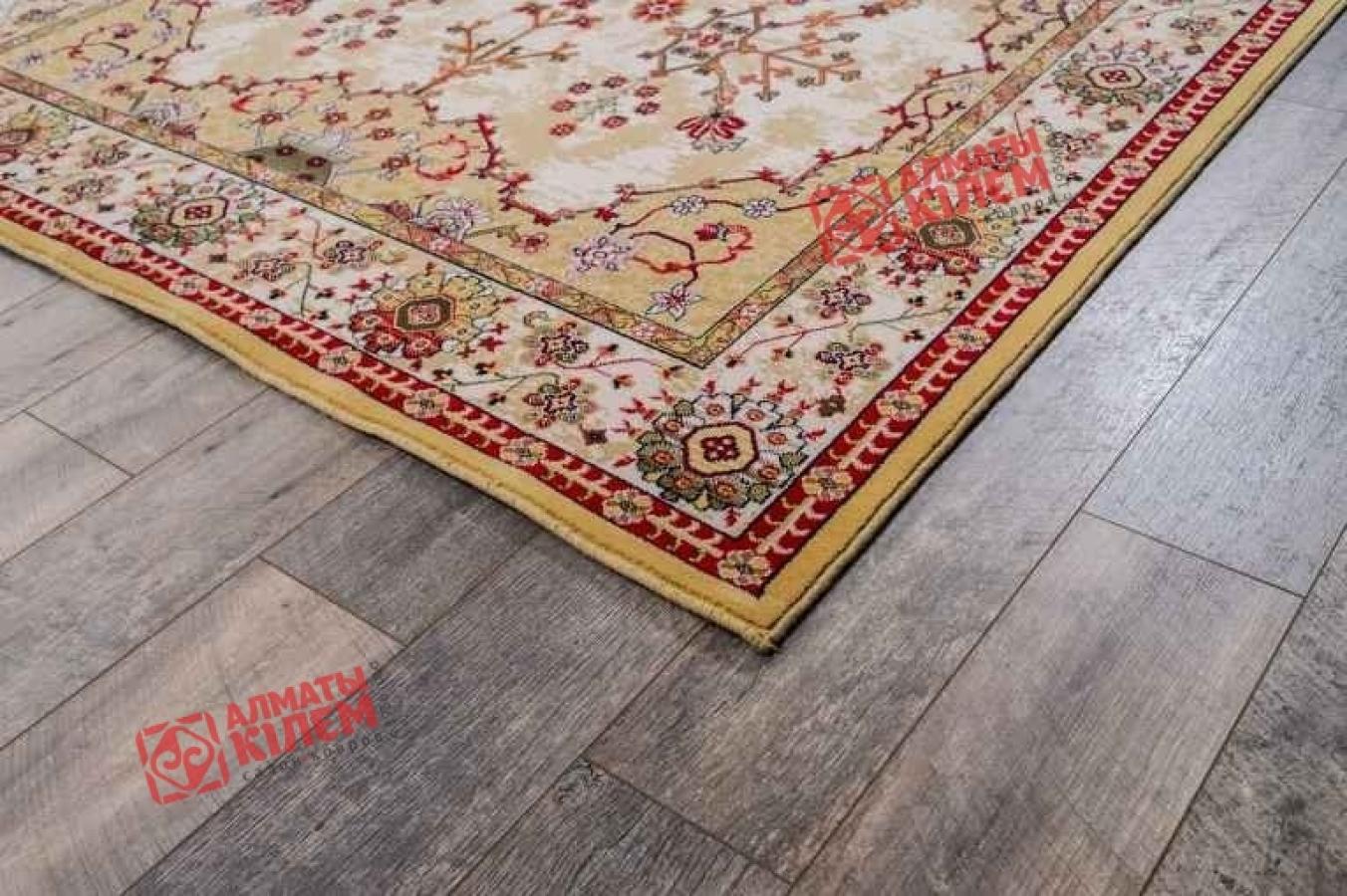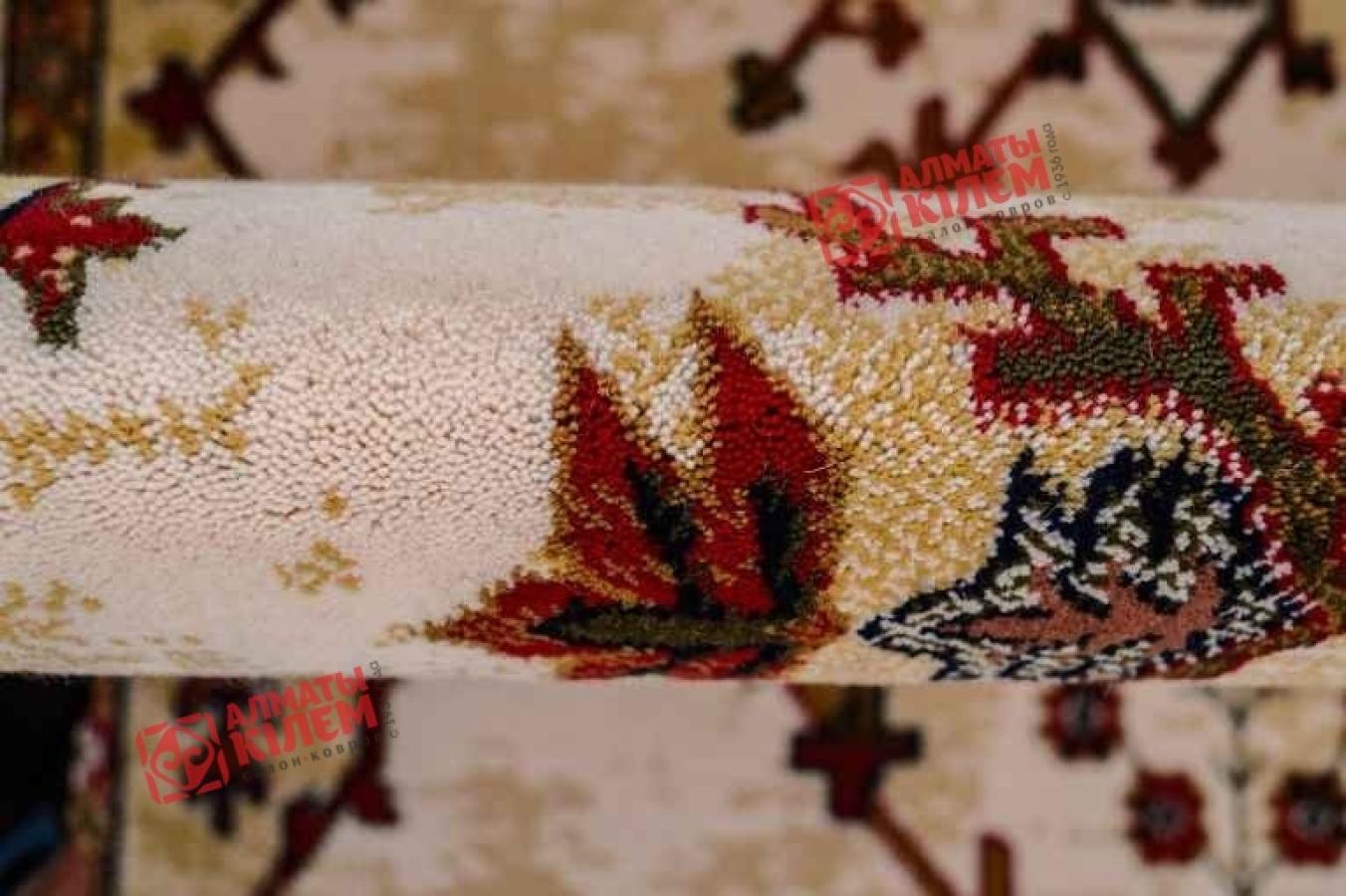 Классический роскошный винтажный ковер монгольского бренда ErdenetCarpetпредставляет собой модель с этническими мотивами. Полотно выполнено из шерсти с добавлением полиамида, прекрасно подходит для пола в комнатах с высокой проходимостью. Примесь повышает износоустойчивость, уменьшает степень восприятия к загрязнениям, придает изысканный легкий блеск. Покрытие прекрасно вписывается в гостиные, спальни, столовые, прихожие, офисы и кабинеты. Особую красоту ковру придает медальон с розеткой в виде орнамента, сочетающего в себе зеленый и красный цвет, окруженного витиеватыми стеблями. Завершает дизайн бордюр в более темных от основного цвета оттенках.