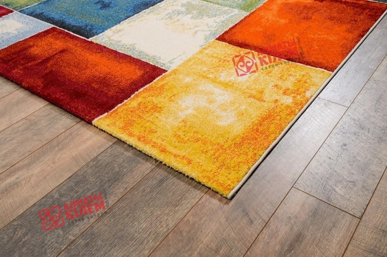 Ультрамодный — идеальное слово для описания представленной модели ковра. Полотно состоит из квадратов и прямоугольников ярких и насыщенных оттенков — зеленый, синий, оранжевый, красный, желтый. Каждый смотрится словно отдельный, покрытый красками холст. Некоторые места фрагментов слегка потерты. Купить ковер на пол с доставкой можно абсолютно для любой комнаты в доме.