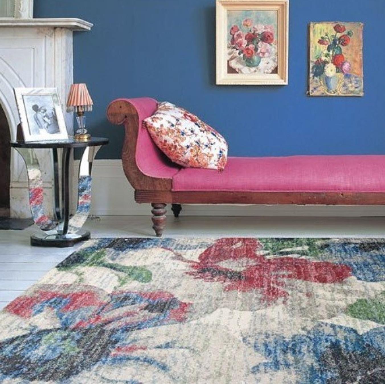 Великолепный ковер от бренда «RAGOLLE RUGS N.V.» смотрится утонченно и изысканно. Он сочетает сразу два популярных направления дизайна — цветочный и современный. Флористический мотив занимает практически всю поверхность. Красно-белые, сине-черные, бело-синие цветы с огромными лепестками почти лишены видимых очертаний. Прямоугольный палас со средним ворсом оставляет после себя самые приятные тактильные впечатления.