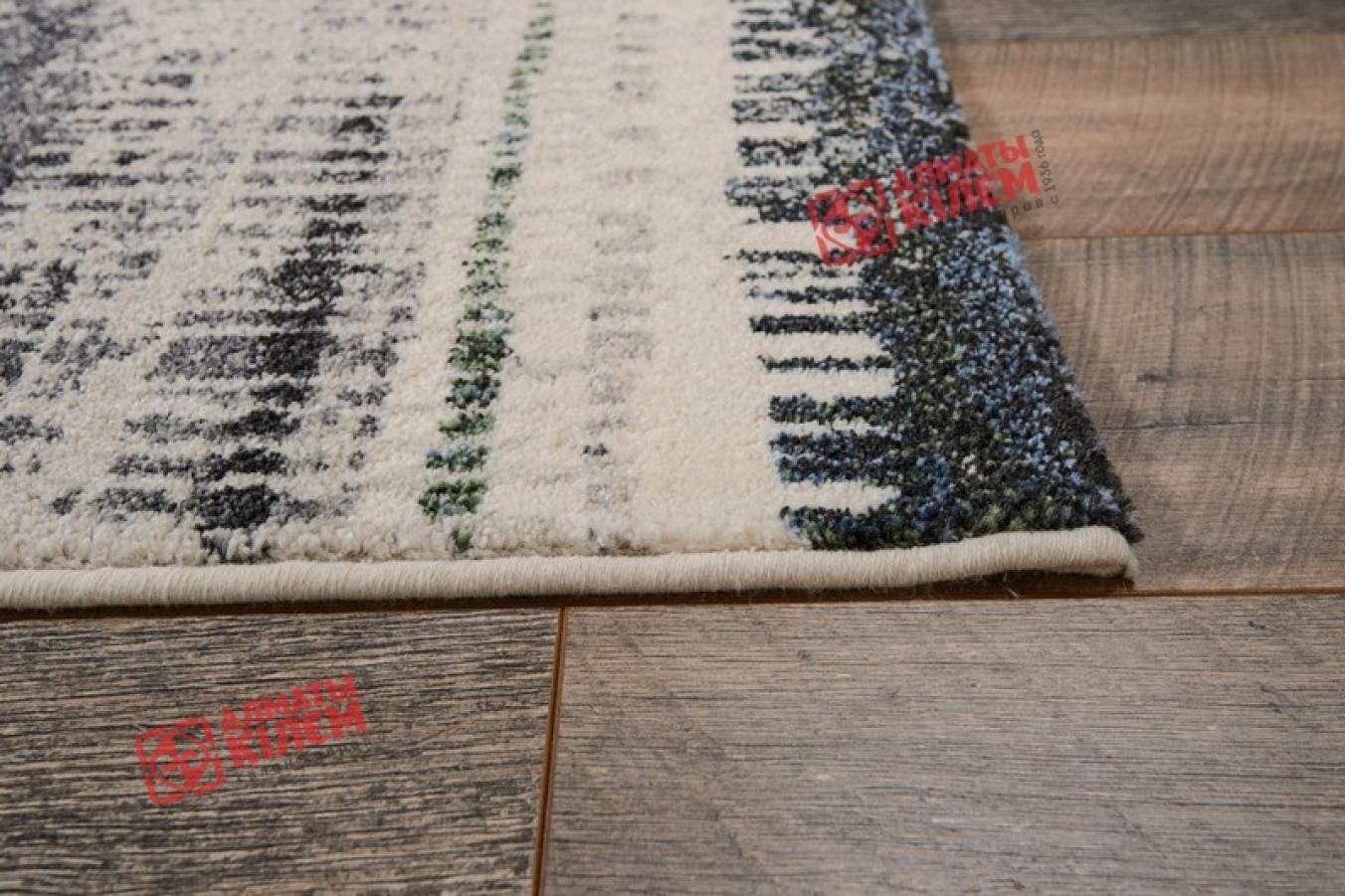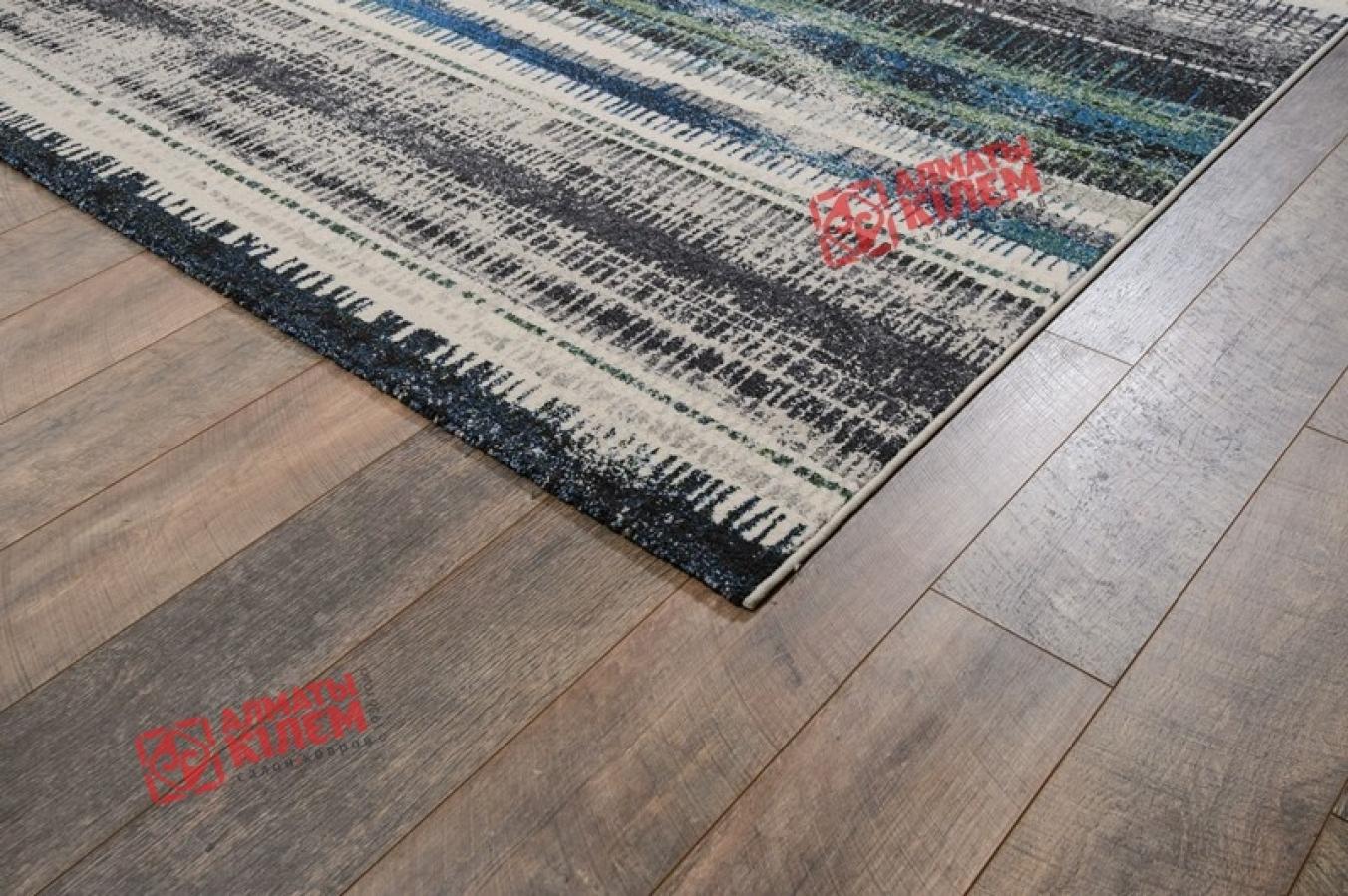 Оригинальный бельгийский ковер обязательно следует купить с доставкой из Алматы-Кілем тем, кто ищет не просто напольное покрытие, а декор, способный подчеркнуть уникальность обстановки. Выполнен ковер в современном стиле и цветовом решении — мультиколор. Узор представлен полосками различного оттенка с преобладанием синего и серого. Они покрывают собой бежевый фон и перемежаются широкими и узкими. Рисунок верха и низа симметрично повторяется.