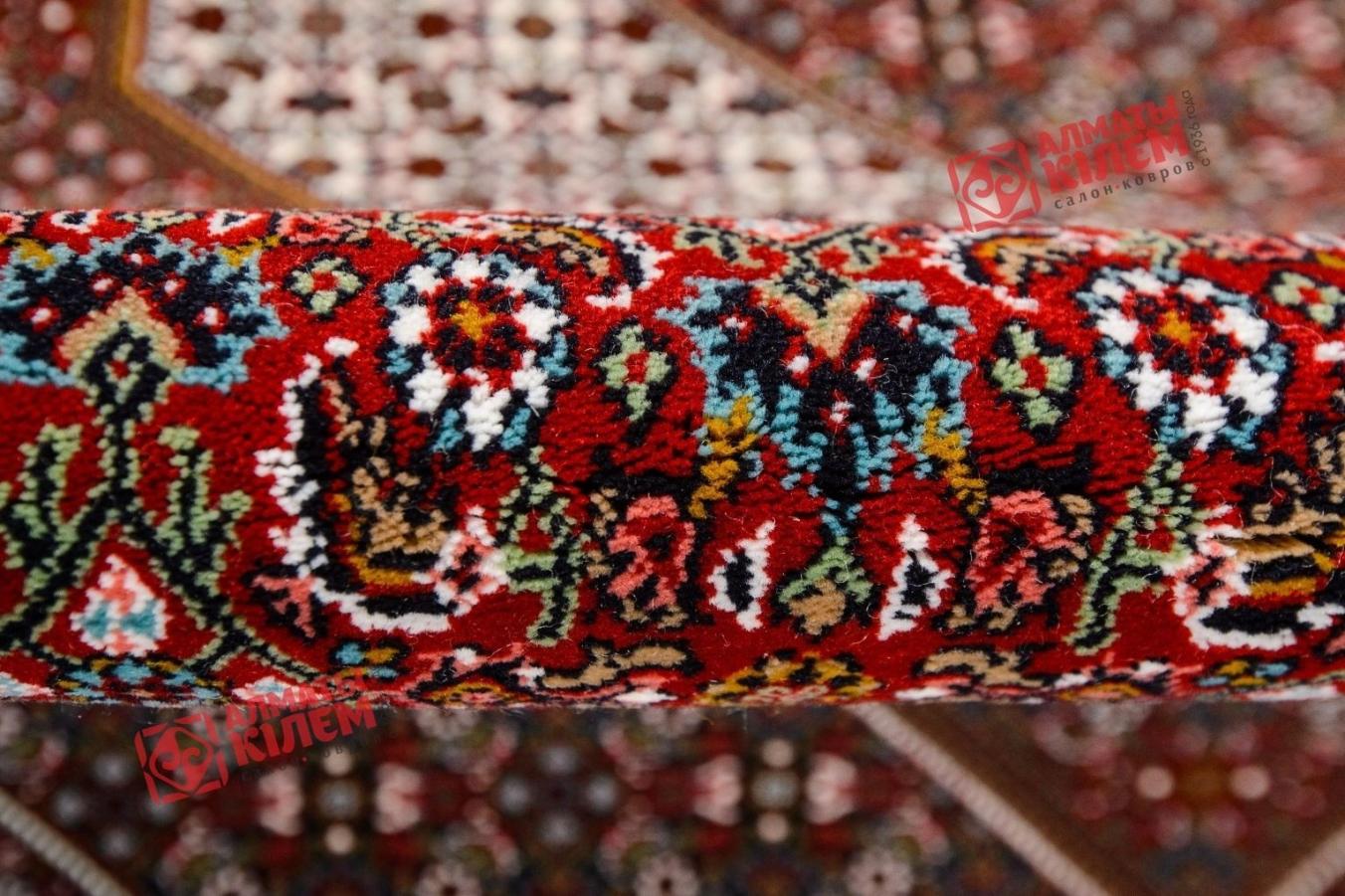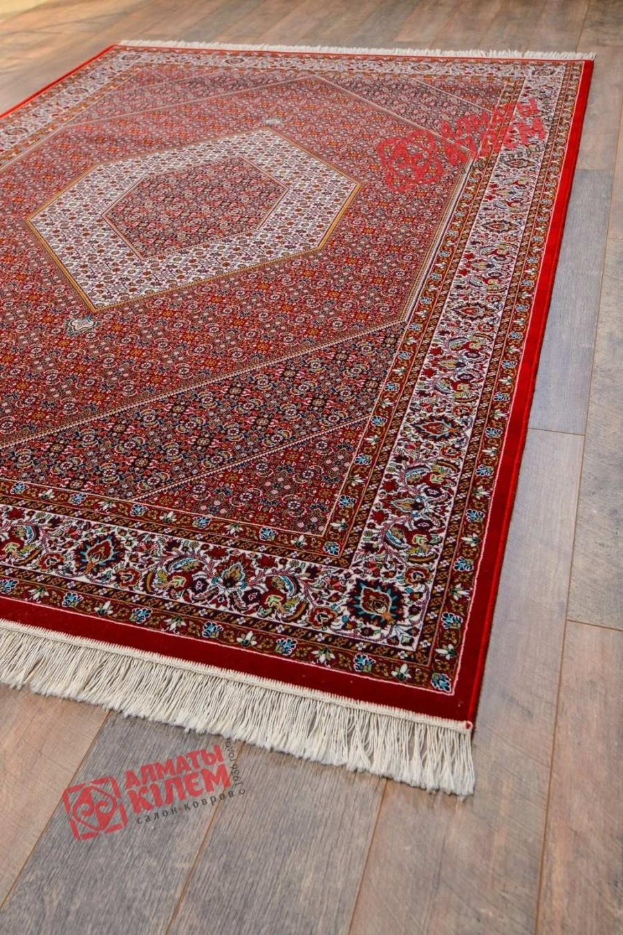 Шикарный персидский ковер красного цвета придется по вкусу даже людям с самым взыскательным и утонченным вкусом. Он сочетает в себе вековые традиции и ни с чем несравнимое умение создавать лучшие в мире ковры. Красный символизирует собой роскошь, богатство, стремление быть первым. Изысканный классический узор и геометрия центральной розетки в виде ромба, являющегося лейтмотивом всей концепции дизайна. Он состоит из трех фигур. Центральная красная с белым рисунком сменяется светлой контрастной и вновь повторяется в следующей. Узор завершает ромбовидная рамка и три прямоугольные по краям геометричного ковра. Это придает ковру строгости и утонченности, поэтому он отлично подходит даже для кабинетов и офисов.