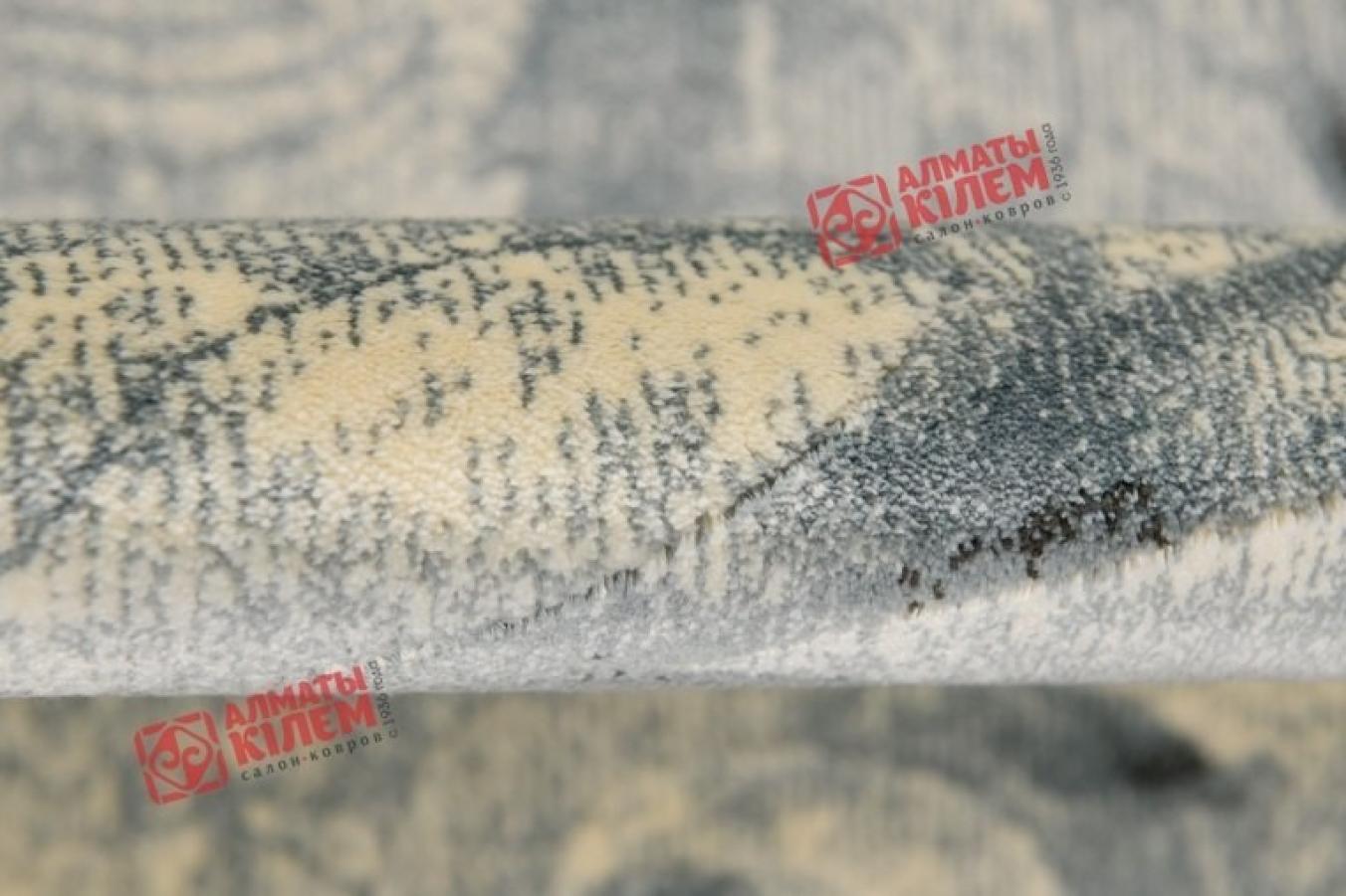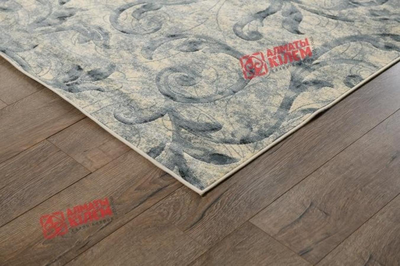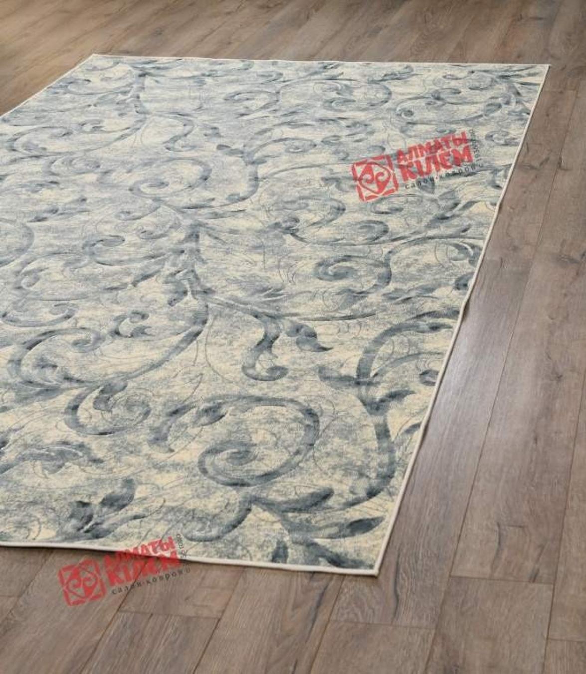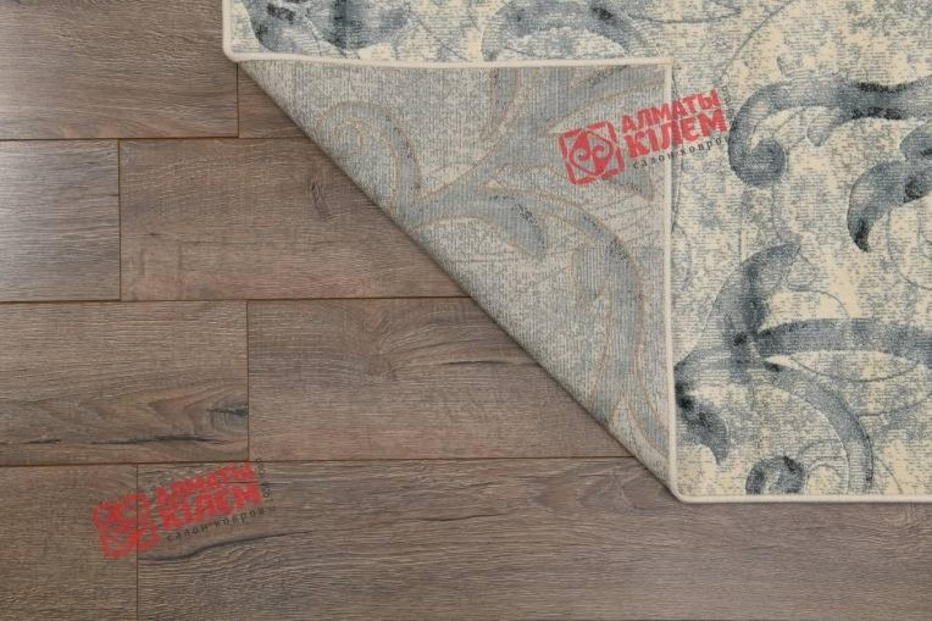 Изысканное напольное покрытие в неоклассическом стиле станет украшением не только классических, но и современных интерьеров гостиных, спален, столовых, прихожих, кабинетов и офисов. Ковер выполнен из вискозы — доступного аналога натурального шелка. Ворсинки средней высоты надежно вплетены в основе из хлопка и джута. Мотив цветочного ковра серебристо-голубого оттенка на бежевом фоне смотрится невероятно роскошно. Рисунок и палитра универсальны. Они идеально сочетаются с монохромной и яркой гаммой.