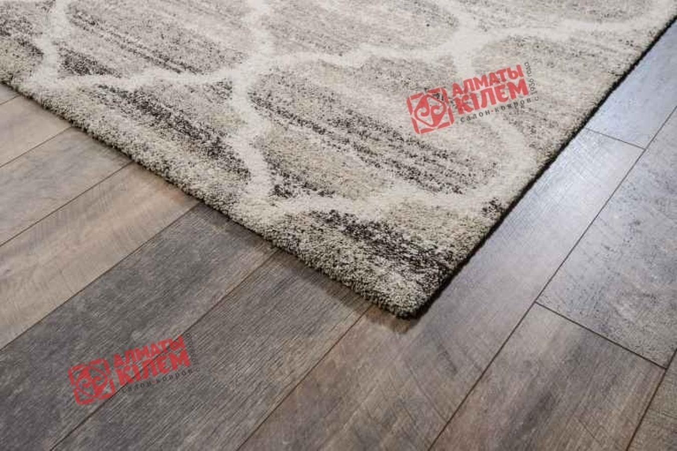 Он покрывает собой всю поверхность ковра и эффектно выделяет основной белый цвет ворса.