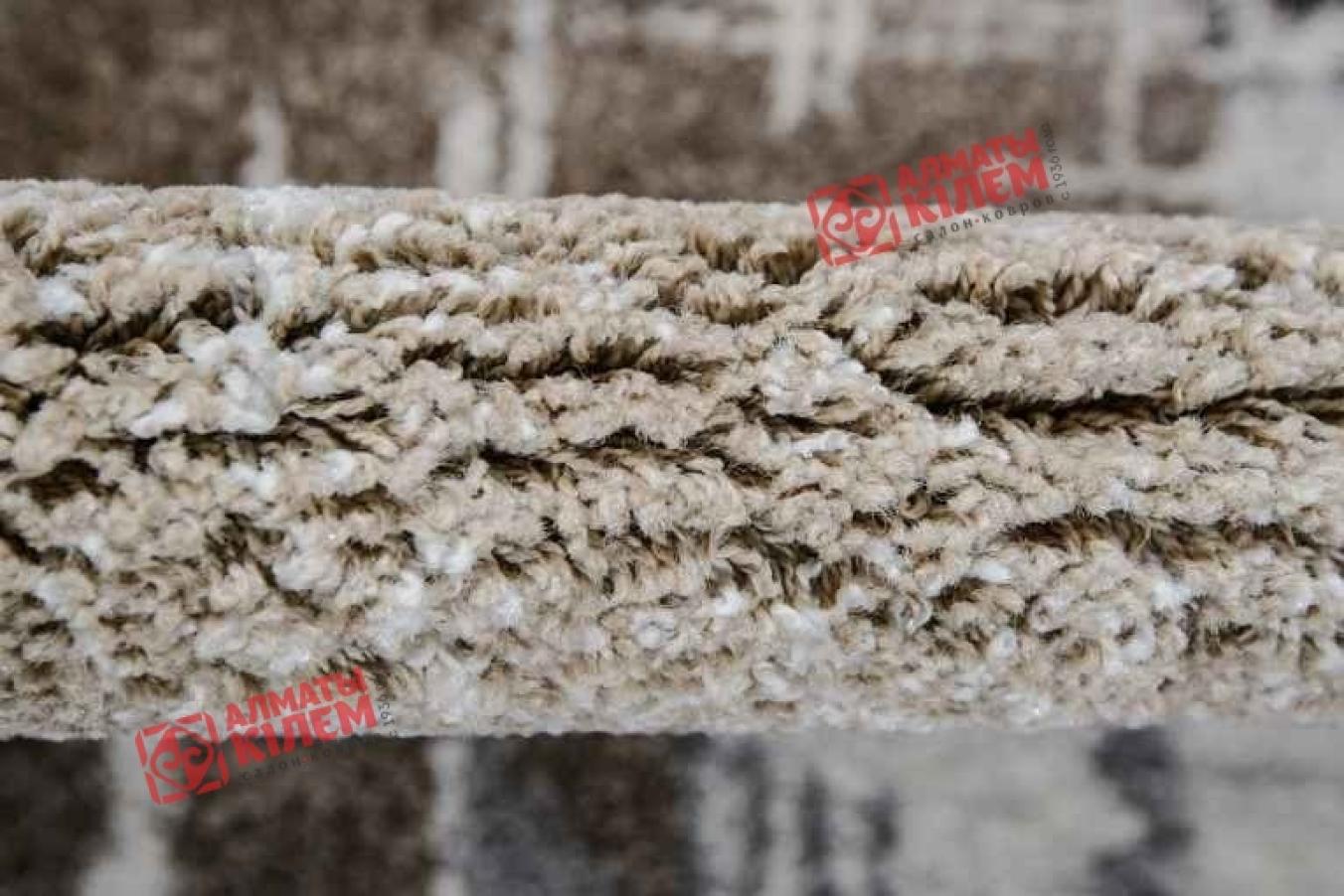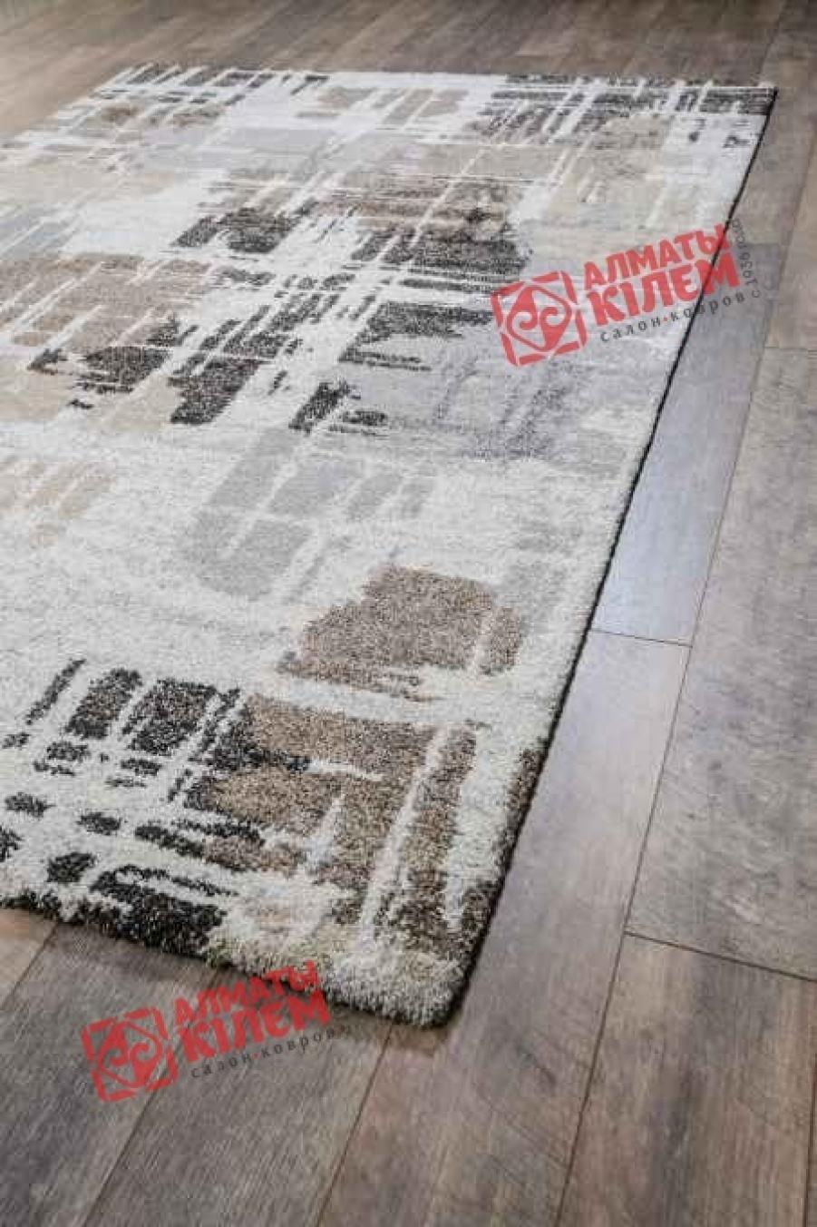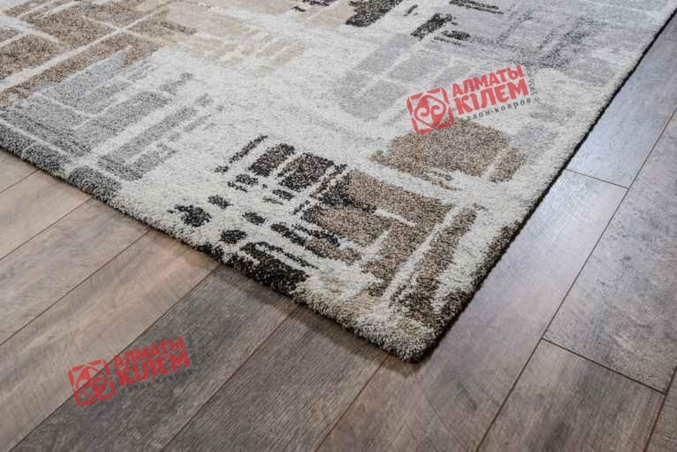 Уникальный дизайн ковра бельгийского производства не оставит вас равнодушными. Узор напоминает собой шкуру дикого зверя. На бежевом фоне красуются неравномерно «разбросанные» потертости серого и различных оттенков коричневого. Он выглядит невероятно эффектно, а неяркая палитра делает его универсальным. Современный ковер идеально сочетается с интерьером любого направления интерьера.