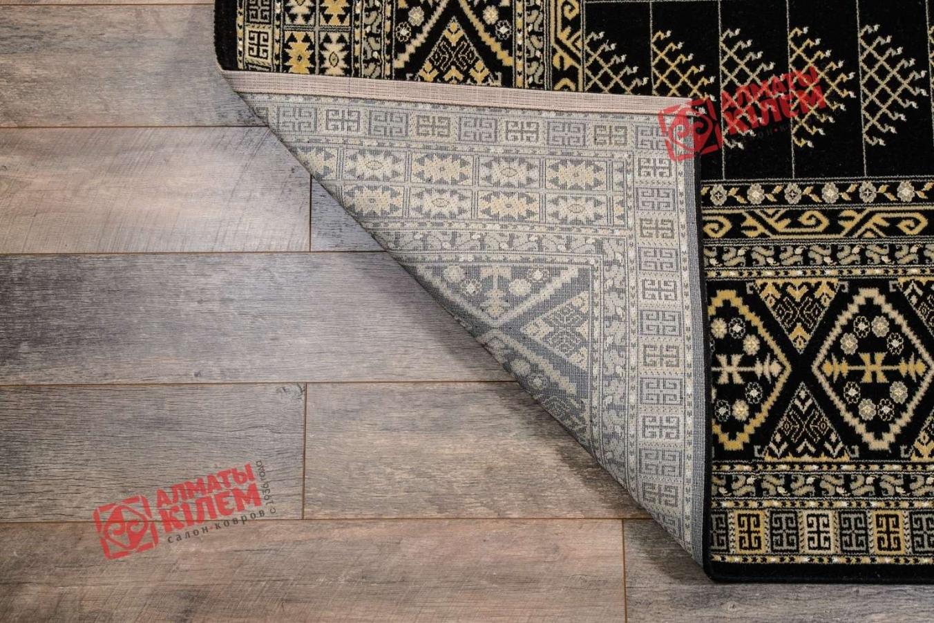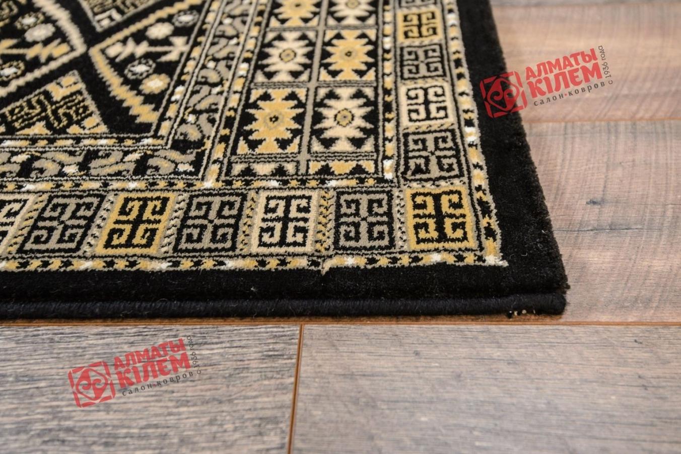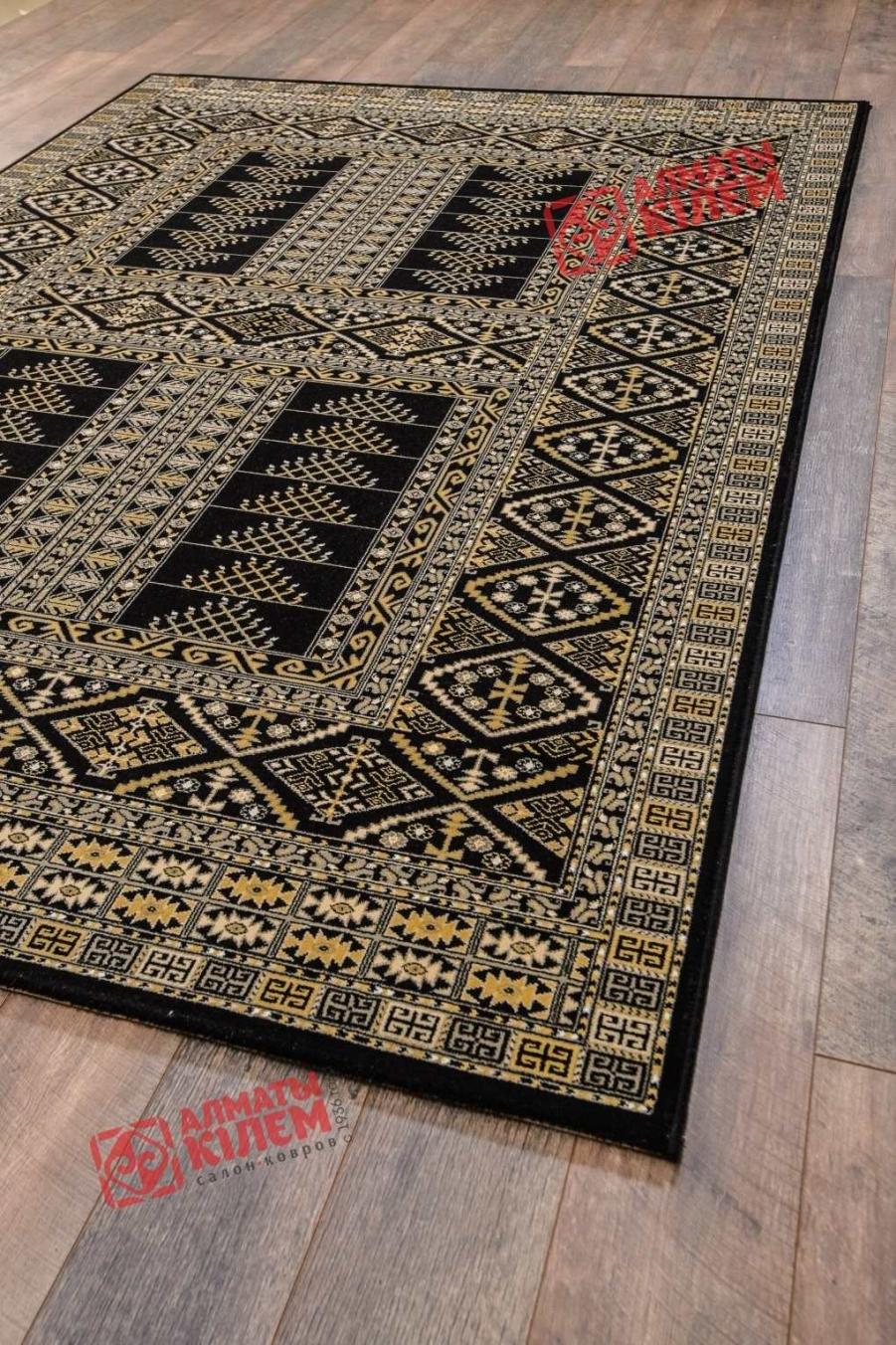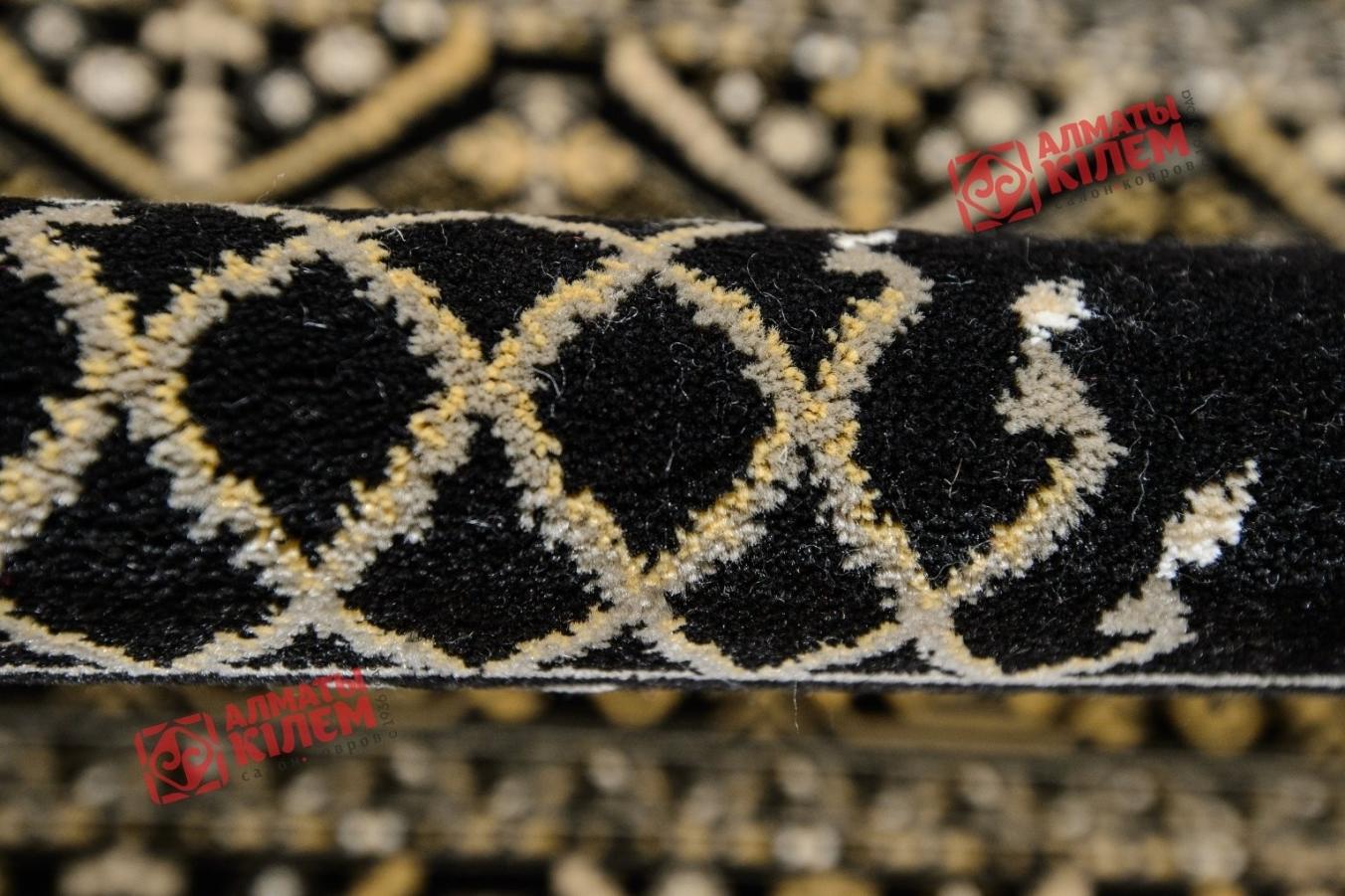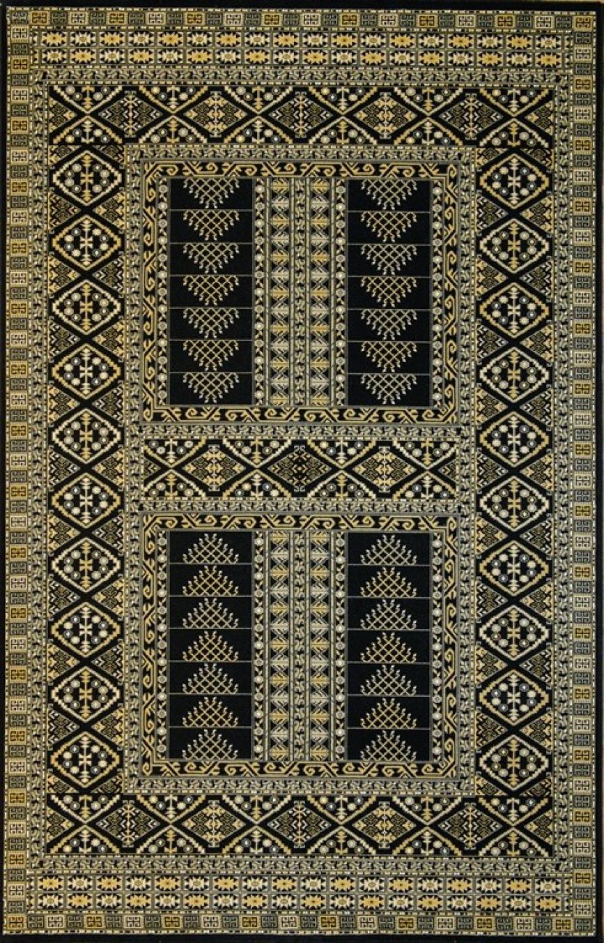Оригинальный классический ковер производства Бельгия — это европейское качество и изысканный дизайн. Покрытие станет прекрасным украшением любого интерьера. Оно великолепно впишется в современные и классические гостиные, спальни, столовые, прихожие и холлы. Ковер станет достойным украшением для кабинета руководителя, приемной и офисного помещения. Полотно темного оттенка покрыто замысловатым светлым узором с элементами этнических мотивов и геометрических фигур. Центральное изображение представляет собой рамку с четырьмя «окошками». В каждом находится подобие елочки из треугольников, находящихся один над другим. Остальное полотно занимают узорчатые рамки с различными рисунками.