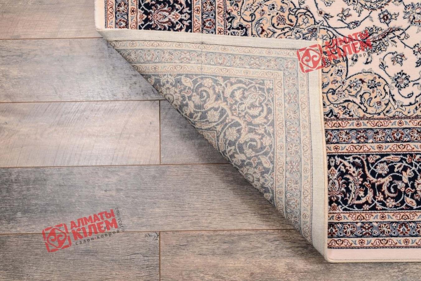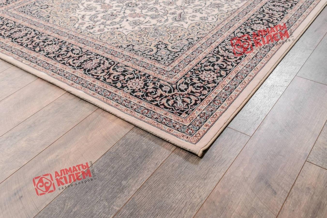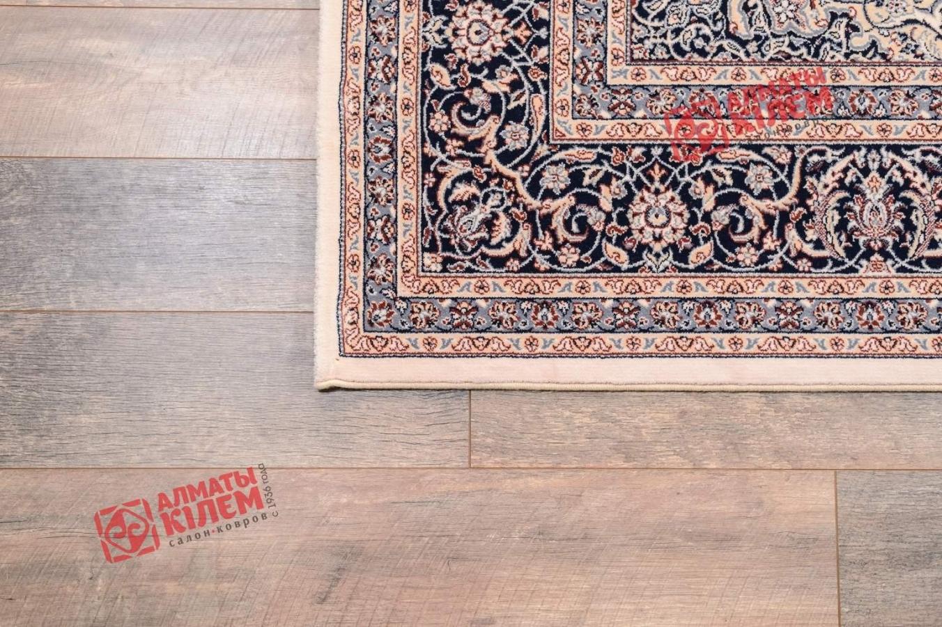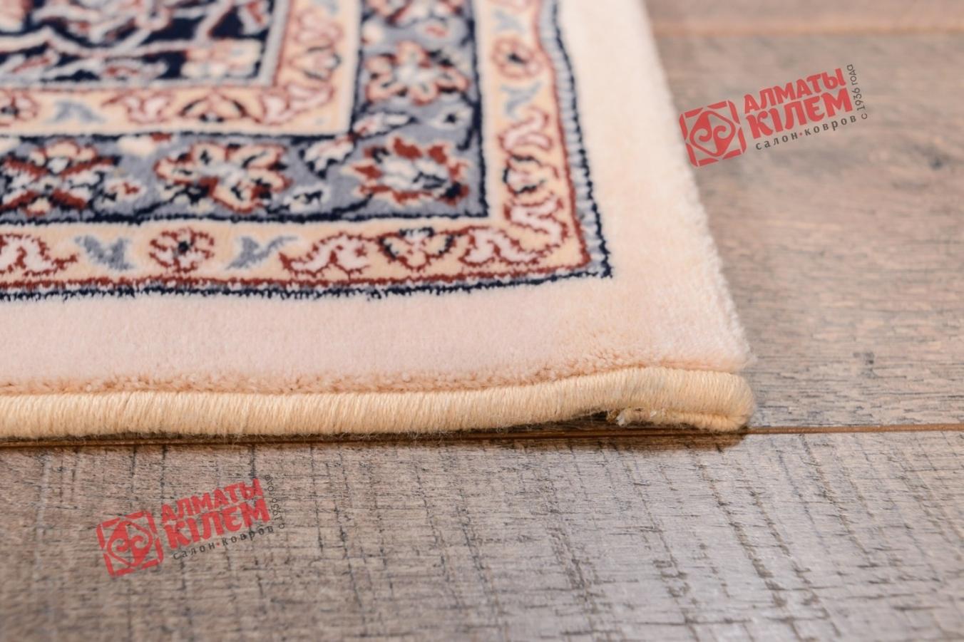 Роскошный шерстяной ковер из коллекции «Noblesse» прекрасно вписывается в интерьеры богато обставленных гостиных комнат, спален, столовых, холлов, прихожих. Дизайн напольного покрытия, купить которое с доставкой можно из Алматы-Кілем, классический. Центральная розетка и бордюр с флористическим и вензельным узором на бежевом фоне смотрится оригинально благодаря нетривиальной цветовой палитре. Средний ворс винтажного ковра согревает полы, приятен на ощупь.