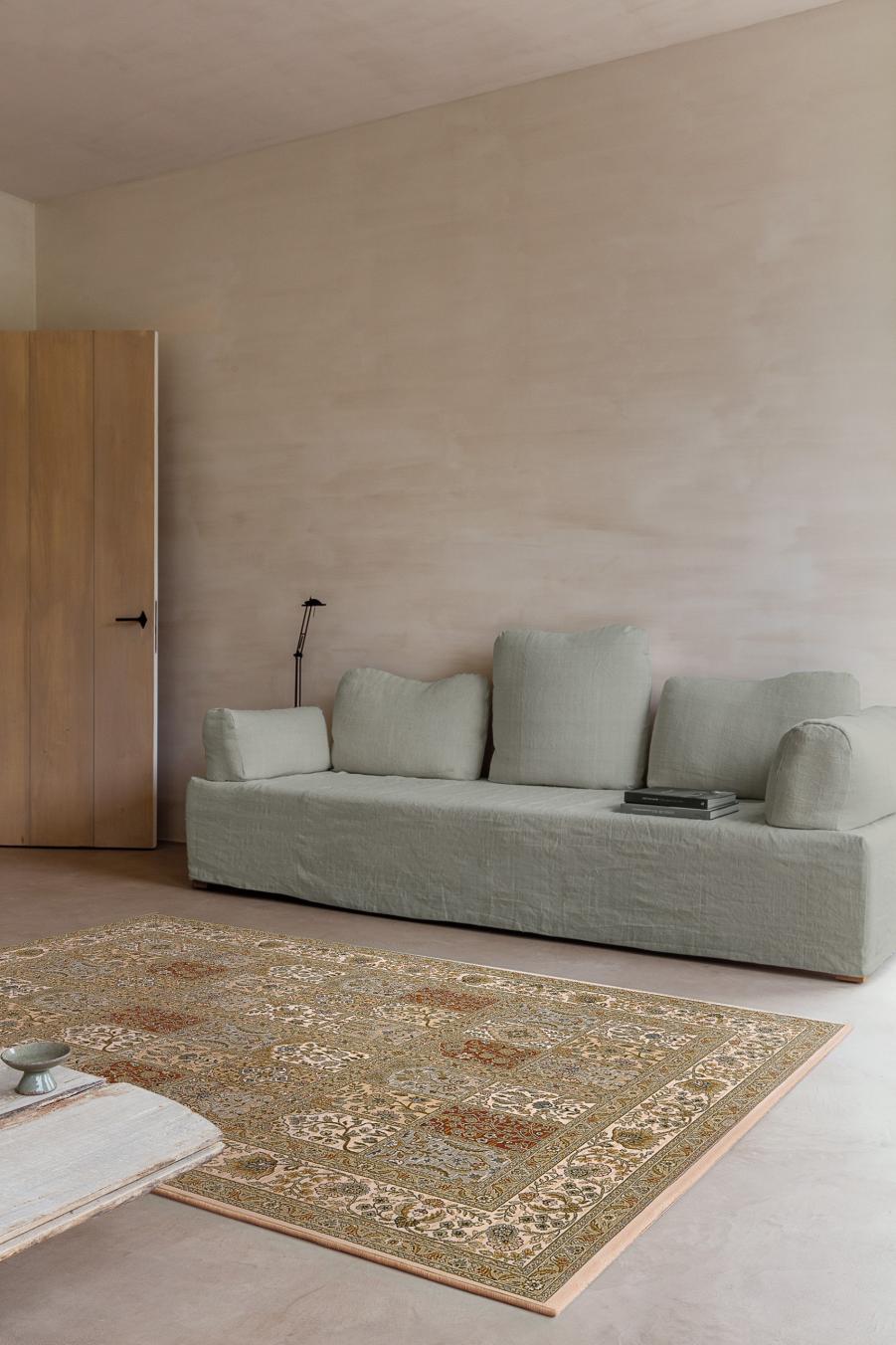 Изысканный бельгийский ковер от бренда OSTA CARPETS N.V. из коллекции с говорящим названием «Noblesse», означающим «Дворянство». Основа модели выполнена из полиэстера, джута, хлопка. Высота ворса средняя (почти 1 сантиметр). Плотность ворса исключительная и составляет 1 миллион 200 тысяч узлов на 1 кв. м. Основной оттенок фона — бежевый. Рисунок — классический пэчворк. Модель идеально вписывается в роскошные интерьеры гостиных, а также просторных холлов загородных коттеджей.