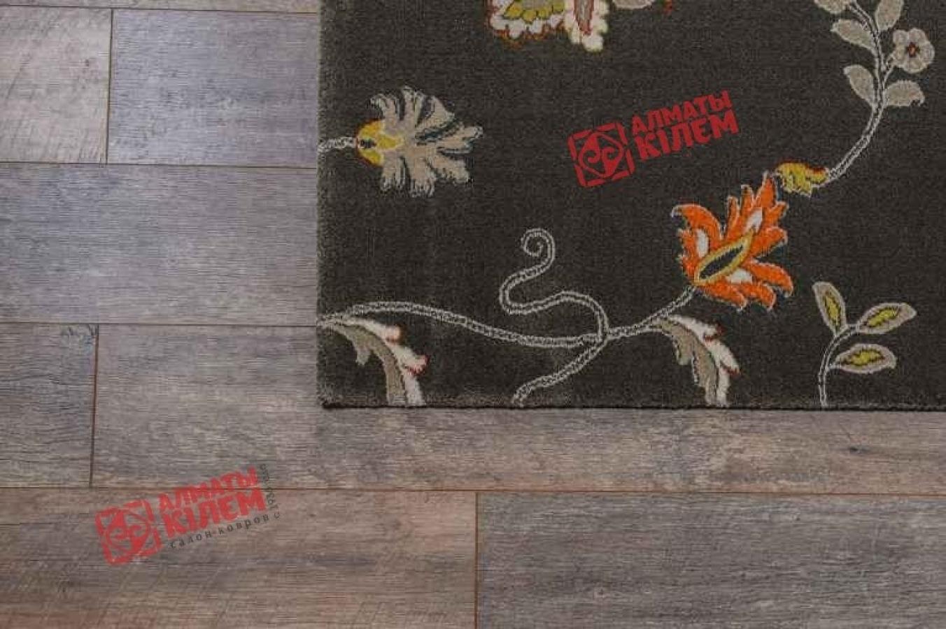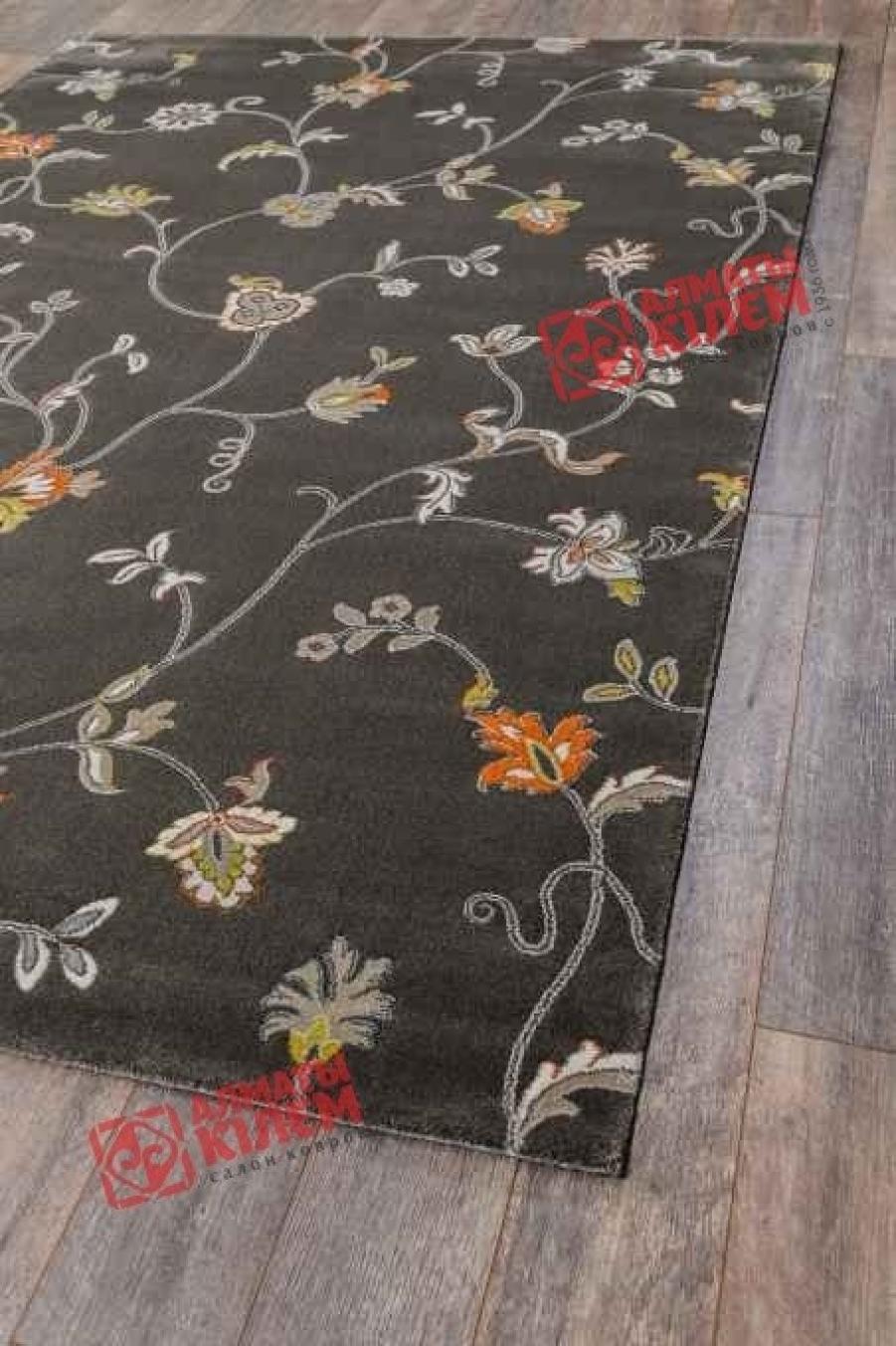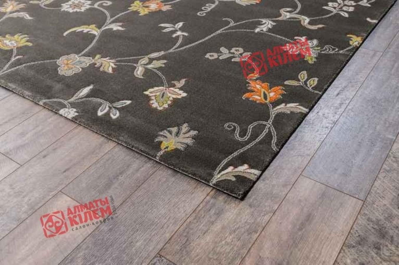 Великолепный ковер с высоким ворсом в темной цветовой палитре станет прекрасным украшением домашних интерьеров. На темном фоне благородного темно-серого оттенка изображены великолепные цветы. Они не отличаются крупным размером розеток, но сочетают в себе сразу несколько ярких оттенков, «разбросаны» по всему ковру и соединены изгибающимися стеблями. Создается впечатление того, что узор вышит ручной гладью. Это придает покрытию особого очарования и изысканности. Оно смотрится изысканно и роскошно. Его высокий ворс оставляет после себя самые приятные тактильные ощущения, поэтому он не просто украшает интерьер, но и создает максимально комфортную обстановку.