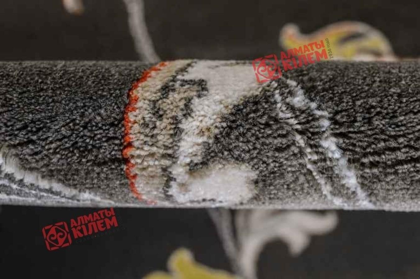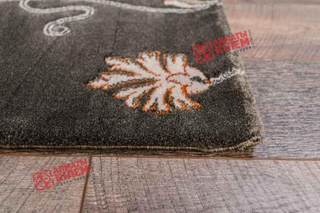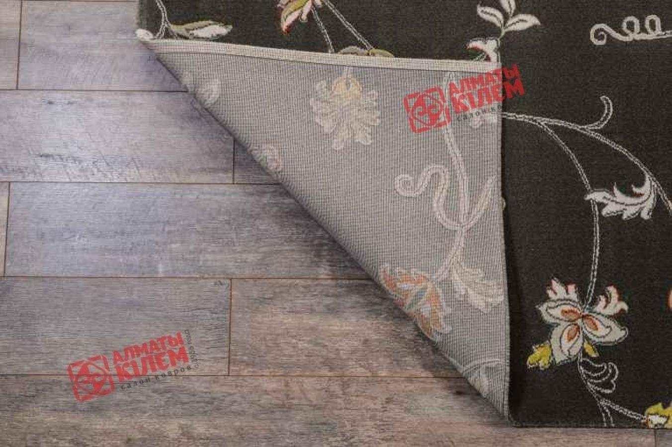 Великолепный ковер с высоким ворсом в темной цветовой палитре станет прекрасным украшением домашних интерьеров. На темном фоне благородного темно-серого оттенка изображены великолепные цветы. Они не отличаются крупным размером розеток, но сочетают в себе сразу несколько ярких оттенков, «разбросаны» по всему ковру и соединены изгибающимися стеблями. Создается впечатление того, что узор вышит ручной гладью. Это придает покрытию особого очарования и изысканности. Оно смотрится изысканно и роскошно. Его высокий ворс оставляет после себя самые приятные тактильные ощущения, поэтому он не просто украшает интерьер, но и создает максимально комфортную обстановку.