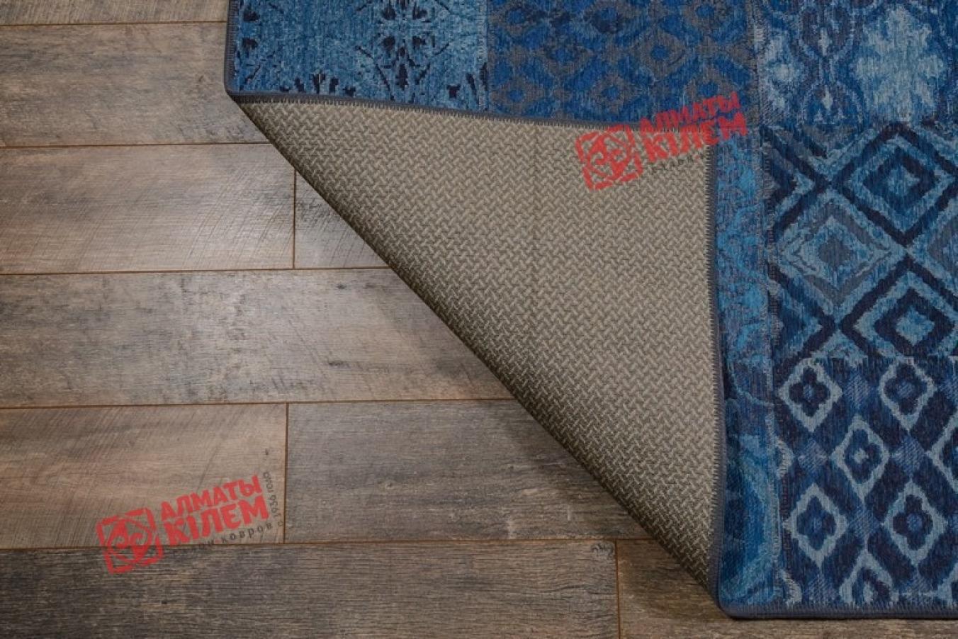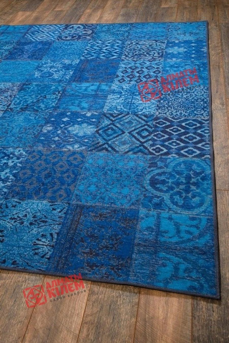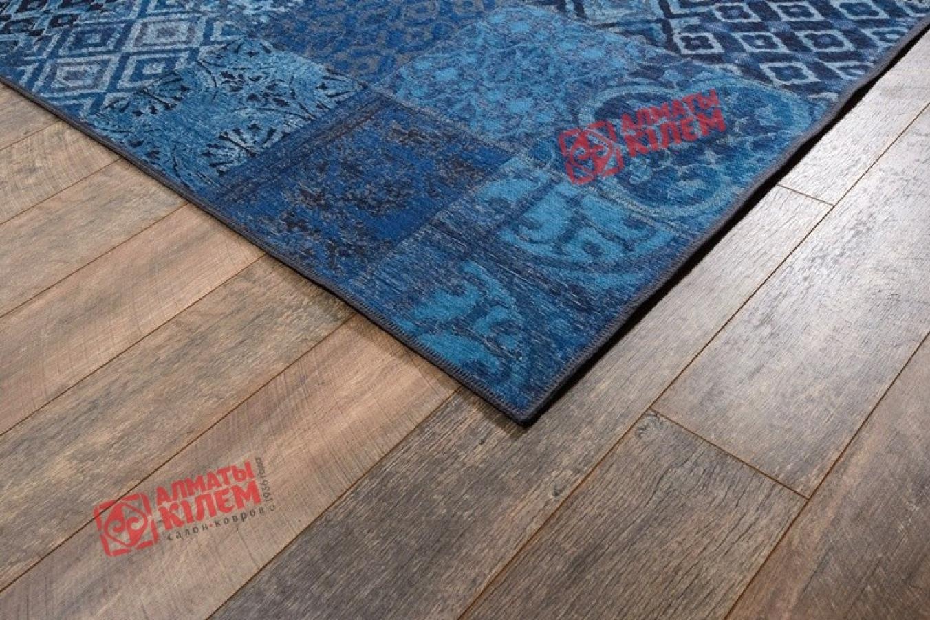 Оригинальный ковер бельгийского производства в синей цветовой палитре привнесет неповторимые нотки свежести и уюта в домашнюю обстановку. Он будет одинаково великолепно смотреться в гостиной, спальне, кухне, столовой, прихожей либо холле. Полотно выполнено в нескольких оттенках синего. Цвета меняются в узоре, напоминающим собой печворк из прямоугольных лоскутиков. Каждый отдельный фрагмент имеет свою оригинальную фактуру, образуя вместе единый оригинальный рисунок. Ковер в винтажном стиле прекрасно сочетается практически с любыми интерьерами и придает гостиным, спальням, столовым, кухням, прихожим неповторимую атмосфера уюта и комфорта.