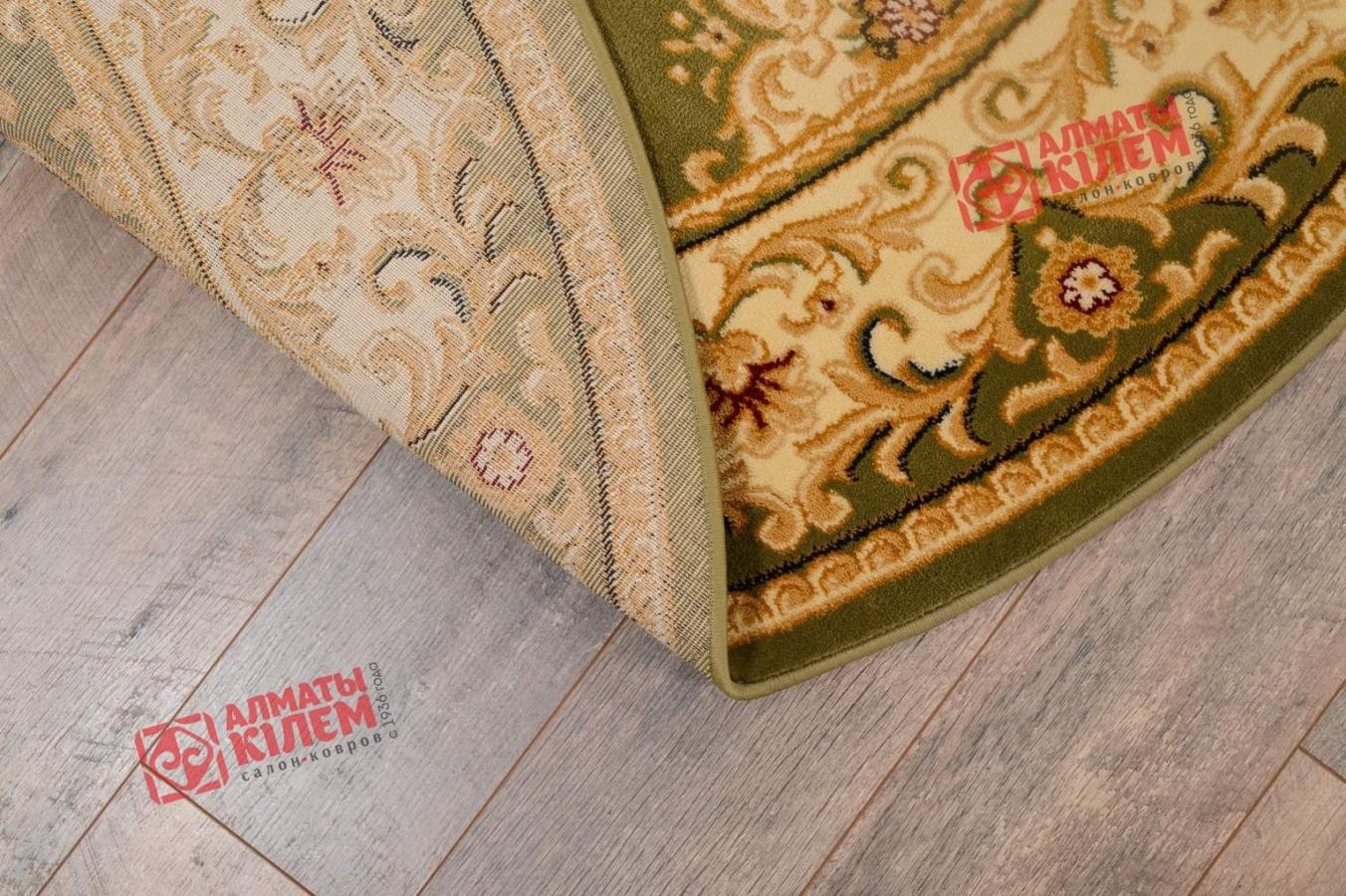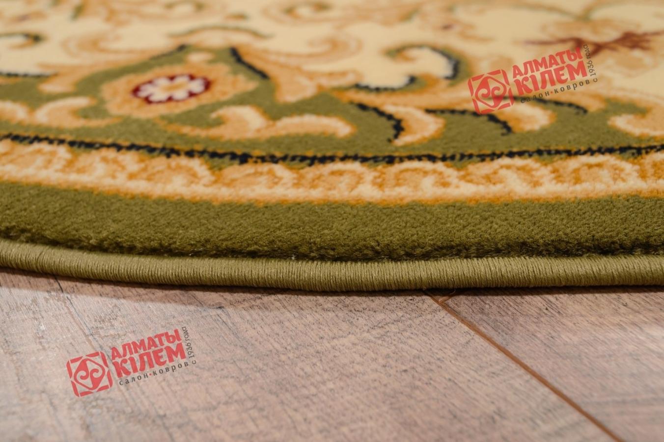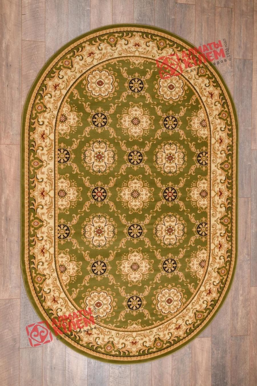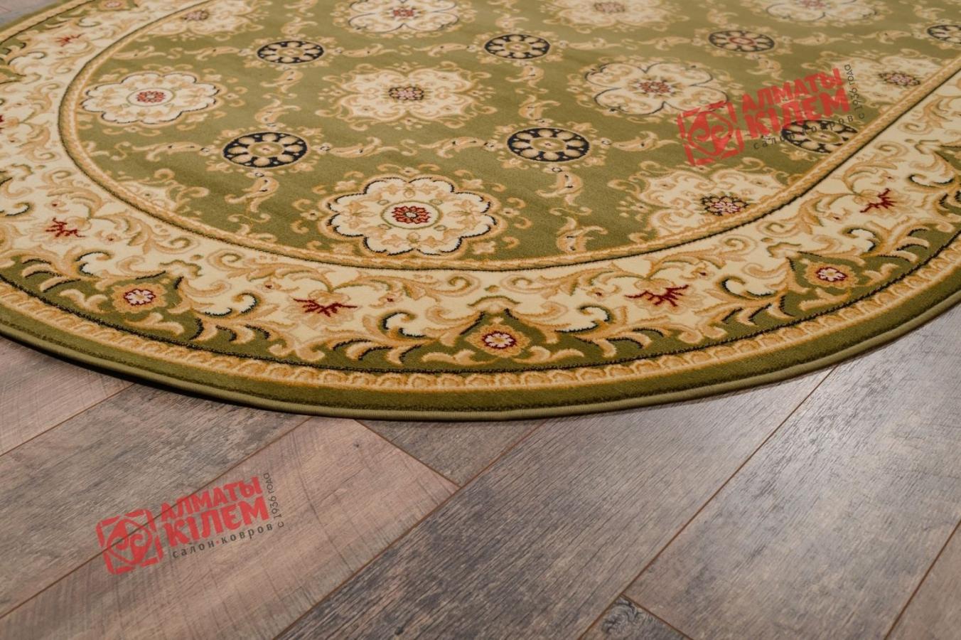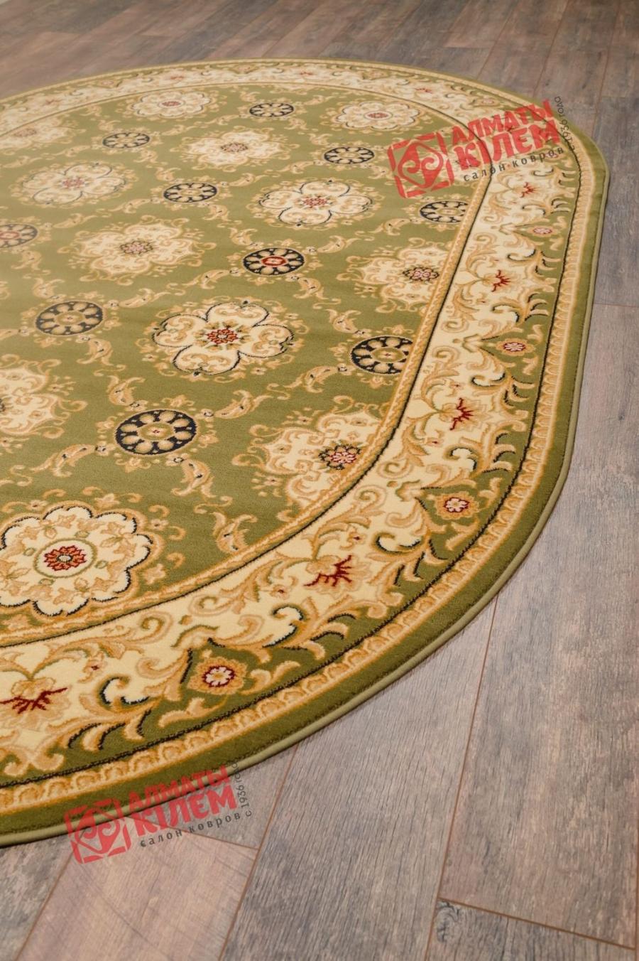 Великолепный овальный ковер из коллекции «Aquarelle» от молдавского бренда Moldabela не оставит равнодушным абсолютно никого. Классический стиль нисколько не отразился на оригинальности исполнения. Крупный флористический узор на зеленом медальоне, когда каждая отдельная бежево-золотистая розетка обрамлена ромбовидной рамочкой, обхваченной синим цветочком, смотрится по-настоящему необычно и роскошно. Завершенность изделию придает бордюр. Он выполнен в бежевой палитре и тоже украшен цветочным мотивом, но мелким, завершающимся зеленовато-оливковыми веточками. Такая гармоничность перекликающейся палитры придает ковру особую изюминку.