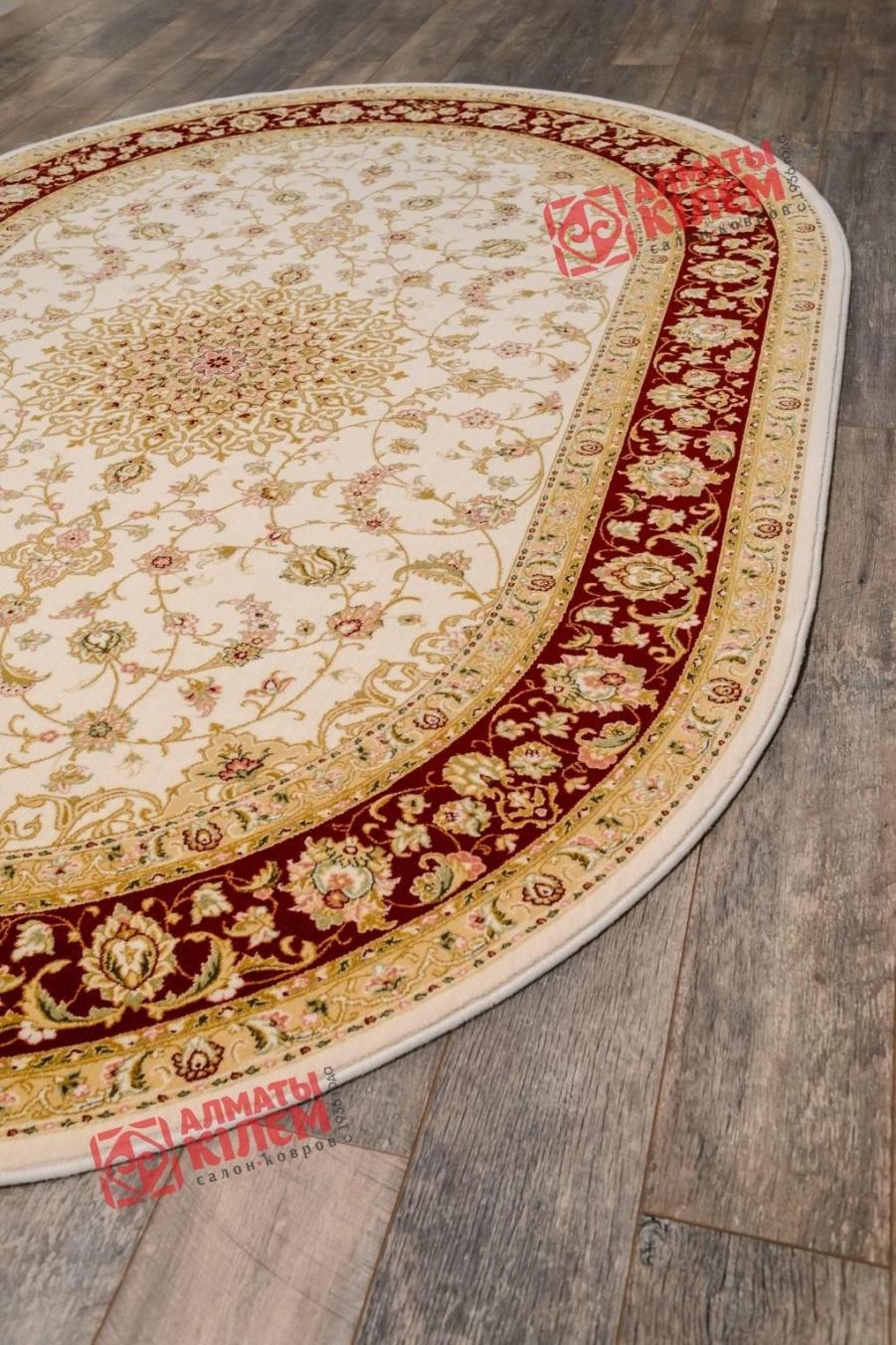 Овальный классический ковер из коллекции «Elegance», выполненный из натуральной шерсти, станет идеальным дополнением вашей комнаты. Оригинальная форма напольного покрытия прекрасно сочетается с мебелью и смотрится красиво, и даже обособленно в классических интерьерах. Сочетание красного, бежевого с золотистыми вкраплениями в медальоне и бордюре образует великолепный и эффектный дизайн. Средний ворс с высокой плотностью сохраняет мягкость натурального волокна, которое оставляет после себя приятные тактильные ощущения.