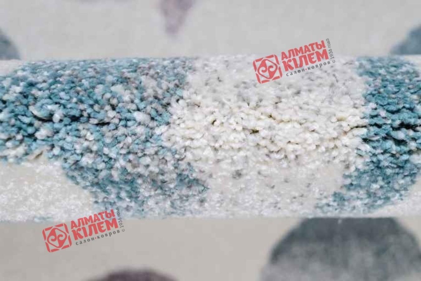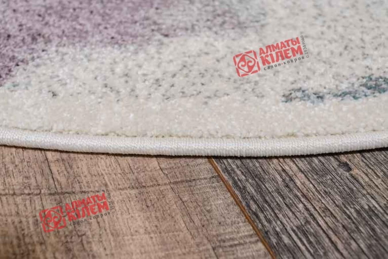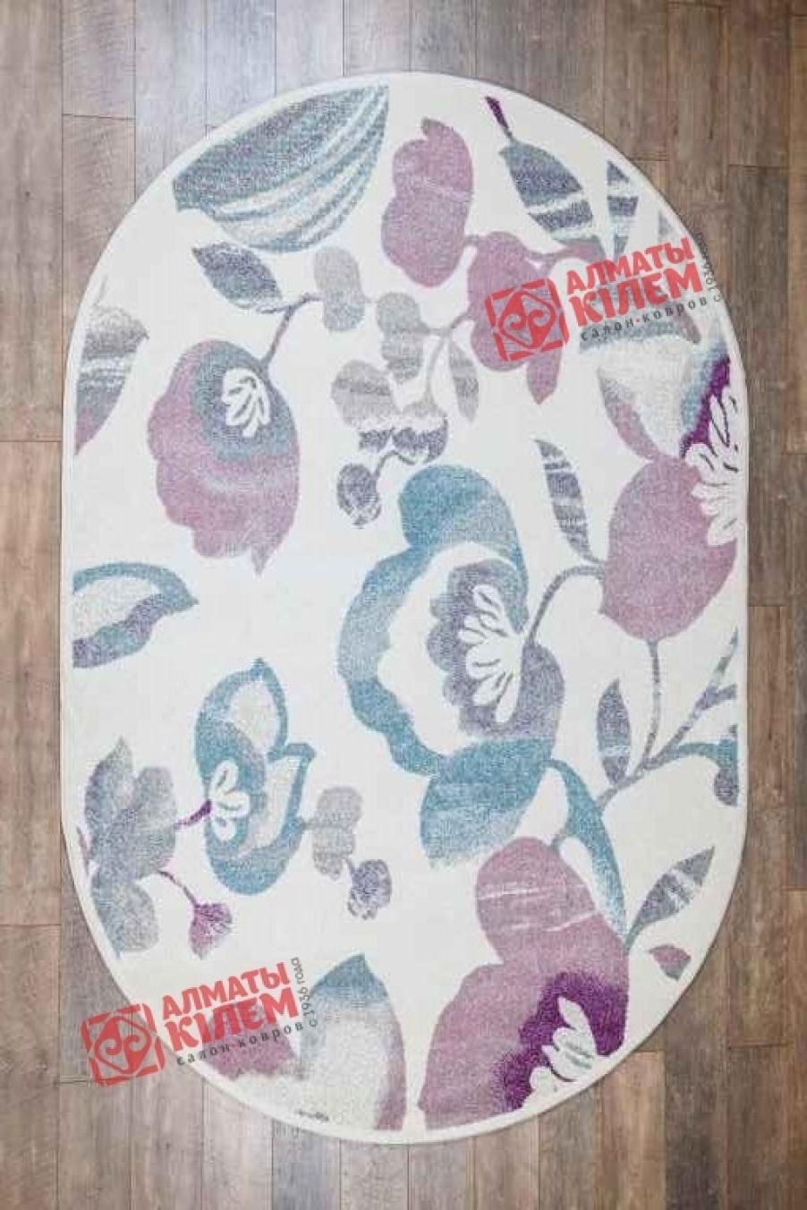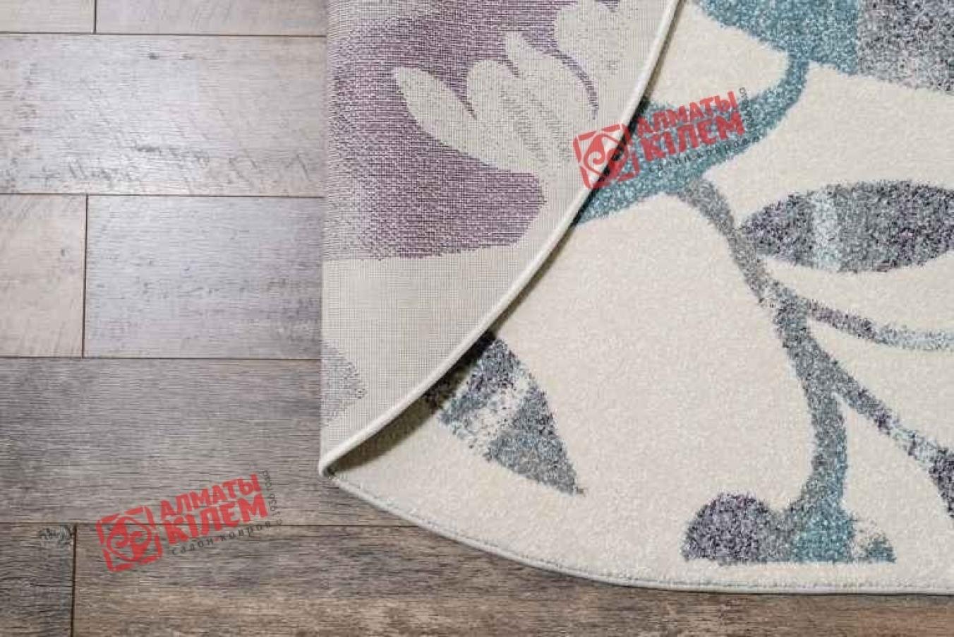 Главным украшением является флористический узор в фиолетовой, зеленой и серой палитре. Белая кайма, обрамляющая край, придает ковру завершенность и эффектно подчеркивает фактурность и красоту цветочного полотна.
