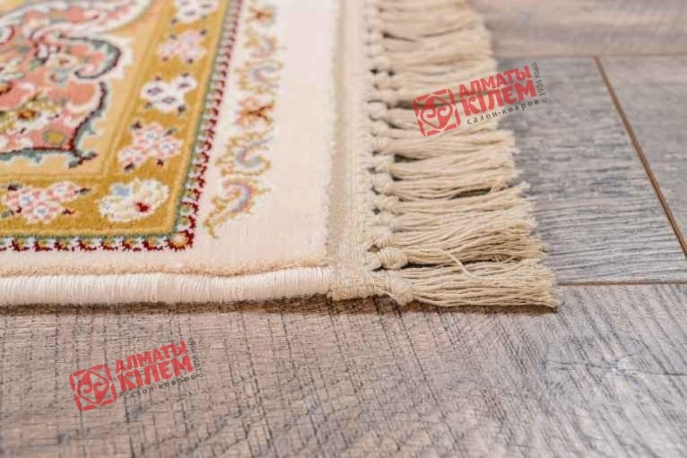 Роскошный классический ковер из поистине королевской коллекции «Palace» выполнено из стопроцентной натуральной шерсти. Цветочный ковер декорирован великолепным медальоном на светлом фоне. Кремовая розетка по центру «пускает» свои витиеватые «побеги» к широкому бордюру. Последний обрамляет собой полотно, которое идеально дополняет модель. Особую изысканность изделию придает бахрома средней длины. Изделие станет идеальным дополнением богатых интерьеров гостиных, спален, столовых, прихожих, офисов и кабинетов солидных компаний и учреждений, которые выполнены в классическом стиле.