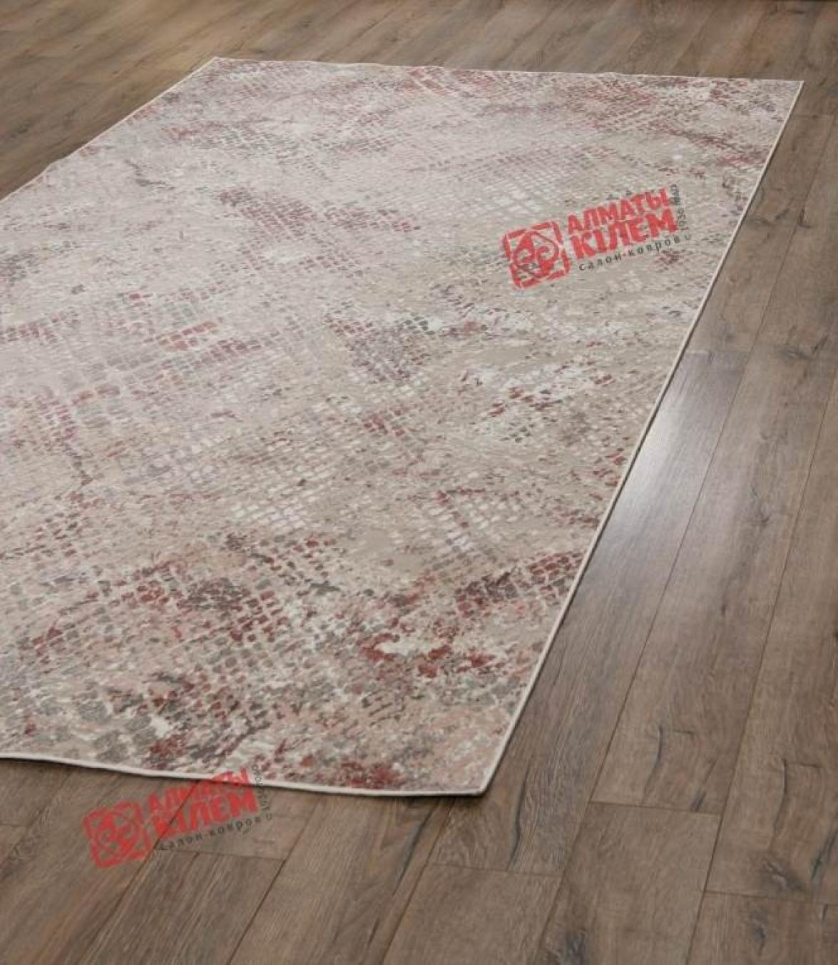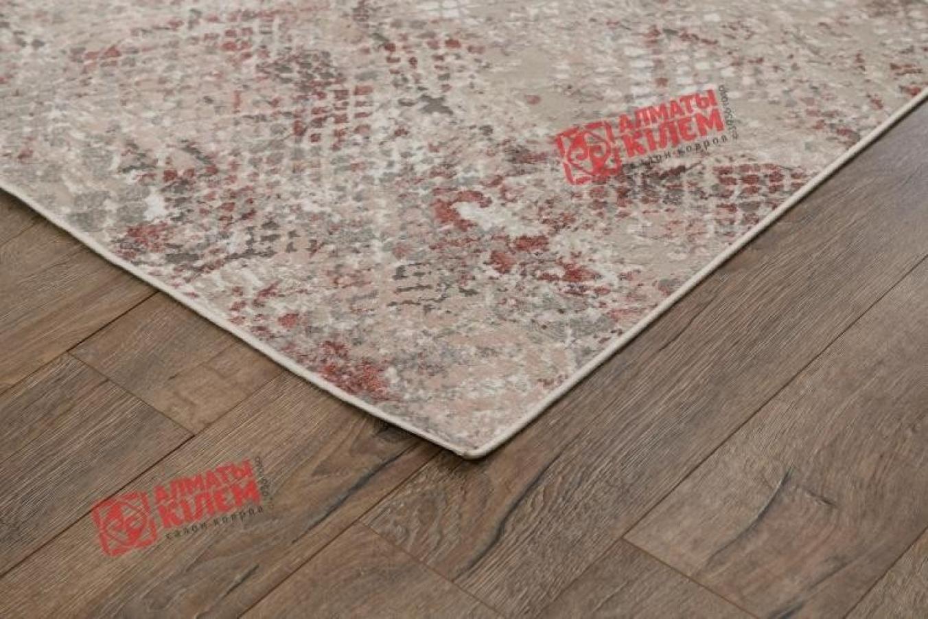 Оригинальный бельгийский ковер из коллекции «Prizma» прекрасно вписывается в современные интерьеры квартиры, домов, офисов и кабинетов. Роскошная фактура ковра из вискозы с добавлением полиэстера имитирует собой шкуру пресмыкающихся. Основной оттенок полотна серый, а узор образуется благодаря разности высоты ворса. Рисунок образуется добавлением бордового оттенка. Вискозный текстиль является доступным аналогом дорогостоящего натурального шелка. Оно имитирует не только внешнюю фактуру, но и не уступает аналогу по эксплуатационным характеристикам. Высота ворса средняя, а плотность составляет один миллион узелков на квадратный метр.