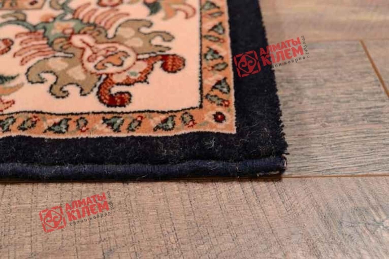 Роскошный напольный ковер из стопроцентно натуральной шерсти в классическом стиле со средним ворсом — это лучший выбор для богато обставленных гостиных, спален, холлов, офисов, кабинетов и приемных. Он обладает роскошной фактурой и великолепным дизайном. Синий медальон, обрамленный золотистым кружевом по углам центрального рисунка, образует нестандартной формы сердцевину. Коричневатый флористический мотив смотрится роскошно и изысканно. На основной части он крупный, а на бордюре, который обрамляет медальон, более мелкий, но тоже цветочный. Смотрится ковер с цветами просто великолепно. Он прекрасно смотрится в меблированных комнатах и обособленно, к примеру, в холлах.