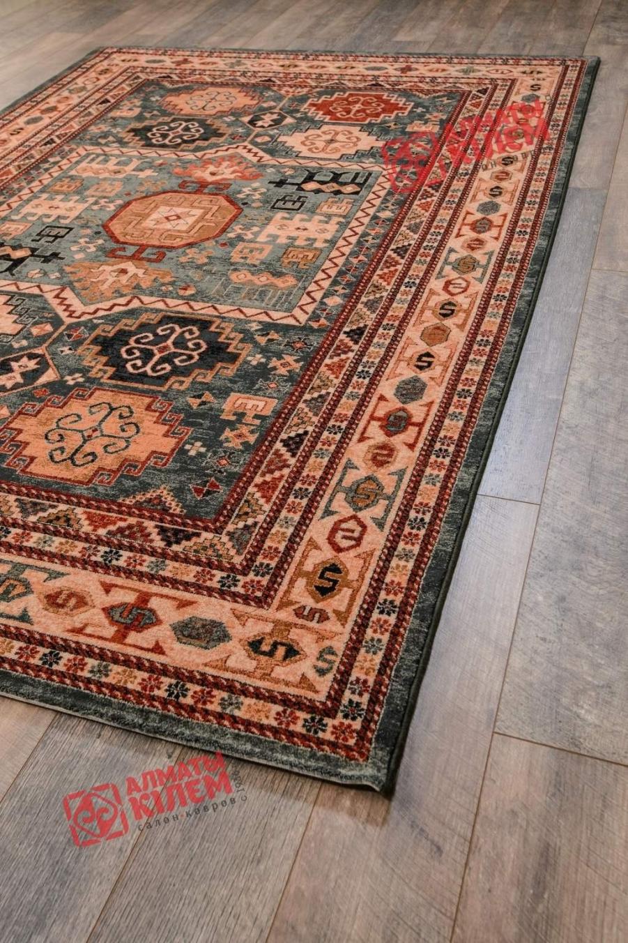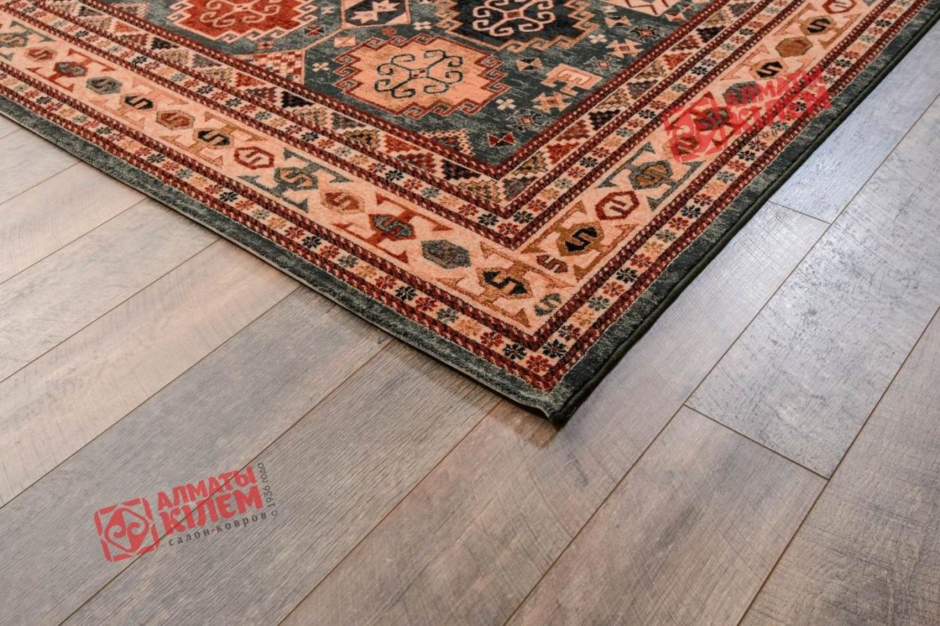 Оригинальный ковер со средним ворсом из натуральной шерсти. Этнические мотивы и классический дизайн прекрасно сочетаются между собой. Узор в виде абстрактных животных по середине окружен множеством геометрических фигур. Продуманное цветовое решение с приглушенным зеленым и бежевым. Завершенность рисунку придает рамка светлого цвета. Она украшена различными узорами. Винтажный ковер не только красиво смотрится, но и придает обстановке атмосферу комфорта, прекрасно утепляет полы. Он идеально подходит под классические, современные, винтажные и другие стилистические направления дизайна интерьера. Ковер украсит собой как домашний интерьер, так и кабинет, приемную, офис.