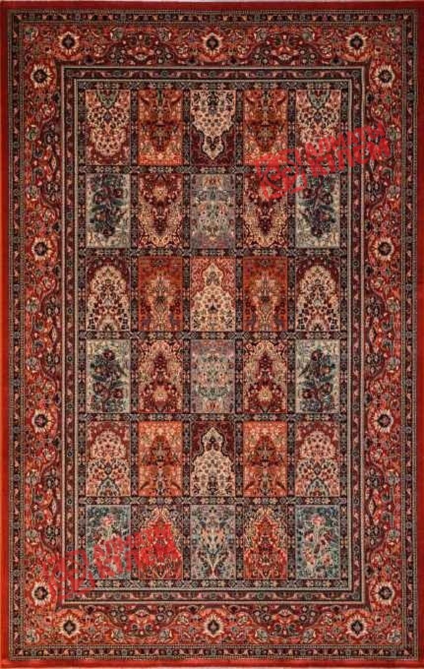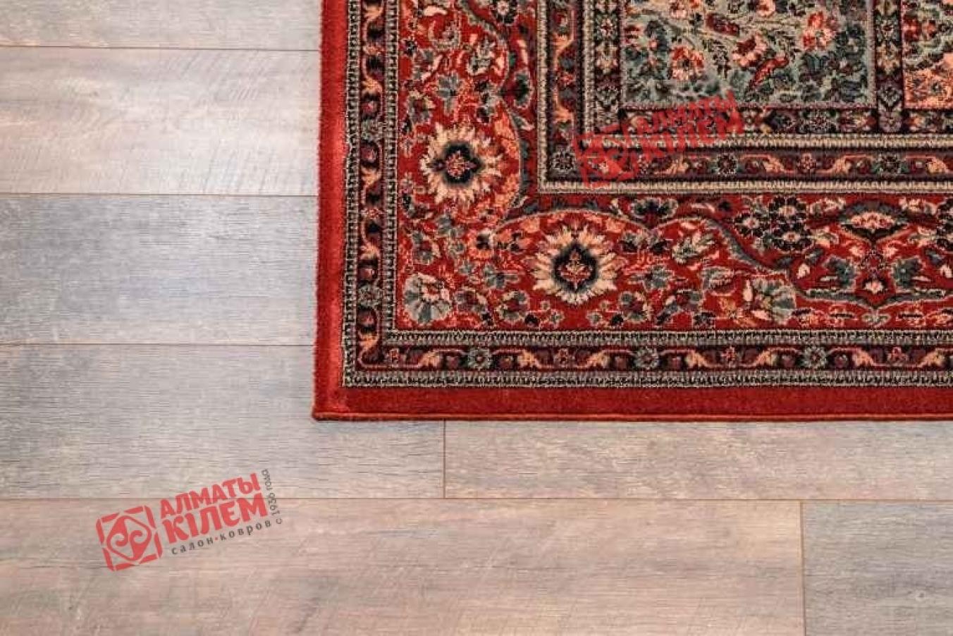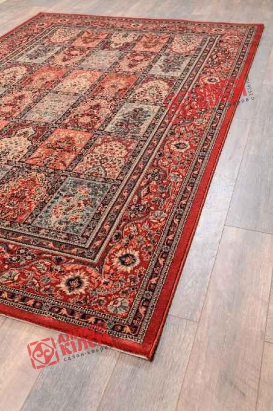 Чисто шерстяной красный ковер от бельгийского бренда «OSTA CARPETS N.V.» — это роскошное украшение абсолютно для любого интерьера. Полотно имеет поистине королевские размеры. Его ширина достигает почти двух с половиной, а длина — трех с половиной метра. Дизайн ковра просто великолепен. Он сочетает в себе элементы печворка и классики. Центральный рисунок классического ковра представляет собой множество фрагментов, соединенных вместе. Каждый имеет свой рисунок. Узоры похожи между собой мотивом, но отличаются оттенками и некоторыми деталями. Они обрамлены широкой рамкой с узорами, обрамленной двумя тонкими темными. Рисунок образован белым, черным, бежевым, серовато-голубым и красным.