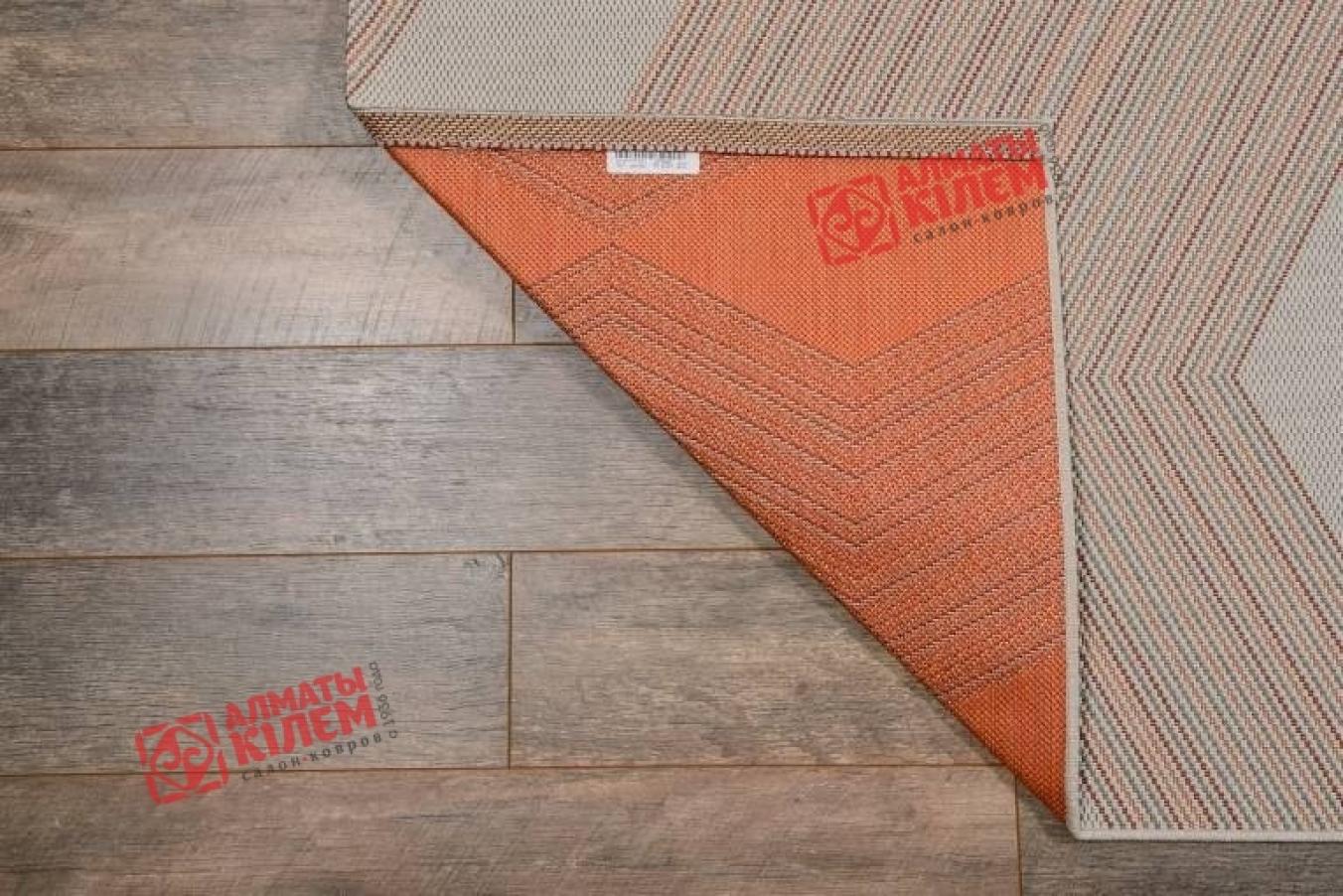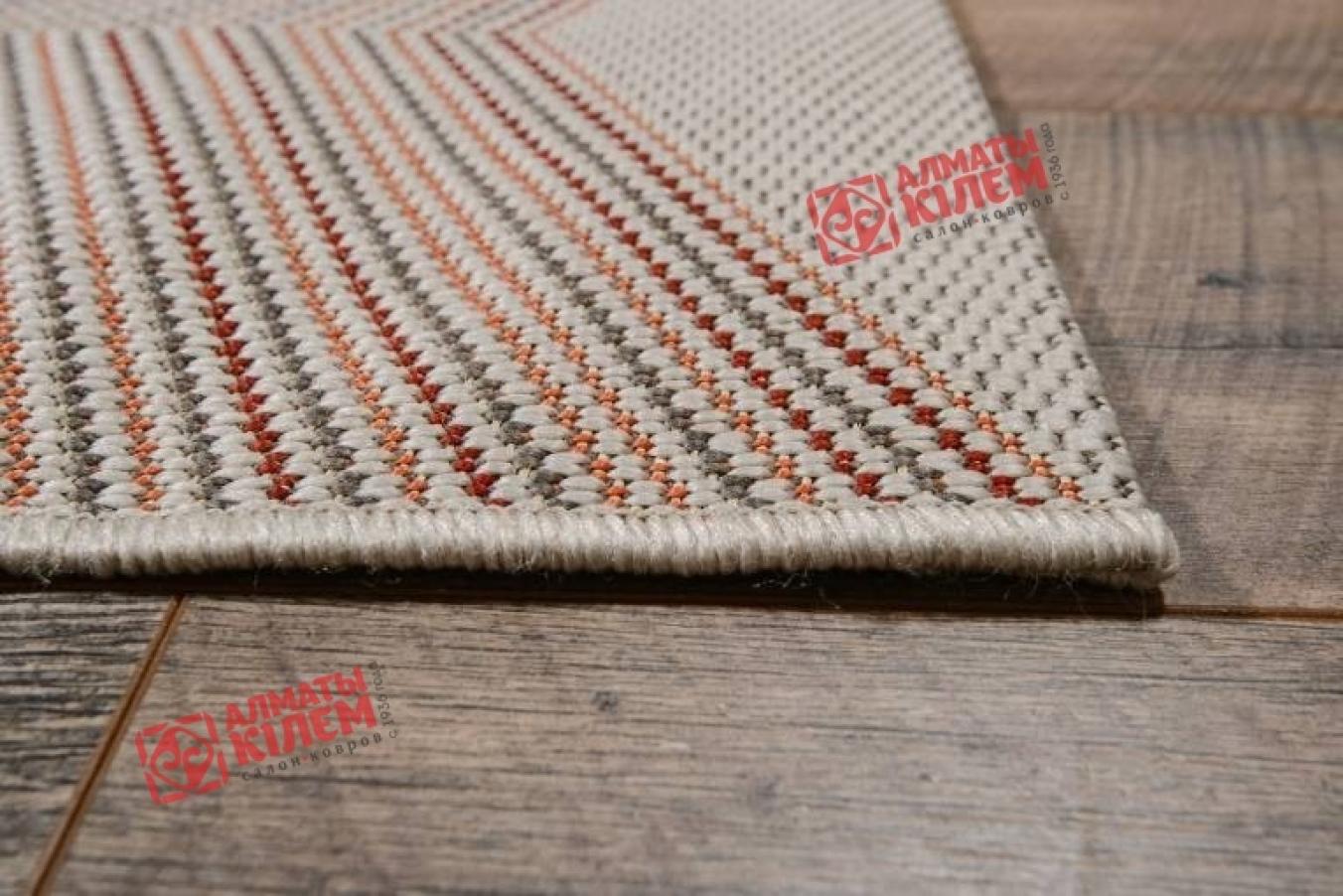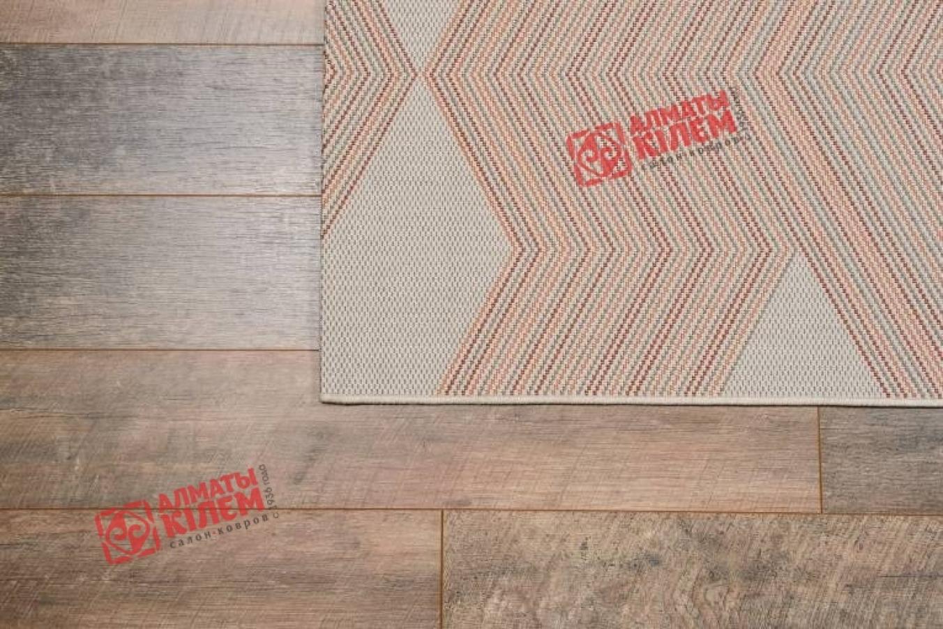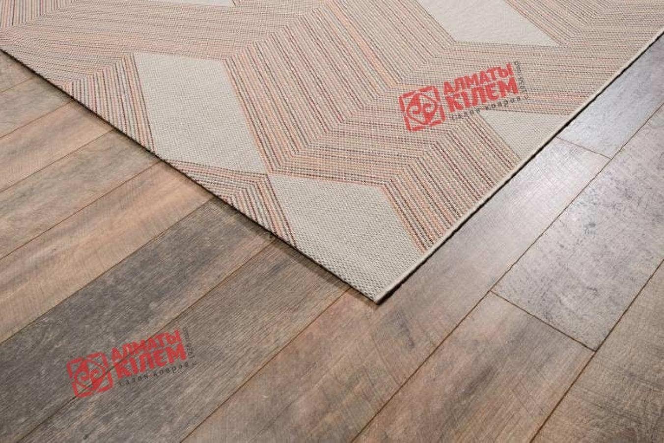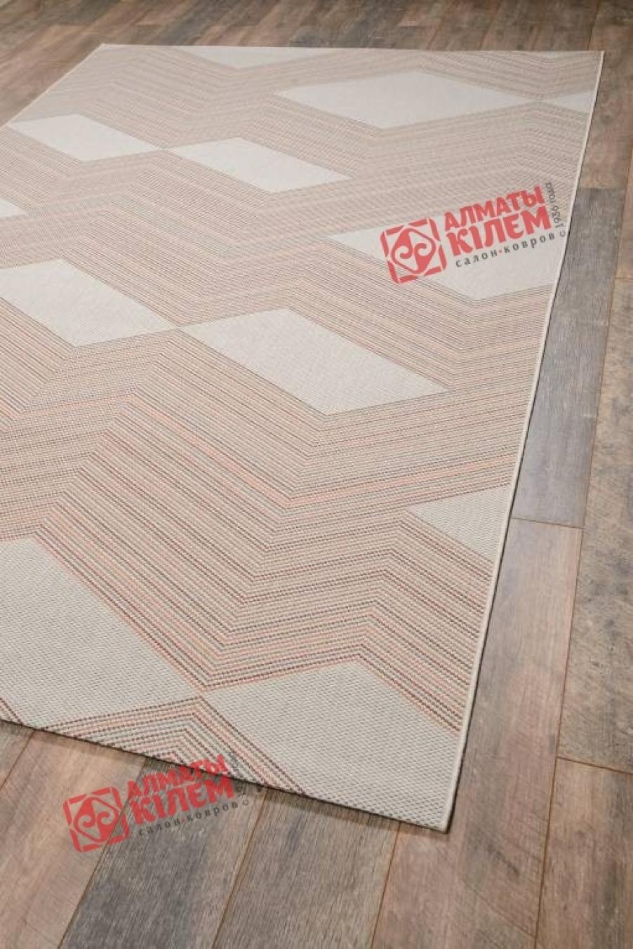 Кремово-бежевая циновка из полипропилена — это идеальное напольное покрытие для ванных комнат, столовых и кухонь, а также прихожих. Ковер без ворса не скапливает и не собирает пыль, поэтому легок и прост в уходе. Он выполнен в современном стиле, поэтому легко вписывается абсолютно в любой интерьер. На кремовом фоне изображен геометрический узор бежевого оттенка. Он представляет собой волнообразный орнамент с идеально ровными краями и зигзагообразными переходами. Полосы изредка соприкасаются, а особую изюминку всему ансамблю придают вкрапления розовато-красного цвета. Сдержанная палитра позволяет сочетать ковер с пастельными и яркими интерьерами.