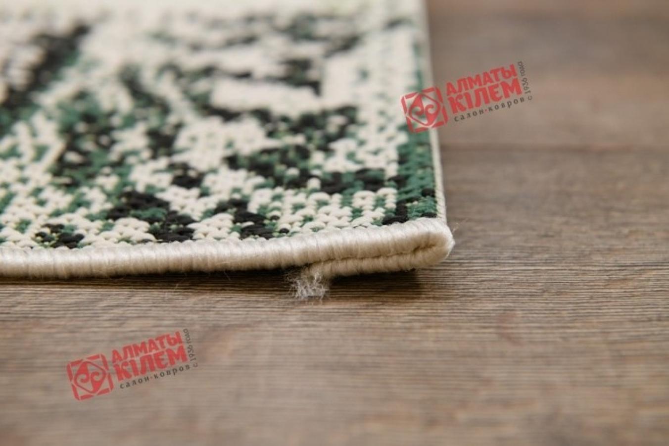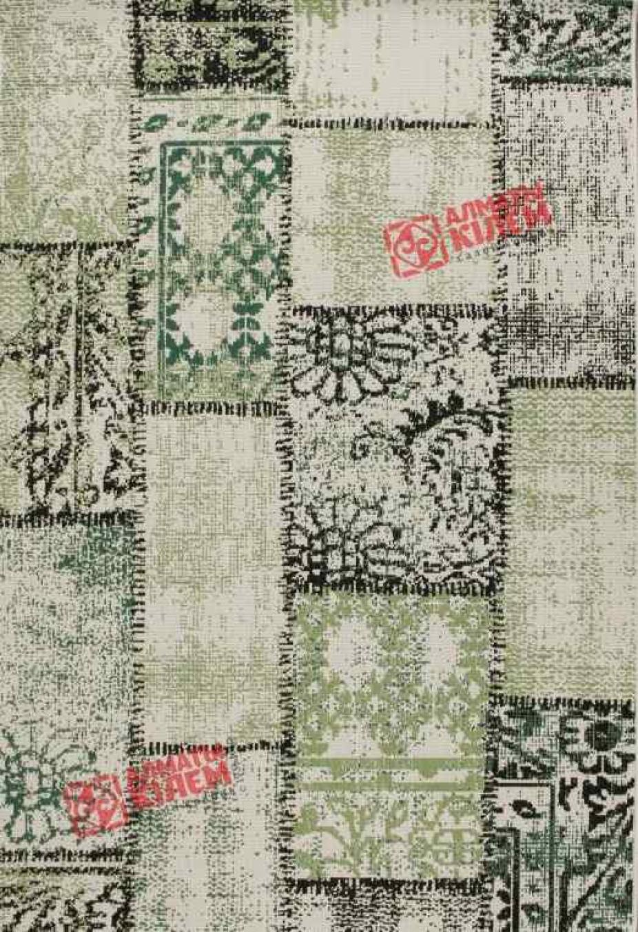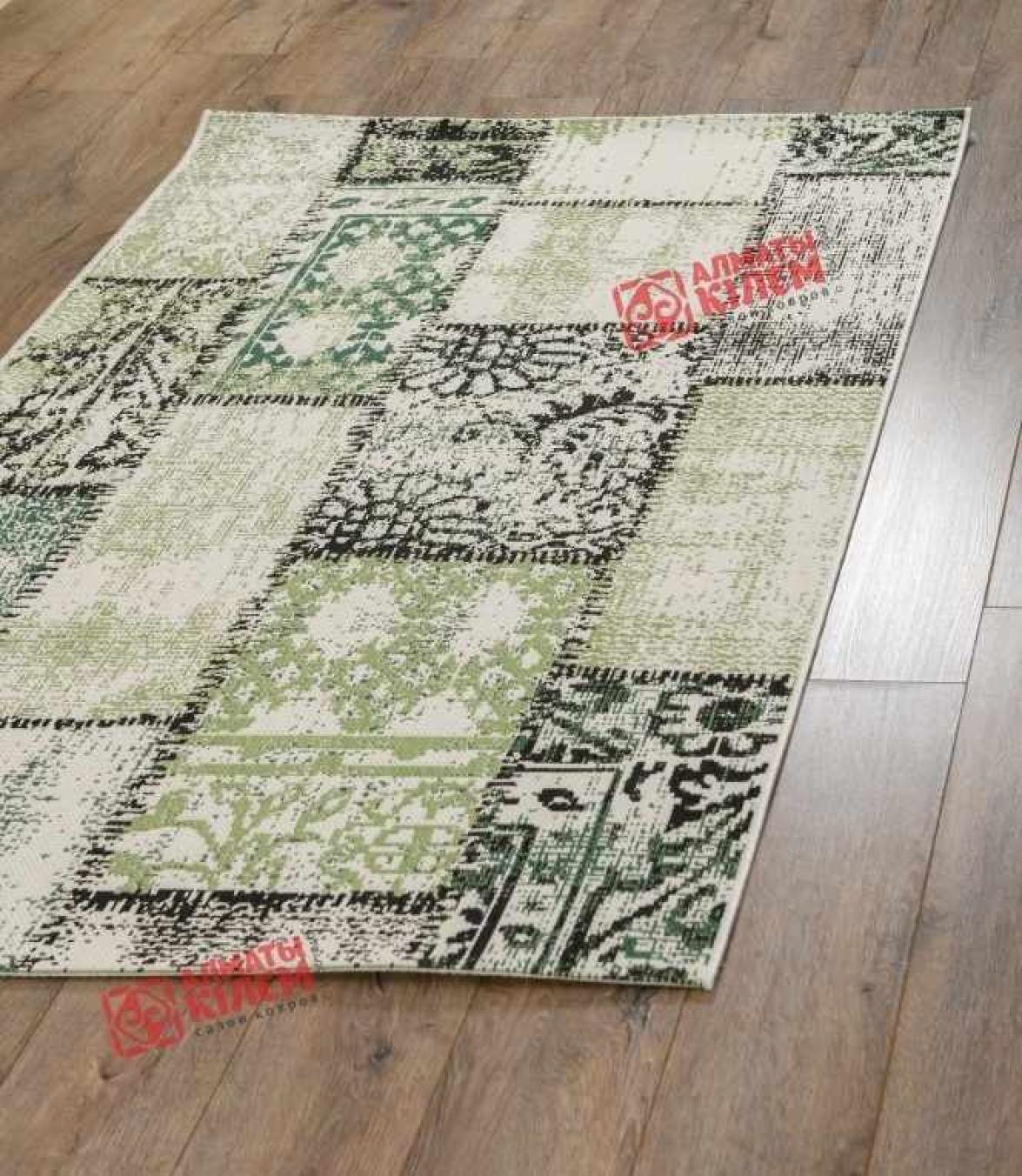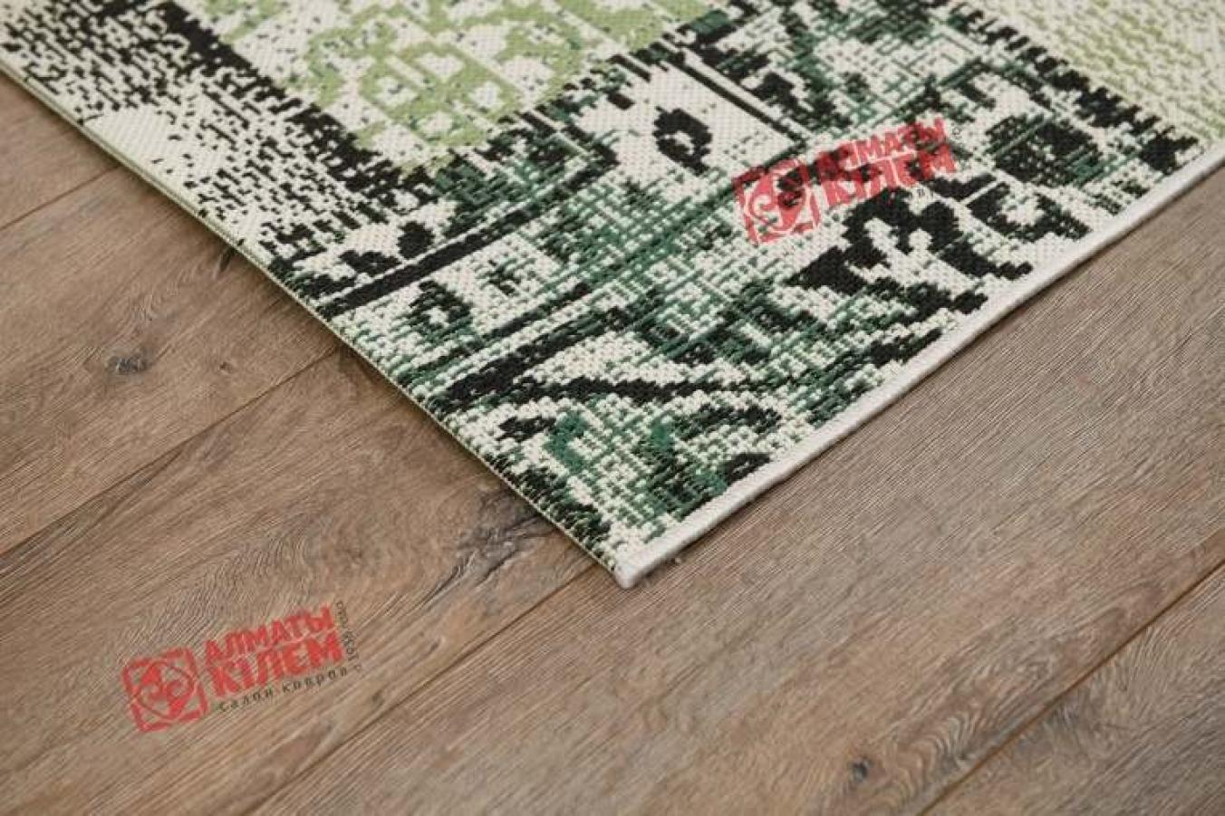 Великолепная напольная циновка из полипропилена привнесет неповторимую атмосферу уюта и комфорта в обстановку столовой, кухни, прихожей, ванной комнаты. Отсутствие ворса в значительной степени облегчает процесс ухода и уборки за этническим ковром, поскольку он практически не забивается пылью и грязью. Полипропиленовое волокно вплетено в основу и образует невероятной красоты узор. Он напоминает собой печворк и выполнен в нежной зеленой палитре с градиентными переходами, усиливающимися благодаря добавлению черных красок. Одни фрагменты будто ковровые дорожки, а другие словно кружевное полотно. Подобное сочетание придает дизайну неповторимую оригинальность и очарование.