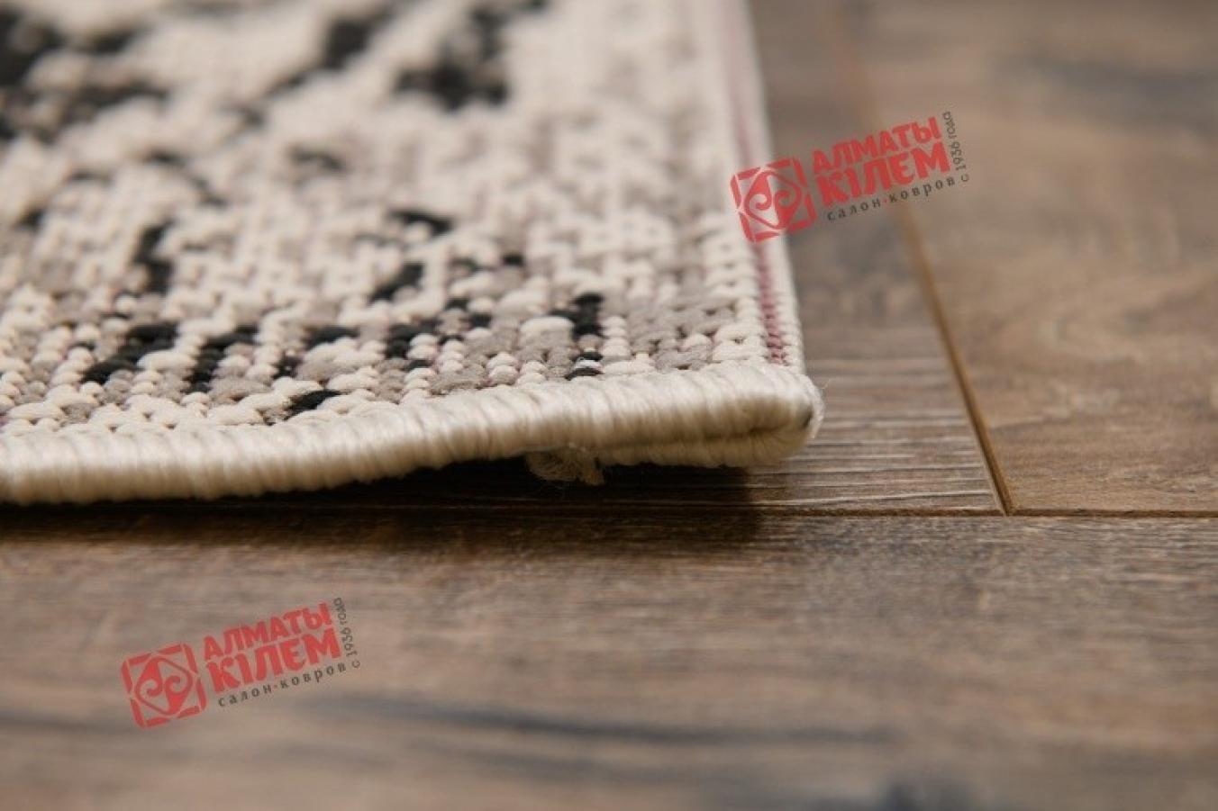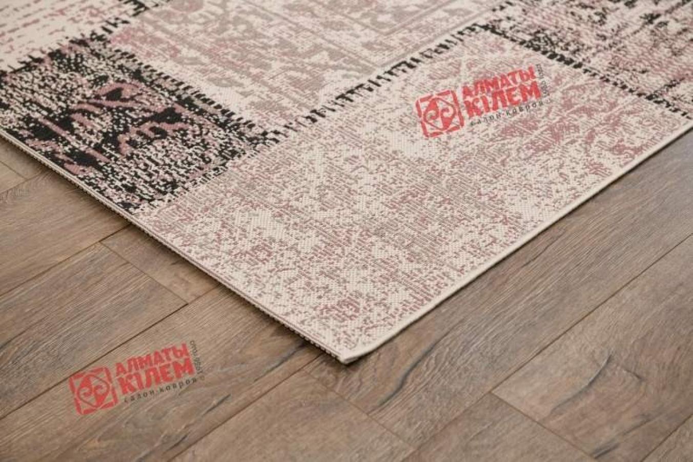Роскошный безворсовый ковер из полипропилена представляет собой прекрасное напольное покрытие, которое будет идеально смотреться в интерьере современных кухонь, столовых, прихожих, ванных комнат. Циновка выполнена в технике печворк. Она будто состоит из множества отдельных фрагментов, соединенных между собой темной тончайшей кружевной рамочкой. Особый шарм ковру придает сочетание серого, бежевого, черного в различной цветовой гамме. Одни элементы имеют замысловатый узор, а другие, наоборот, декорированы градиентным переходом. Красоту покрытию придает ажурный узор, контрастирующий с практически лишенными рисунка элементами, что придает покрытию особую изюминку.