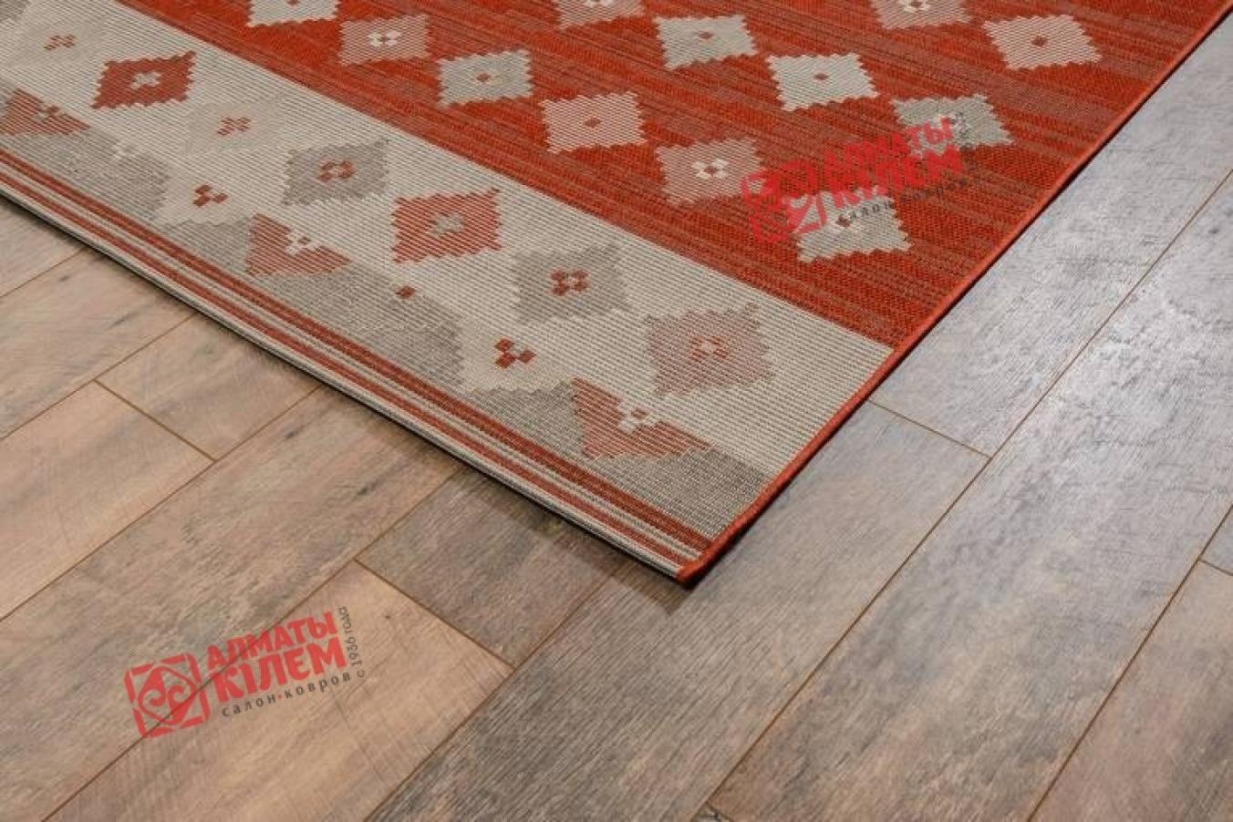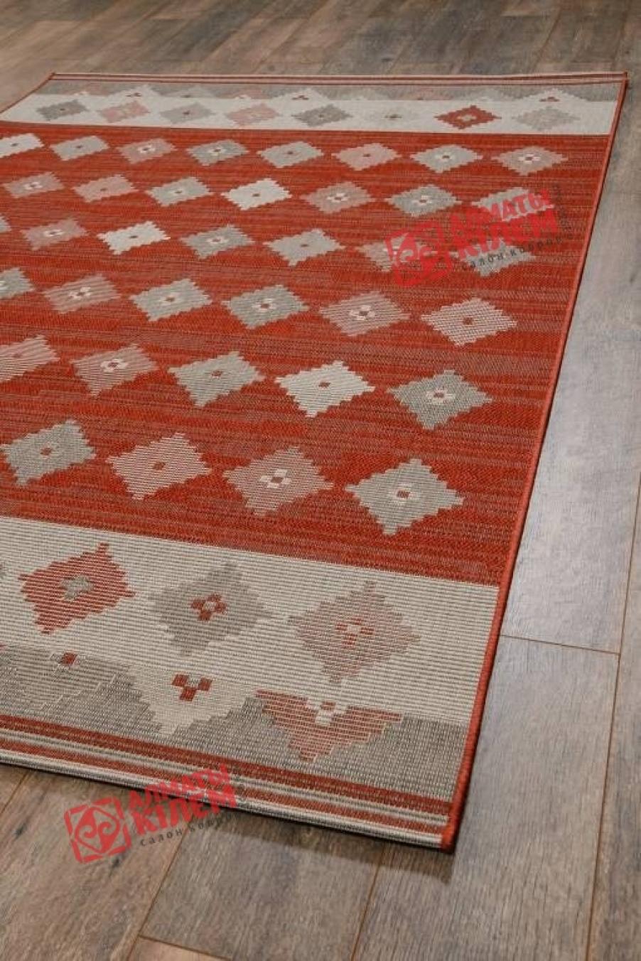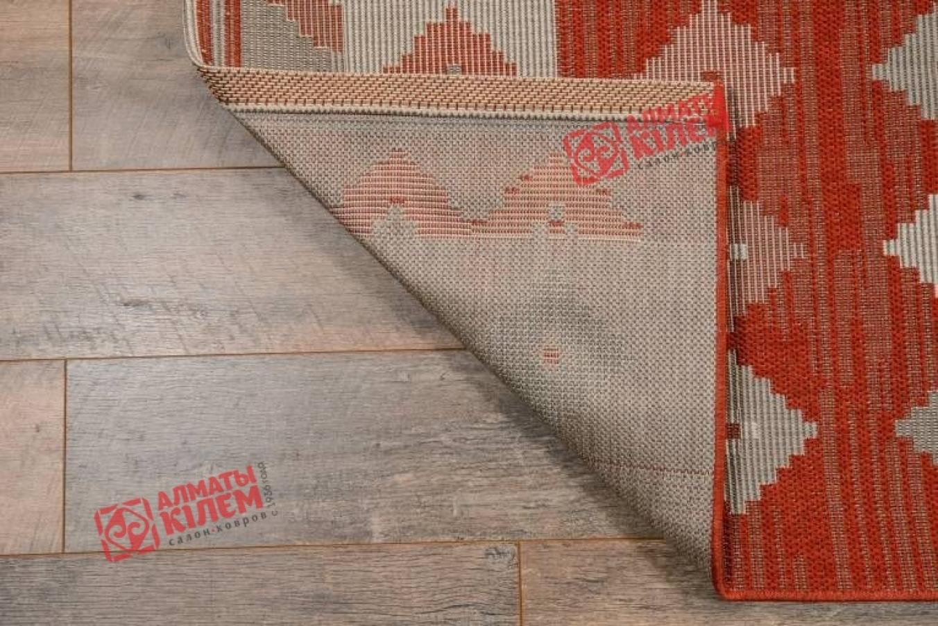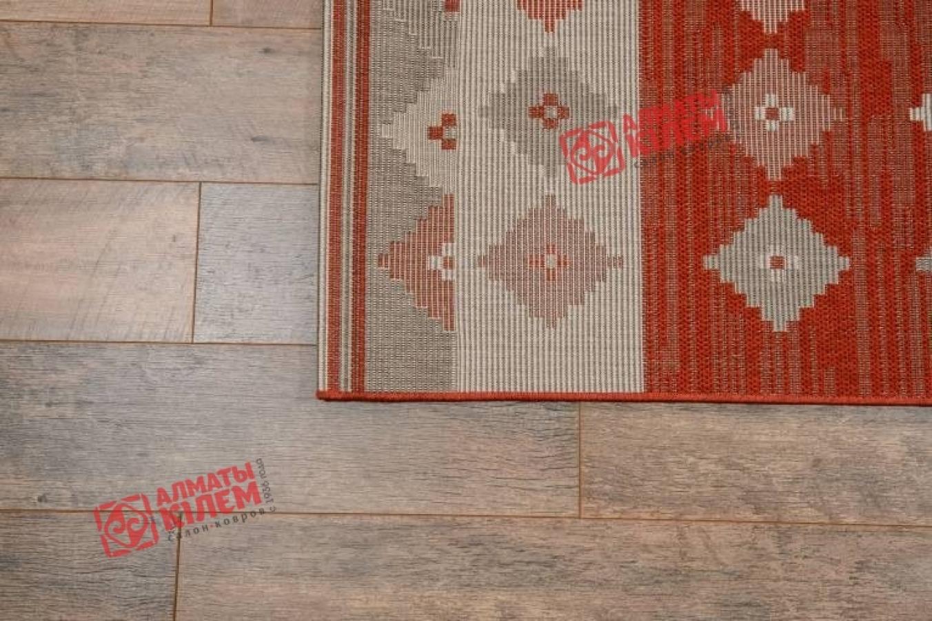 Великолепный напольный безворсовый ковер из бельгийской коллекции «Star» станет прекрасным дополнением интерьера ванной комнаты, прихожей, кухни или столовой. Эти помещения требуют особого подхода к выбору покрытия. Оно должно отличаться простотой в уходе, быть практичным и простым в уходе, не скапливать пыль и грязь, не боятся влаги. В подобных условиях этнический ковер станет идеальным решением. Она не только создаст благоприятную и комфортную обстановку, сделает даже кафельный пол достаточно теплым для хождения в носках или босиком, но и станет прекрасным украшением интерьера. Особую красоту циновке придает геометрический узор в виде серых, белых и розоватых ромбов на красном фоне.