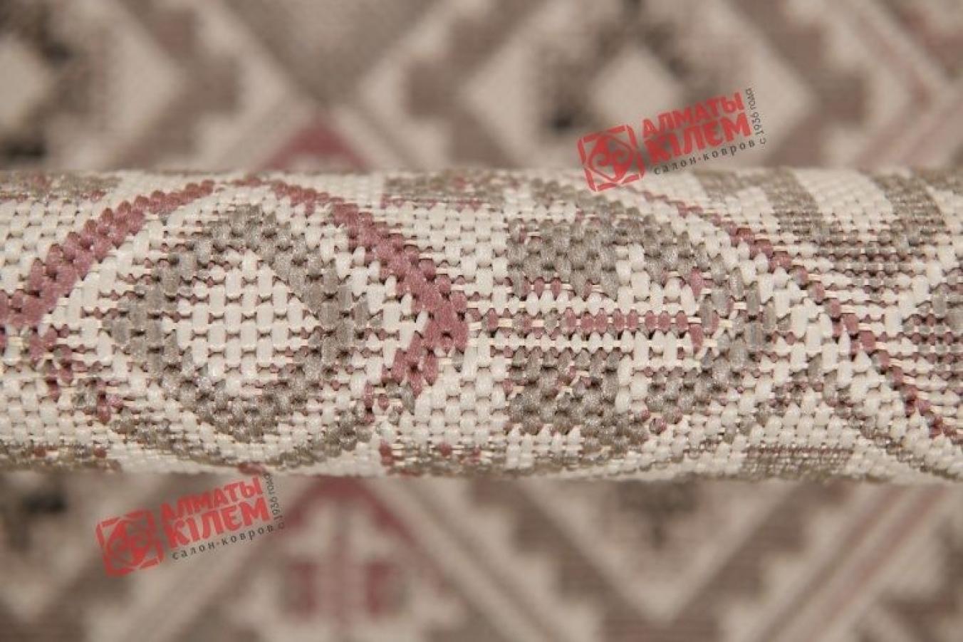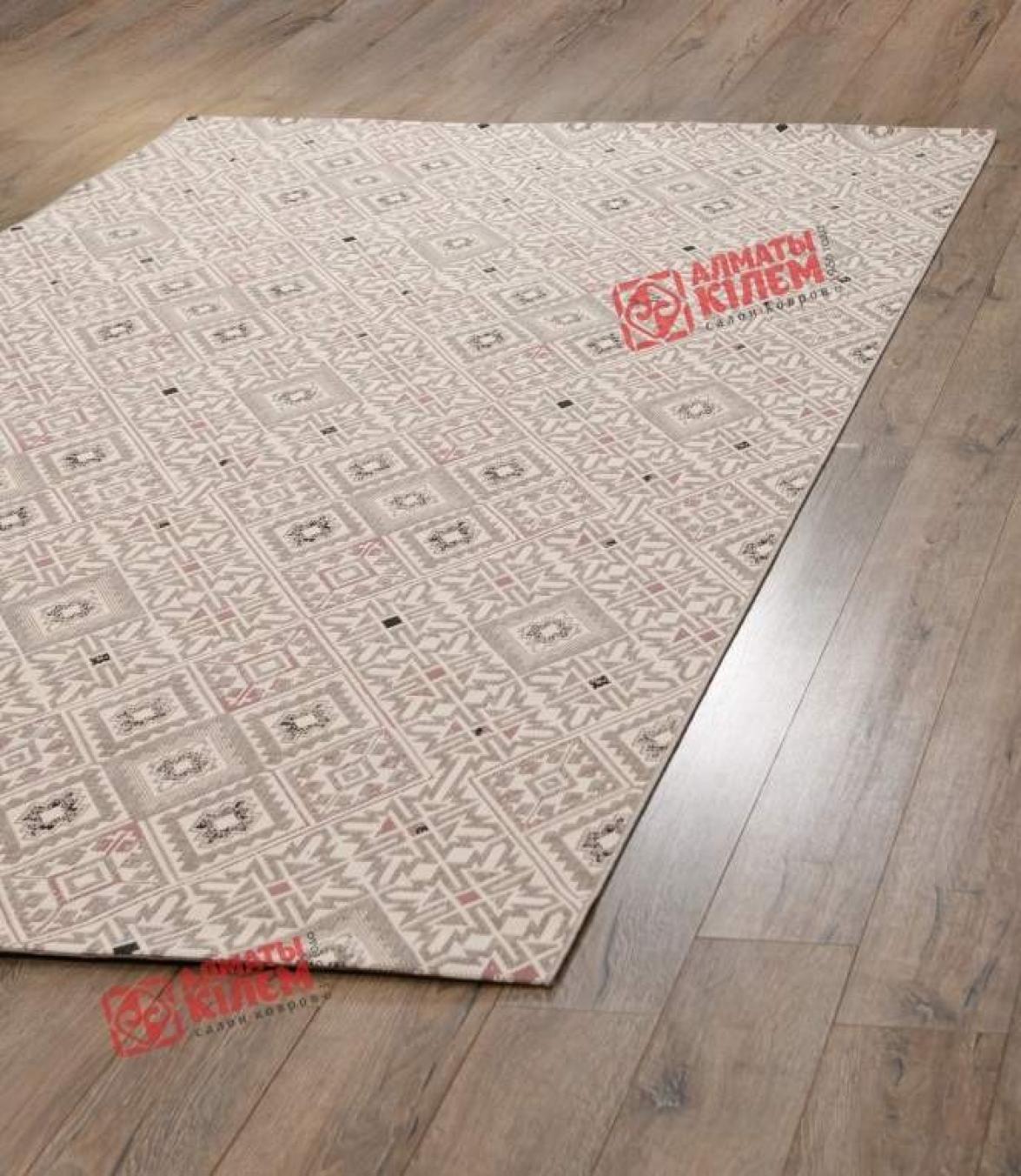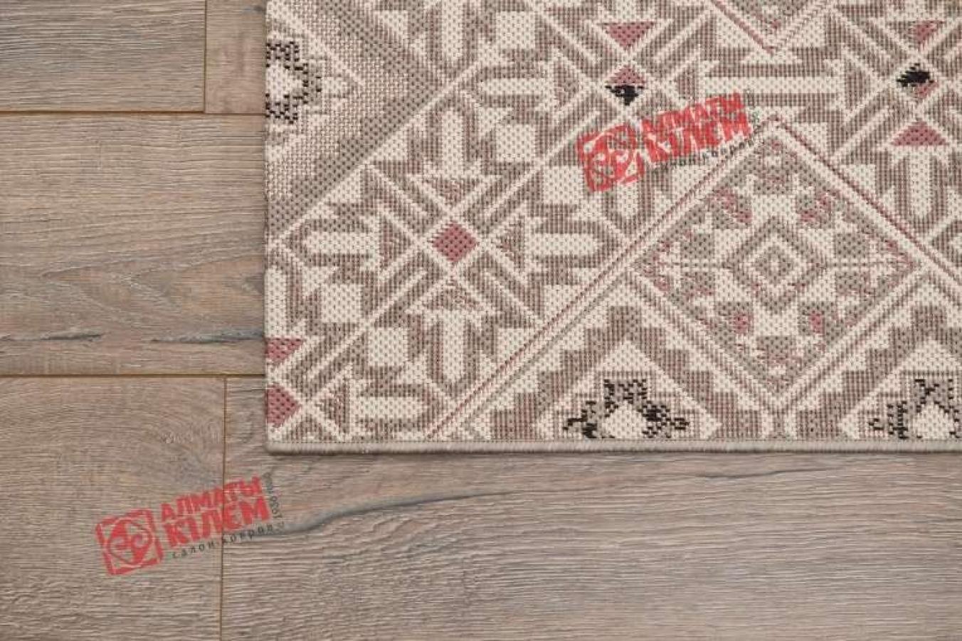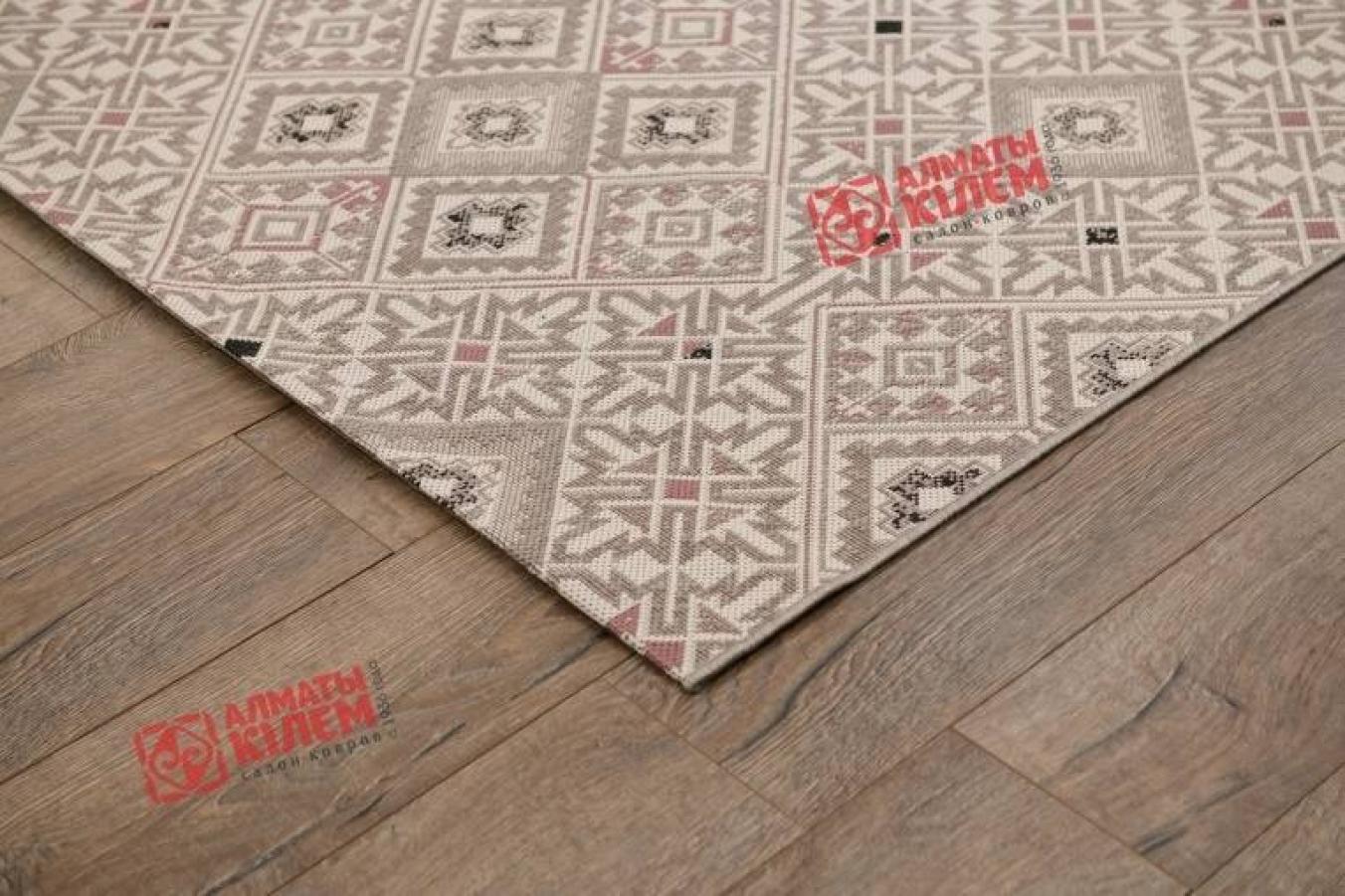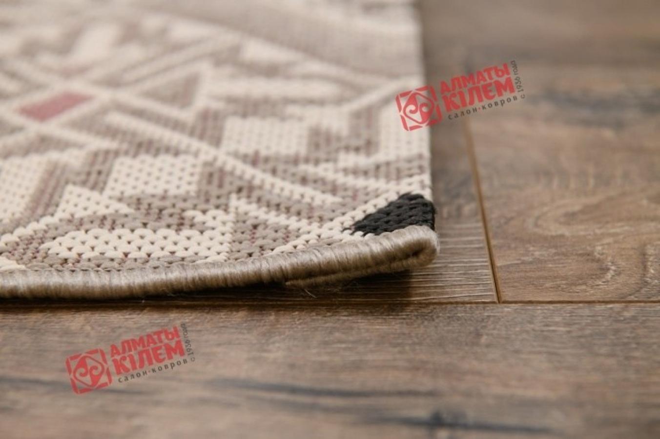 Роскошный безворсовый ковер для создания уютной и комфортной обстановки на кухне, в столовой, прихожей или ванной комнате не оставит равнодушным ни одного поклонника оригинальных интерьеров. Рисунок этнического ковра образован вплетением полипропиленовой нитки в основу с добавлением джута. Он образует геометрический абстрактный узор в виде ромбов, образуемых орнаментом. Бежевый и кремовый оттенки переходят один в другой. Более светлые контрастируют с темными. Отдельные ромбы образуют подобие своеобразных розеток, выделяющихся на общем фоне. Циновка смотрится элегантно и утонченно, а также немного строго, поэтому уместна и в классическом, и в современном дизайне.