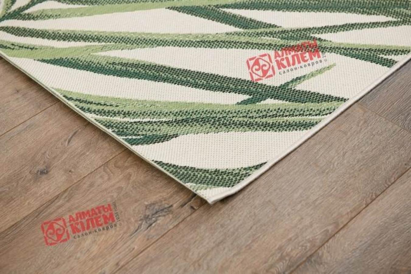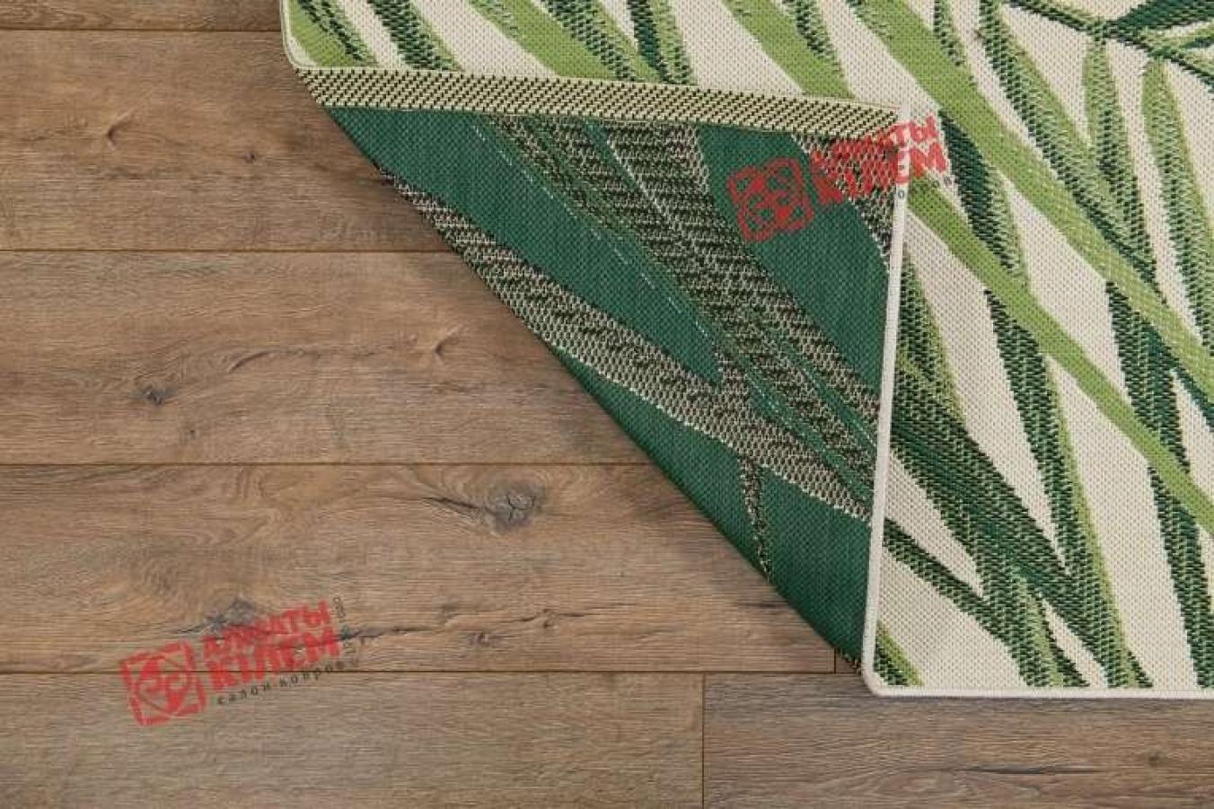 Роскошная циновка из коллекции «Star» представляет собой покрытие из полипропилена. Модель лишена ворса и прекрасно вписывается абсолютно в любой интерьер. Идеально подойдет ковер в душевую и ванную комнаты, прихожей, кухни, столовой. Она может выполнять утилитарную или декоративную функцию. На бежевом полотне изображен огромный лист, сочетающий в себе светло- и темно-зеленые оттенки. Такой дизайн великолепно освежает интерьер. Покрытие не боится влаги, не вызывает аллергической реакции, а также оставляет после себя исключительно приятные тактильные ощущения.