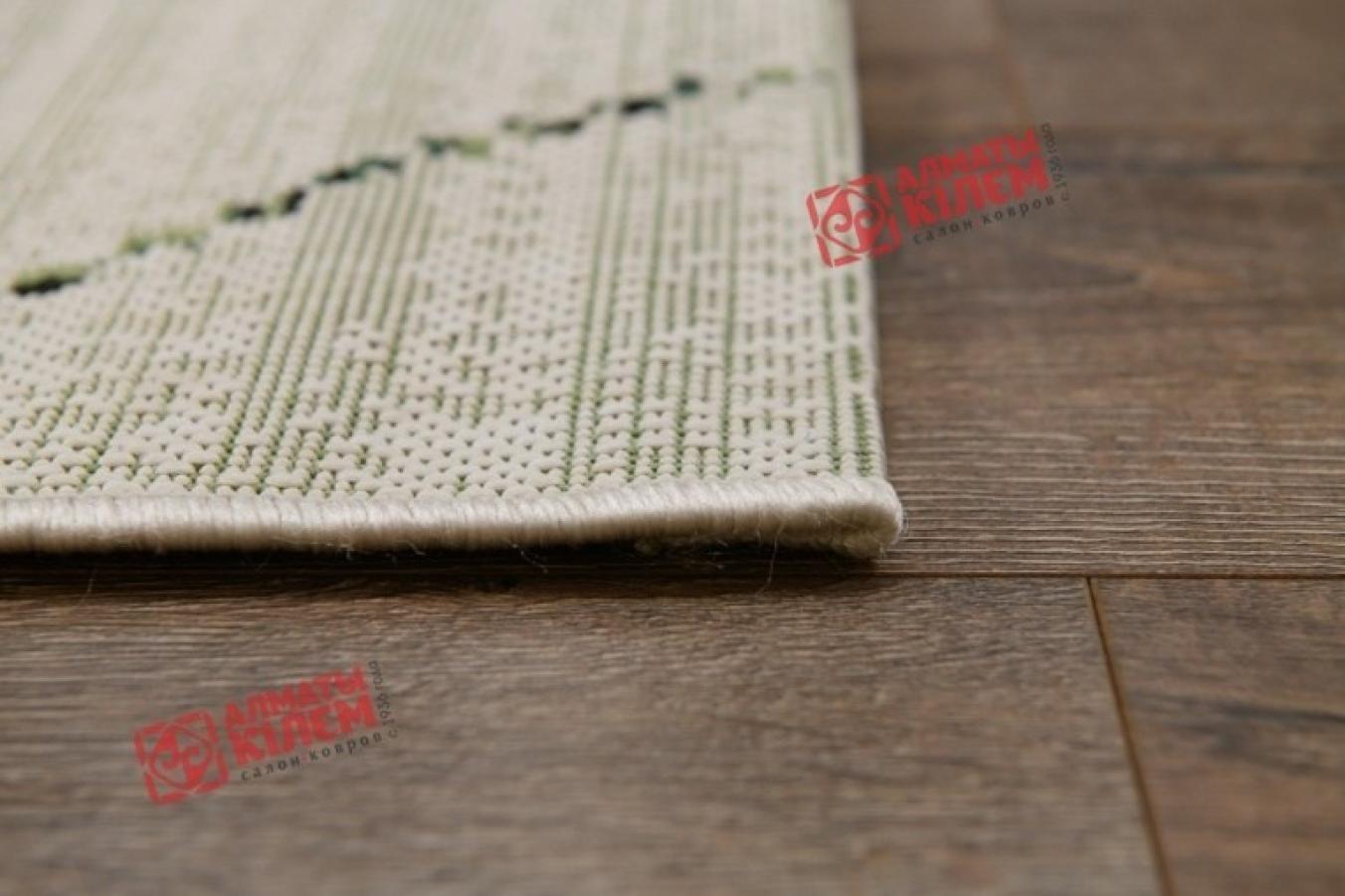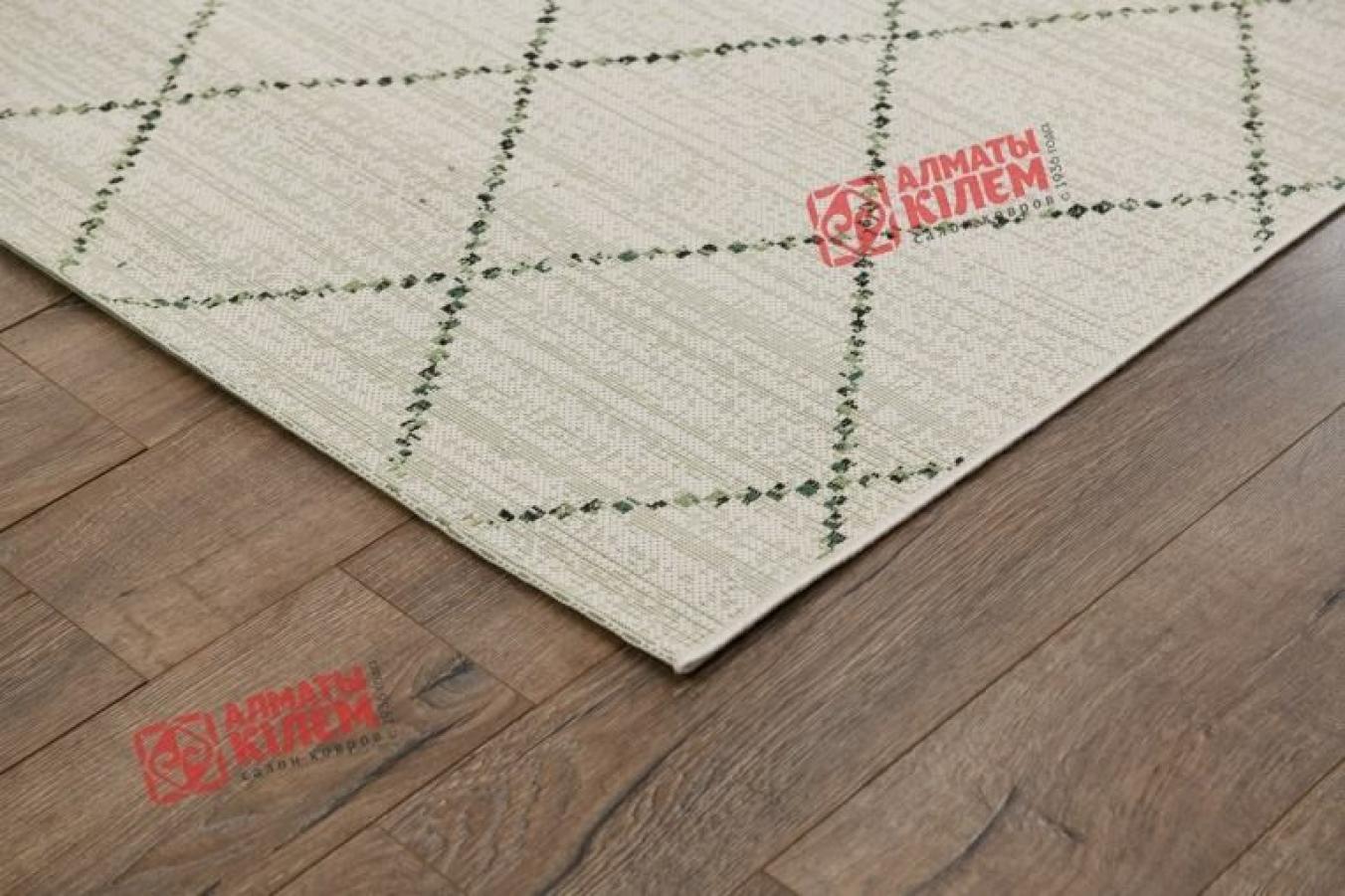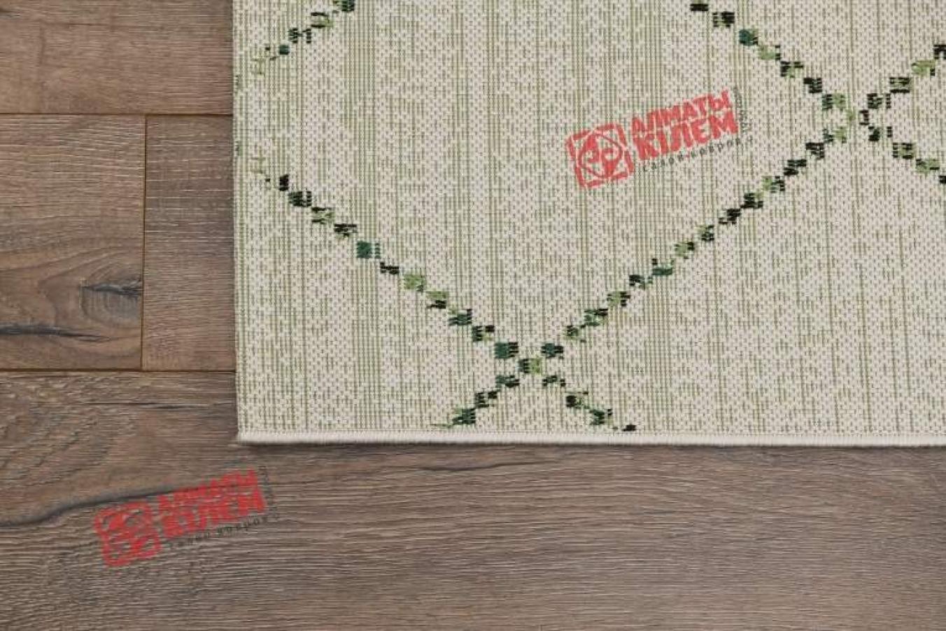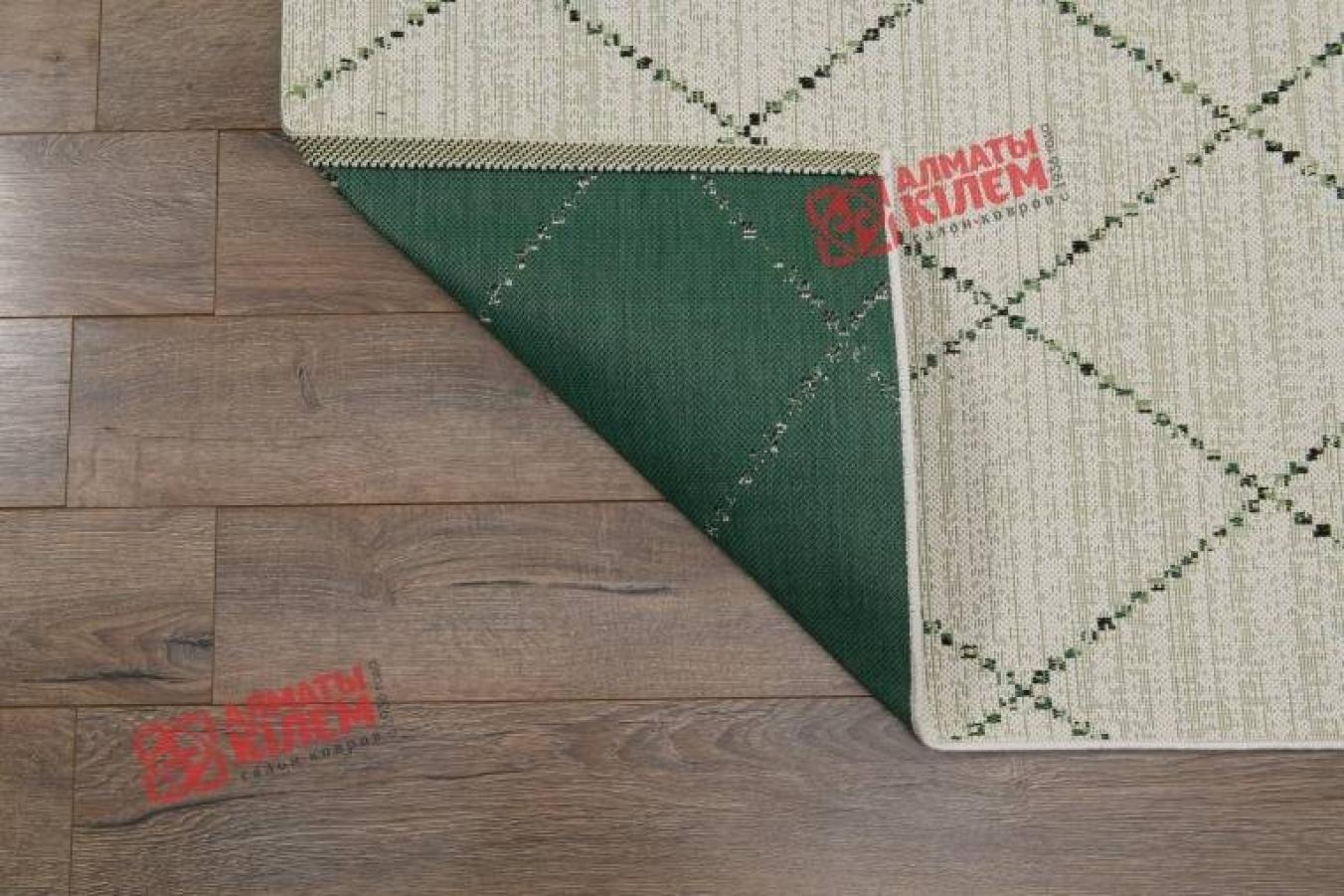 Великолепная циновка из полипропилена с добавлением в основу джута для большей эластичности. Отсутствие ворса придает покрытию множество преимуществ. Оно не забивается пылью и дольше сохраняет опрятный и чистый вид. Уход за покрытием не доставляет абсолютно никаких проблем. Полипропиленовое волокно устойчиво к влаге. Безворсовый ковер отлично вписывается в современные интерьеры кухонь, столовых, ванных комнат, прихожих. Декор ковра в ванную заслуживает отдельного внимания. Темно-зеленая полоска на бежево-кремовом фоне образует ромбовидный узор, который придает изделию утонченный и изысканный вид, позволяющий полностью преобразить дизайн помещения.
