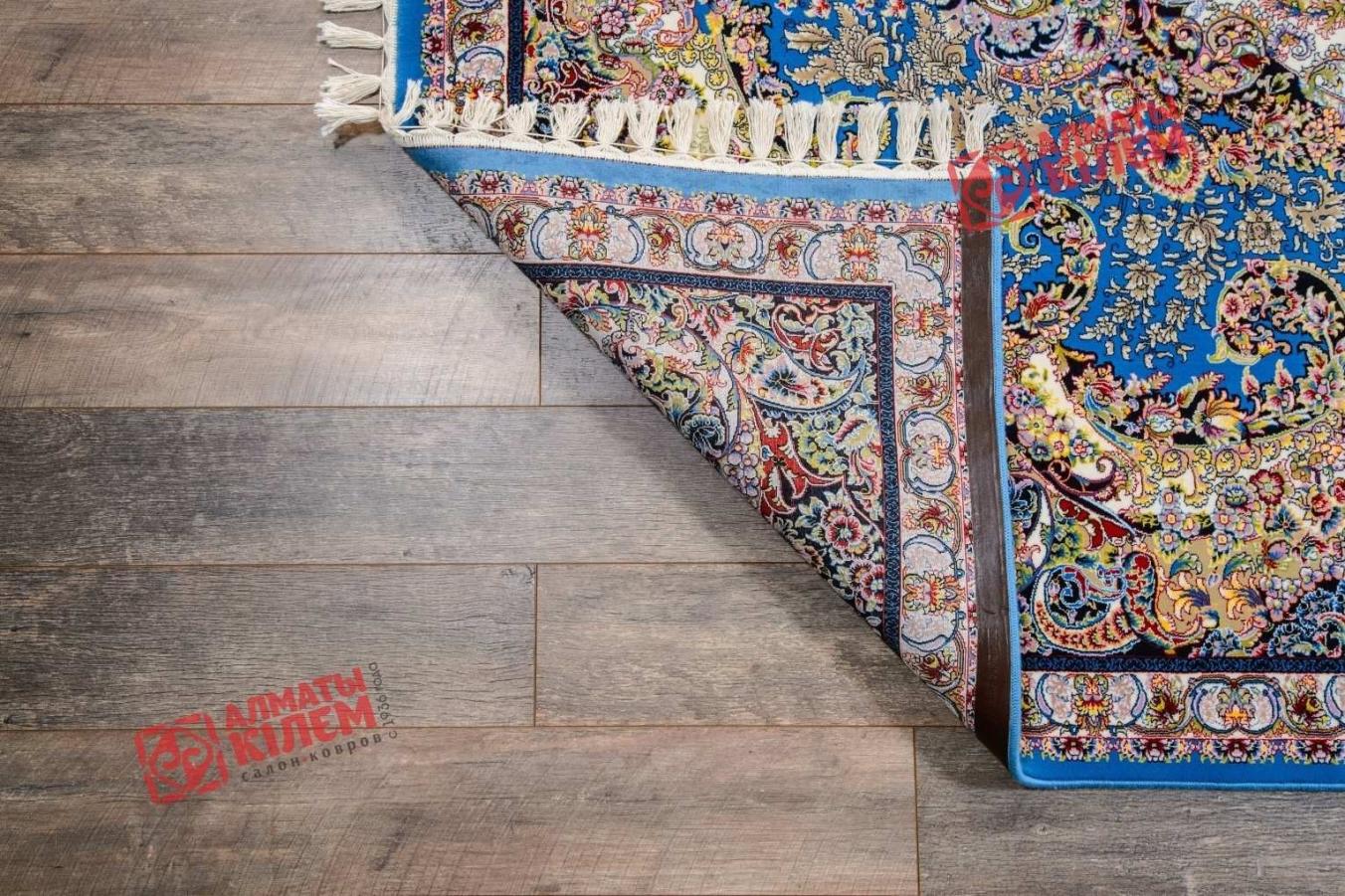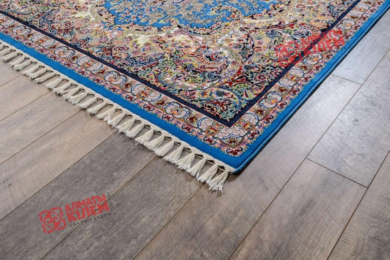 Персидский классический ковер из коллекции «Super Mashad» — истинное воплощение роскоши и изысканности. Центральная золотистая розетка с вкраплениями бордового, зеленого, синего обрамлена великолепной ажурной рамкой на синем фоне. Завершает центральный рисунок роскошная окантовка, полностью повторяющая каждый замысловатый завиток основного узора. Завершает винтажный ковер бахрома, собранная в кисточки. Великолепный ковер станет прекрасным украшением меблированных комнат, кабинетов руководителей и офисных интерьеров, а также будет роскошно смотреться в больших холлах и прихожих. Он смотрится красиво даже обособленно и может стать чуть ли не единственным предметов обстановки.