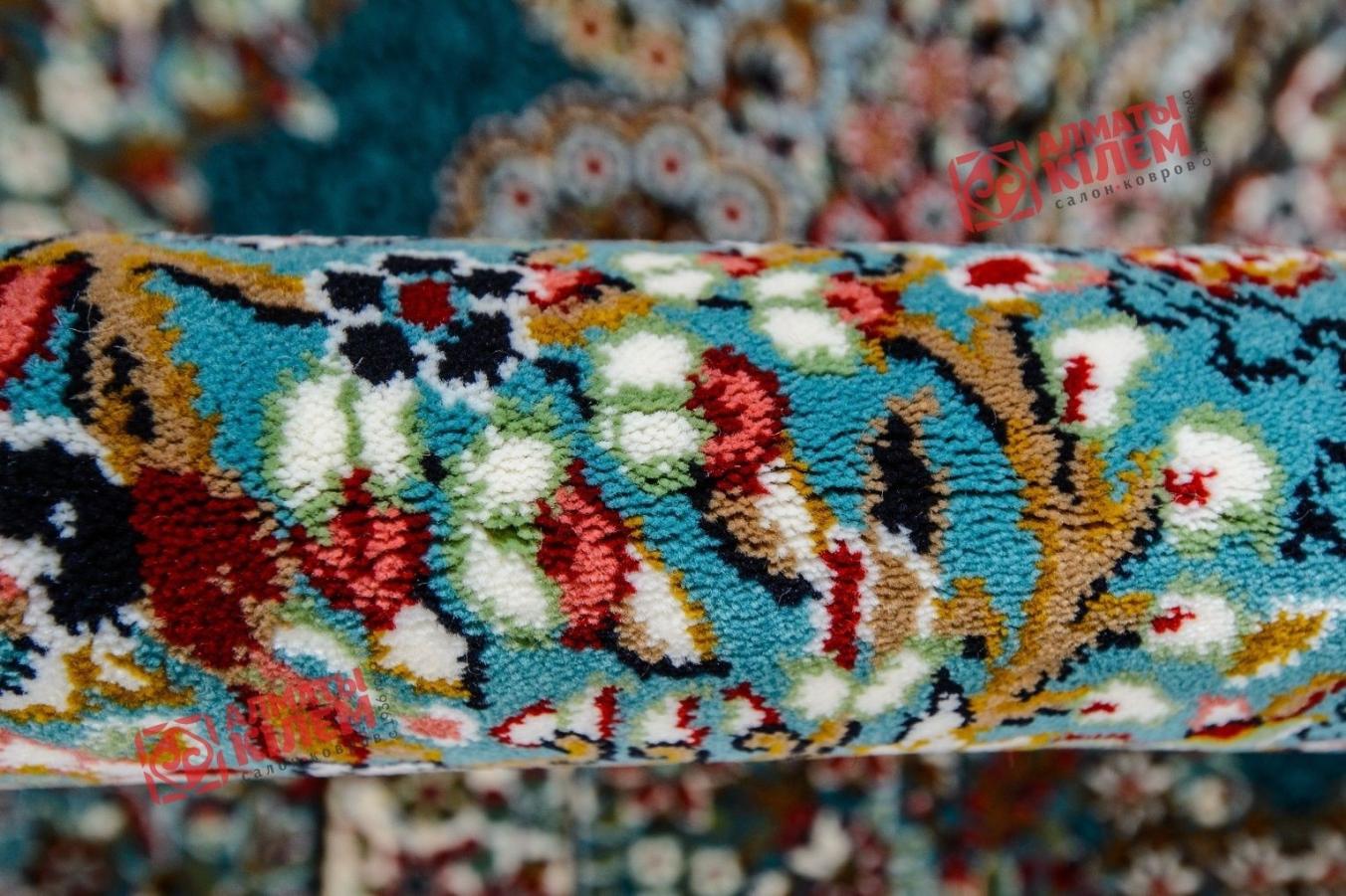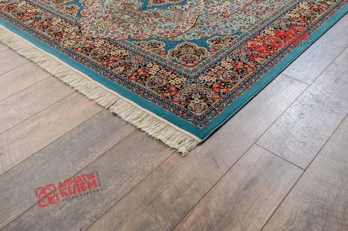 Классический персидский ковер из коллекции «Super Tabriz» синего цвета олицетворяет собой чистый небосклон и наполняет обстановку атмосферой уюта и свежести словно легким бризом. Изысканный узор, напоминающий собой драгоценность с россыпью драгоценных камней, окружен нежным ажурным кружевом. На фоне последнего рисунок смотрится особенно роскошно и красиво. Дополняет концепцию дизайна рамка с изысканным традиционным персидским узором, часть которых напоминает павлиньи хвосты, бахрома и синее обрамление. Лучше всего будет смотреться ковер в прихожих, больших холлах, богато обставленных гостиных комнатах, спальнях, столовых, кабинетах и офисах.