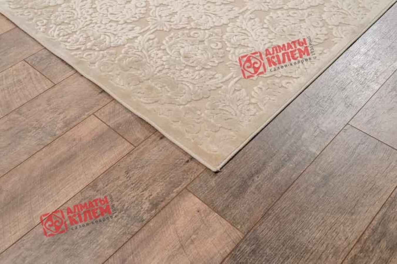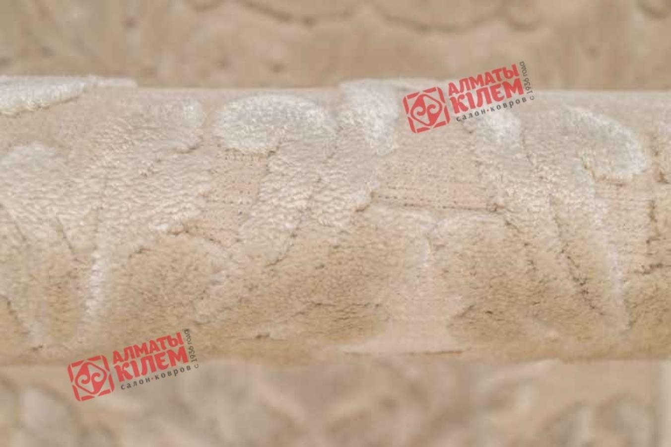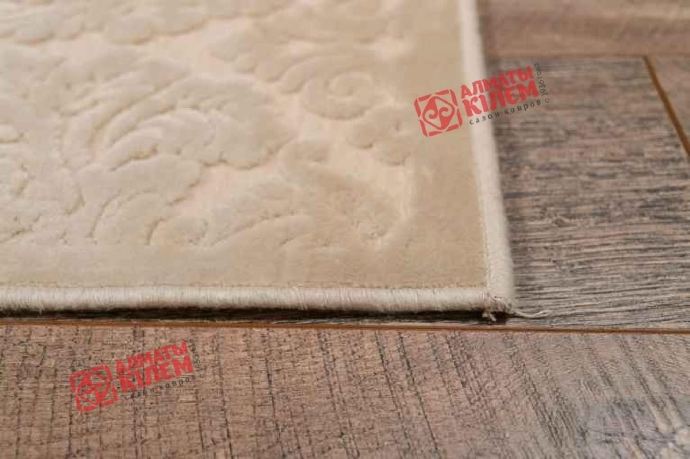 Изысканная утонченность кремового ковра в неоклассическом стиле преобразит интерьер гостиной, спальни, столовой, прихожей, офиса и кабинета. Нежная палитра и переливы, создаваемые ворсом из вискозы, буквально преображают обстановку. Полотно словно покрыто тонким золотым напылением. Однотонный ковер поддержит монохромную светлую палитру в дизайне комнаты или, наоборот, станет акцентным элементом в темных тонах, создавая оригинальный контраст. Особую красоту изделию придает узор, образуемый более темного кремового оттенка и длины ворсом. Рисунок в виде вензелей с флористическими мотивами дополнен рамкой в аналогичном оттенке, эффектно завершающей всю композицию.