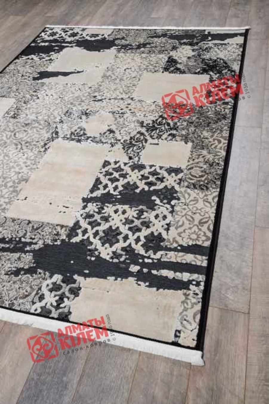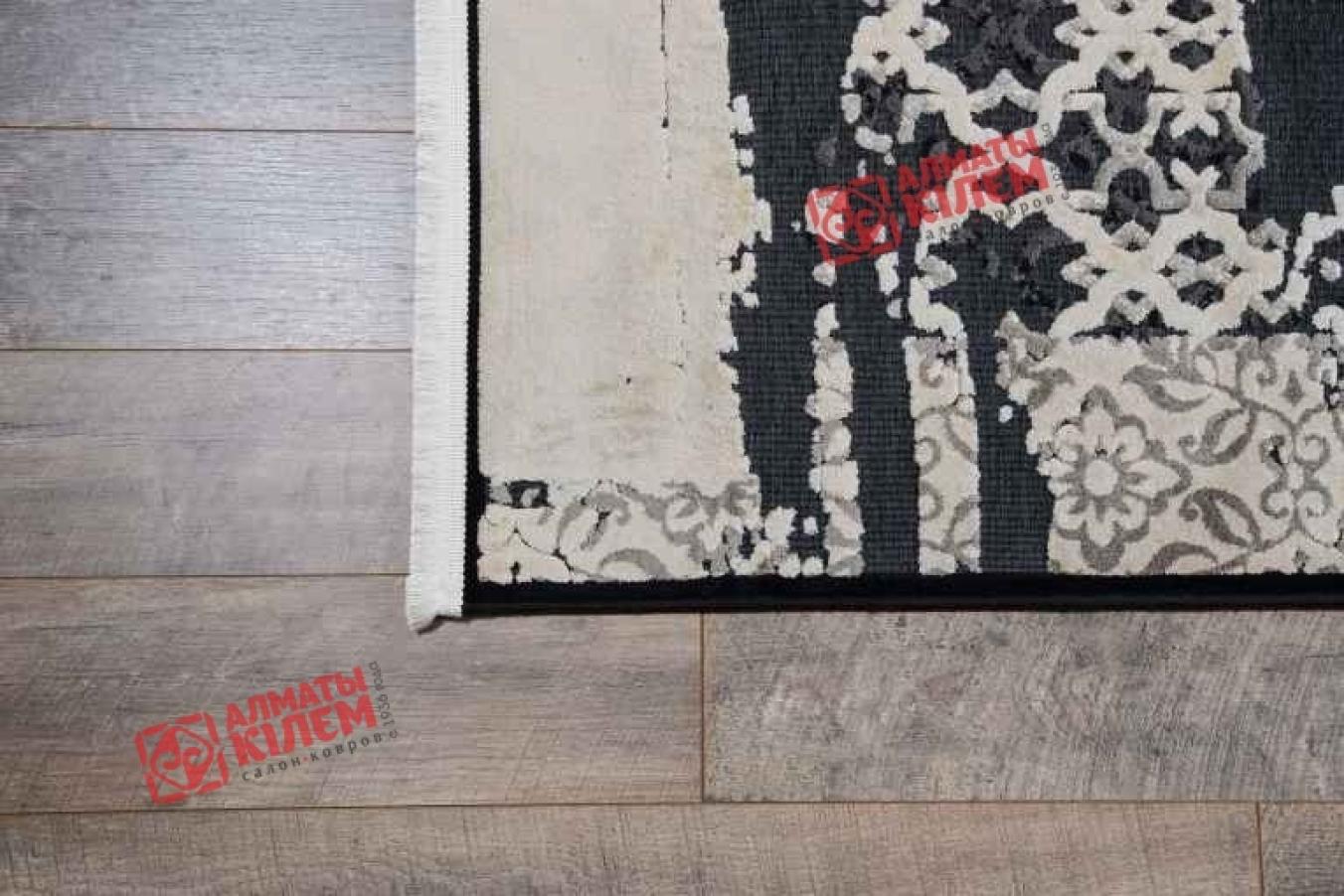 Великолепный ковер в современном стиле буквально преобразит ваш интерьер. Легкий блеск вискозы в черно-серой гамме придаст обстановке особого шарма и изысканности. Оригинальный рисунок и контрастная палитра сочетаются с монохромными, пастельными и яркими предметами меблировки, текстиля, декора. Ворс светлого узора выше основного темного. Это создает красивый эффект того, что он словно выбит. Мотив разнообразен и потерт в некоторых местах, что делает дизайн по-настоящему уникальным. Завершенность узору придает темное обрамление по краю, контрастирующее со светлой бахромой. Ковер идеально впишется как в традиционную домашнюю обстановку, так и украсит офисы, кабинеты, приемные.