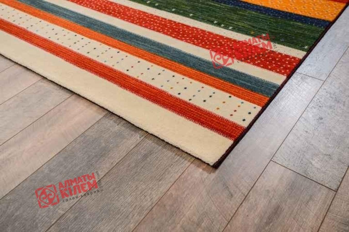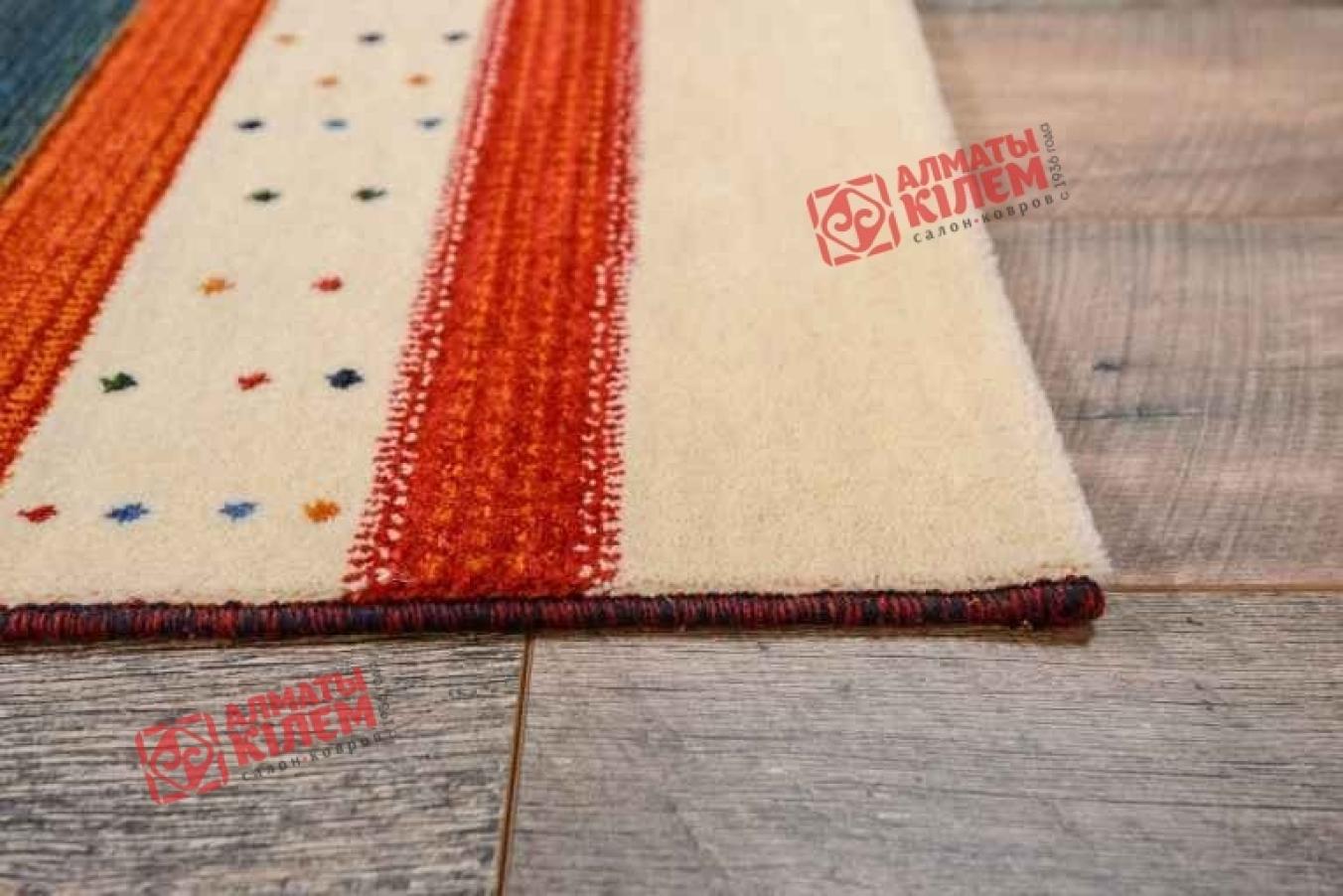 Великолепный шерстяной напольный ковер в этническом стиле прекрасно впишется в любой интерьер. Он отлично подходит как к монохромной обстановке, так и к оригинальной с цветными элементами. Детский ковер может стать акцентным или поддерживающим штрихом в гостиной, спальне, столовой, прихожей. Модель станет великолепным украшением кабинета или офиса креативной компании. Полотно из стопроцентной шерсти невероятно приятно на ощупь и при ходьбе. Особого внимания заслуживает дизайн изделия. Оно украшено множеством полосок различной ширины. Светлые перемежаются с цветными красными и синими, что смотрится словно глоток свежего воздуха и буквально наполняет обстановку позитивным настроением.