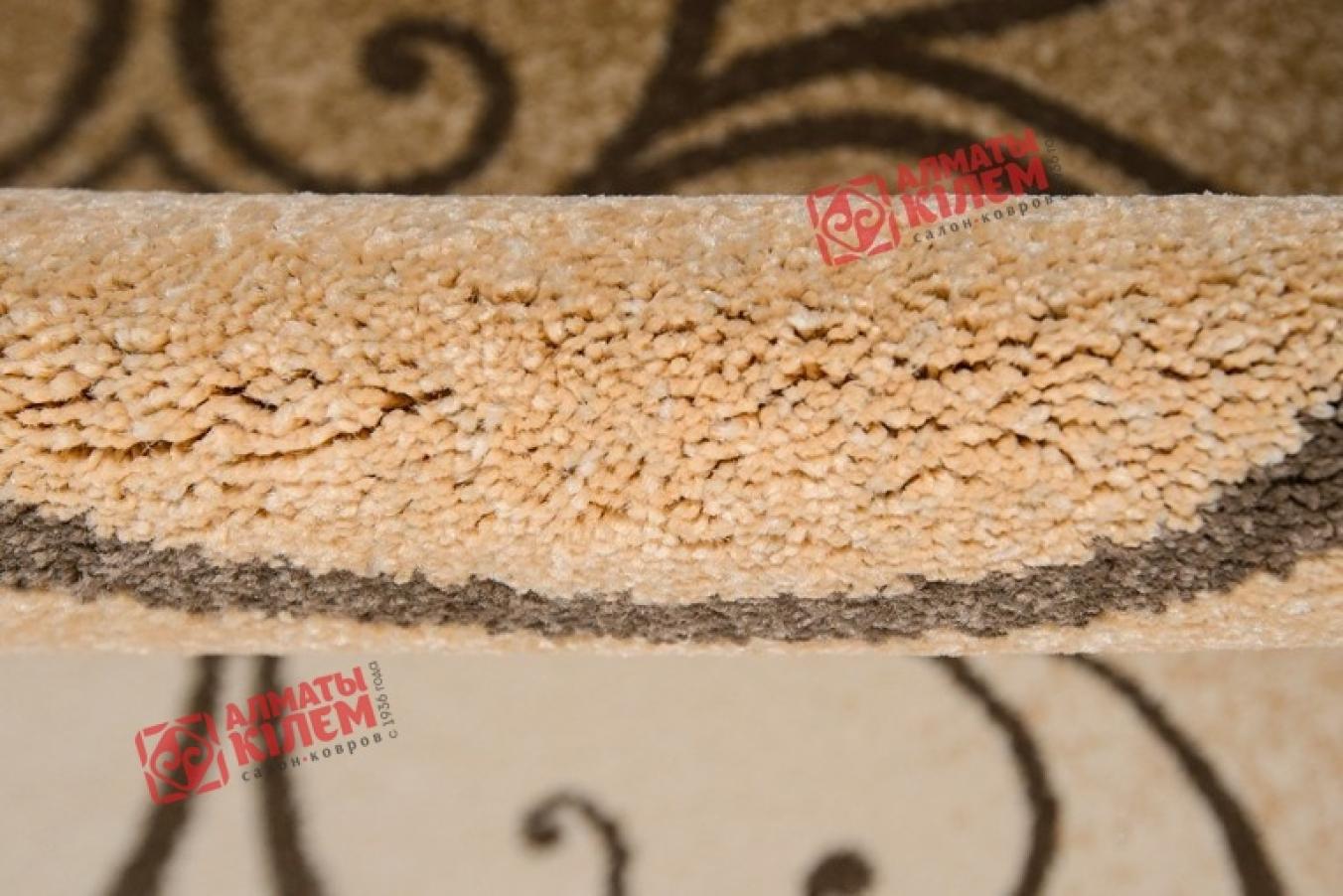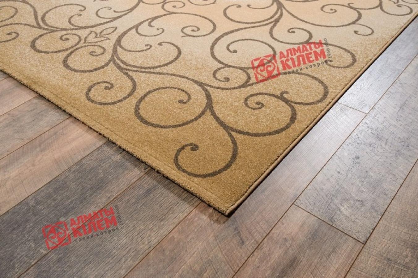 Невероятно красивый и оригинальный напольный бельгийский ковер привлекает к себе внимание с первого взгляда. Выбор этого покрытия позволяет преображать абсолютно любые интерьеры. Слегка холодная цветовая гамма бежевого оттенка с градиентным переходом. Центральная часть покрытия светлая, а к краям становится темнее, покрываясь небольшими точечками, создавая ощущение того, что от гладкой поверхности оно переходит к более фактурной. Узор образуется витиеватым переплетением полосок коричневого оттенка, которые создают замысловатый рисунок с роскошной центральной розеткой. Ковер великолепно впишется как в домашнюю, так и офисную обстановку, становясь великолепным акцентным декором.