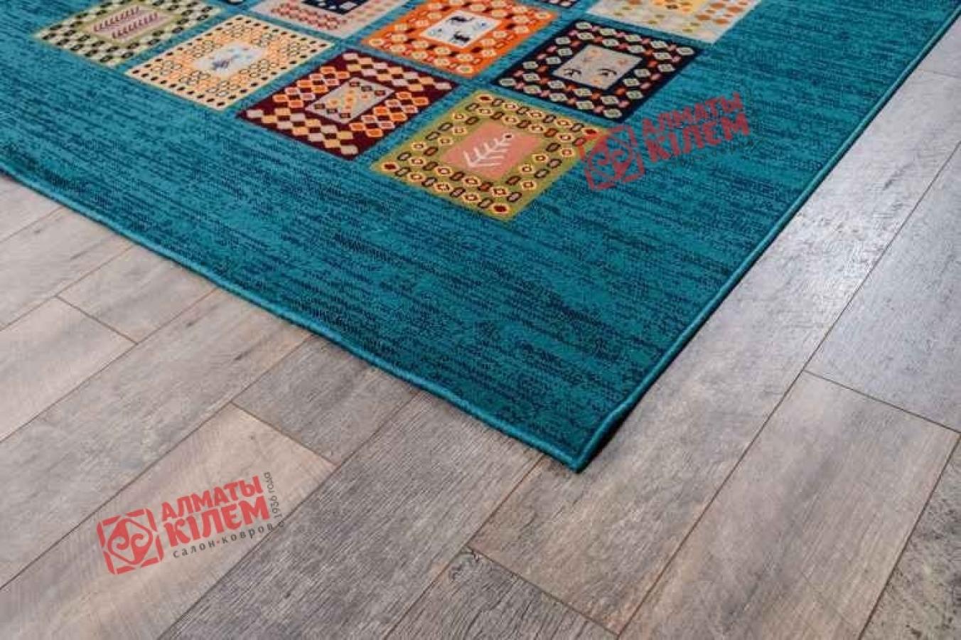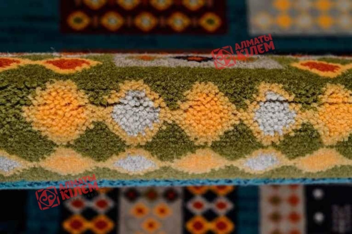 Роскошный ковер от монгольского бренда «Erdenet Carpet» из шерстяного волокна с добавлением полиамида наполнит интерьер вашей квартиры, дома или кабинета неповторимой атмосферой уюта, комфорта и позитивного настроения. На ярко-бирюзовом фоне красуется хешот. Он представляет собой традиционный для персидских классических ковров узор со множеством прямоугольных элементов, расположенных в шахматном порядке. Каждый имеет свой оттенок.
