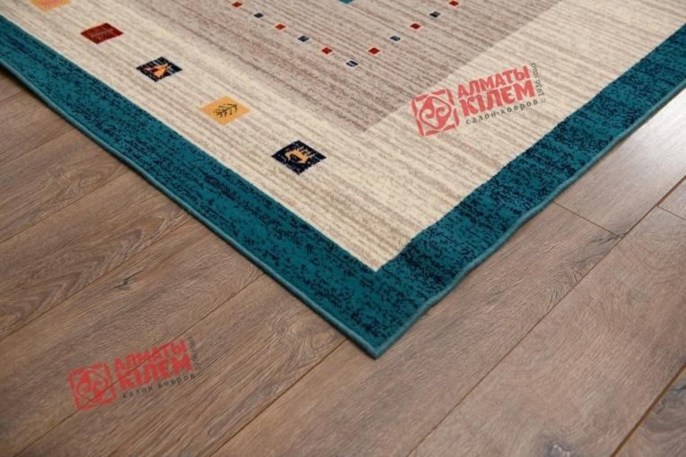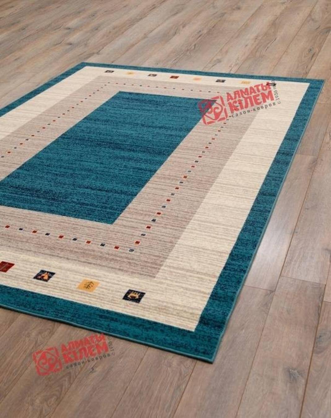 Шерстяной напольный ковер с добавлением полиамида, купить который с доставкой может любой казахстанец прямо на сайте Алматы-Кілем, отличается высокой износоустойчивостью, эластичностью. Ковер с геометрическим узором станет идеальным выбором для современного интерьера квартиры, дома, офиса или кабинета. Рисунок в виде яркого прямоугольника в центре, окруженного несколькими бордюрами, визуально расширяет пространство комнаты.