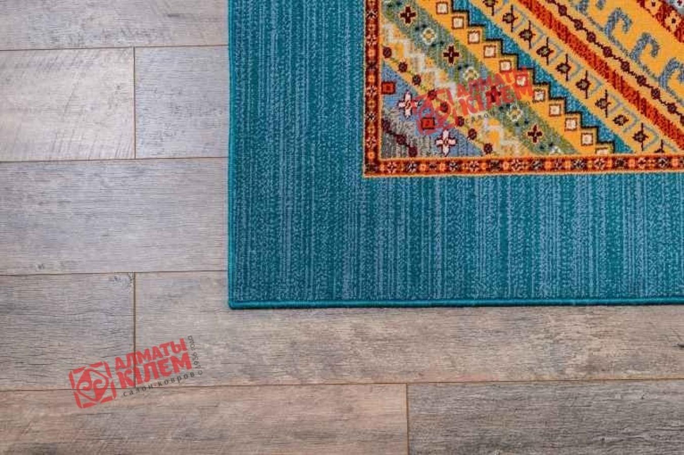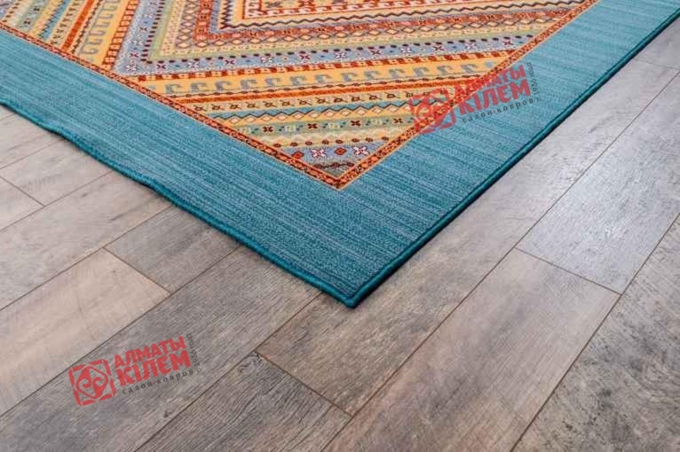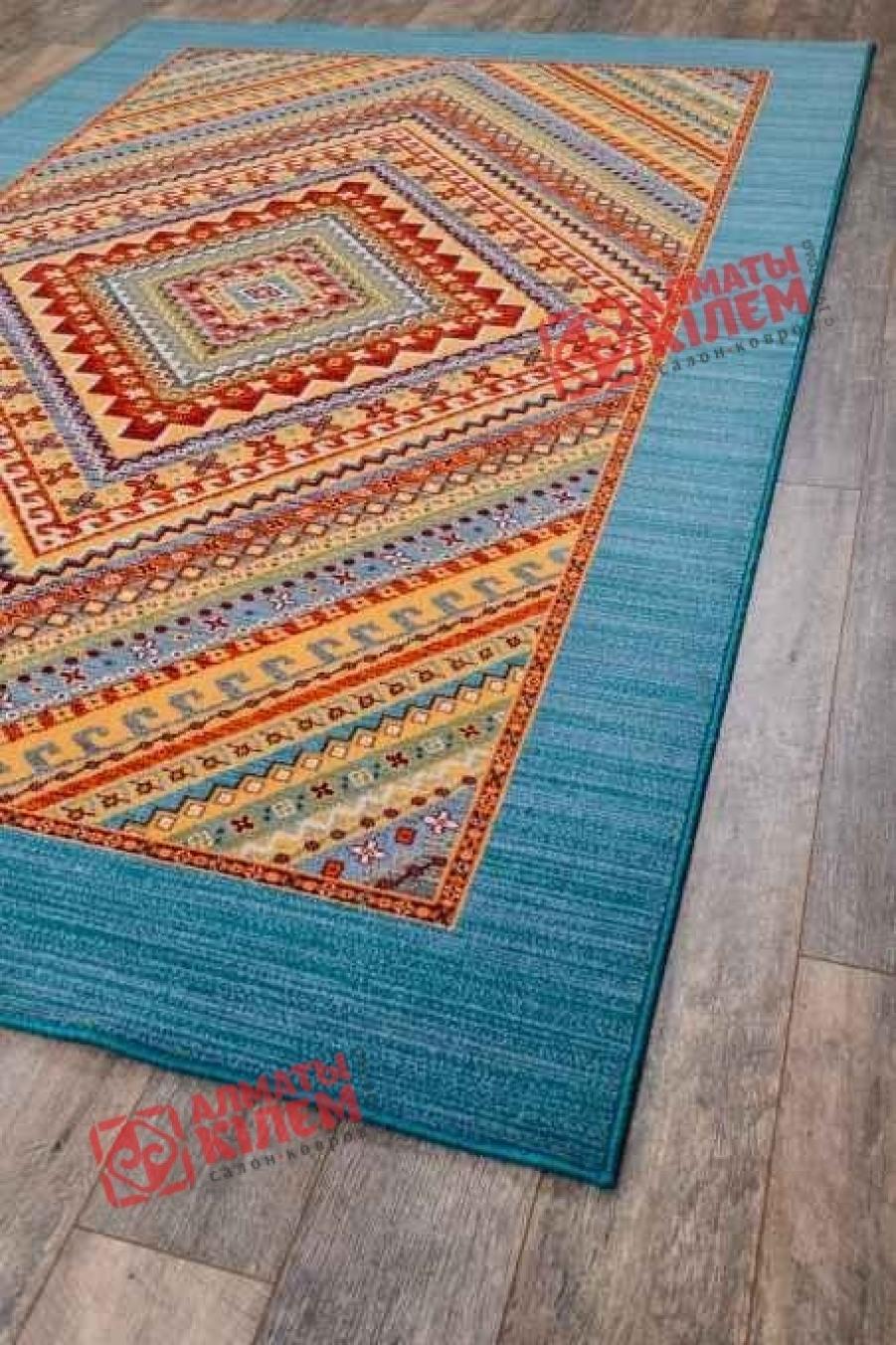Яркость и оригинальность узора монгольского ковра из коллекции «Юникарпет» не оставит равнодушным абсолютно никого. Выполненный из шерсти с добавлением полиамида, он станет акцентным элементом всего интерьера и придаст помещению неповторимую атмосферу комфорта и уюта. Украшает модельс бирюзовым фоном, купить которую можно с доставкой в любой город Казахстана, геометрический рисунок в виде цветных треугольников.