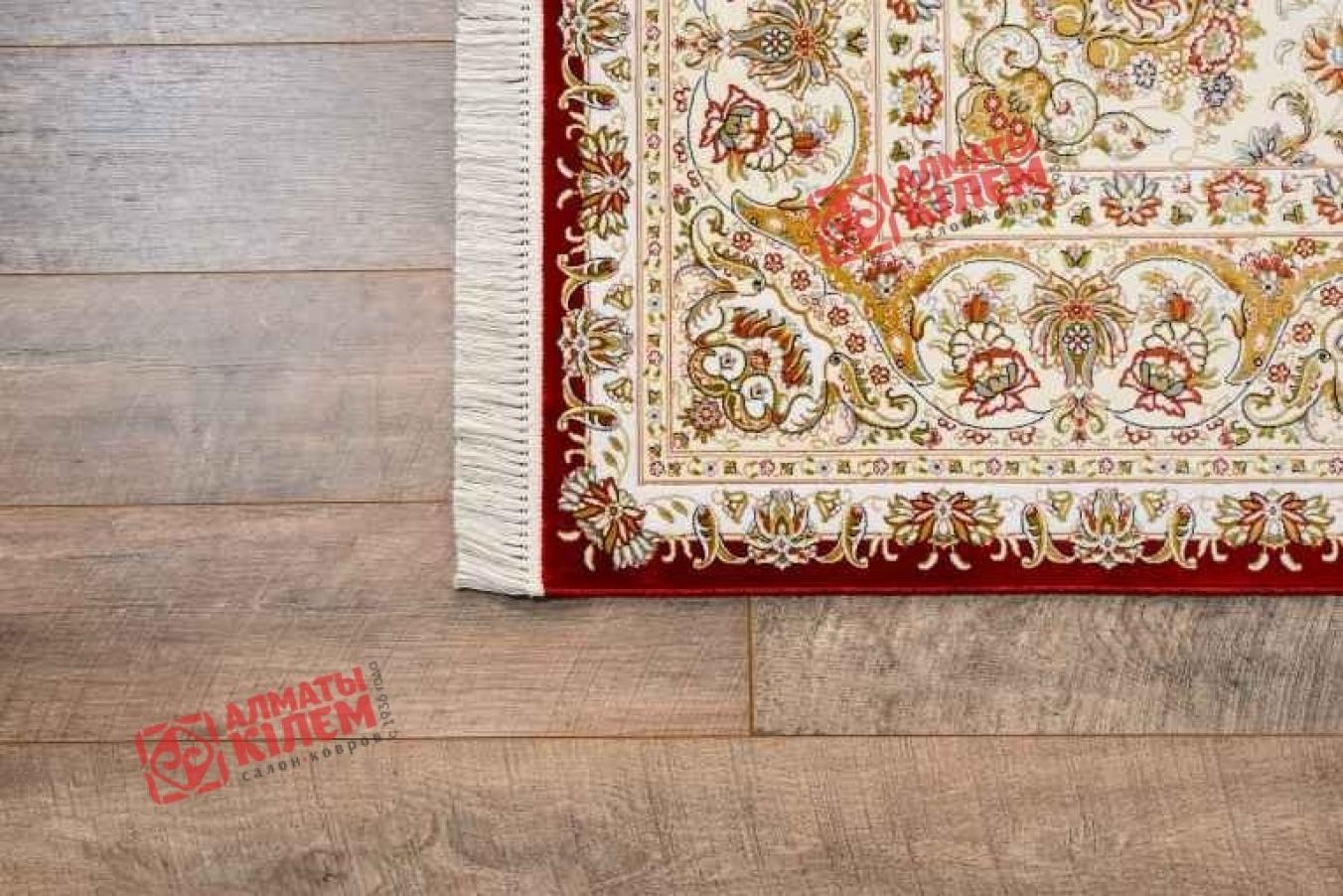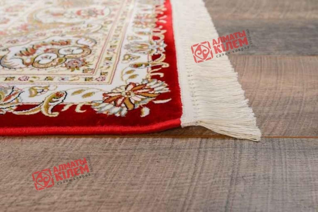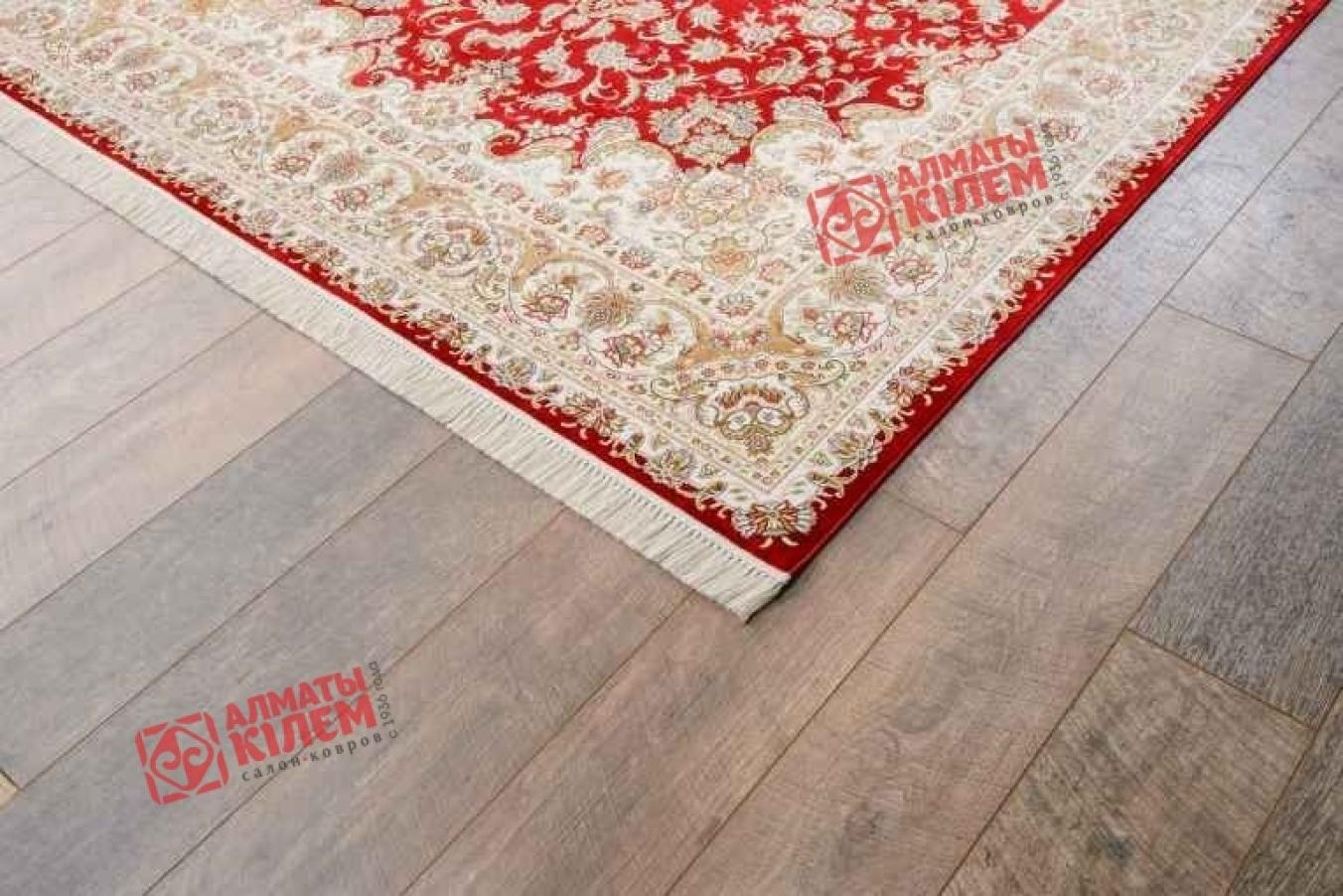 Шикарный бельгийский ковер из натурального бамбукового волокна, называемого еще «шелком», буквально создан для украшения самых роскошных и богато обставленных интерьеров. Центральная красная розетка словно изысканный драгоценный камень обрамлена бежево-золотистой широкой рамкой с цветочным узором. Он перекликается с сердцевиной светлого оттенка. Завершенность полотну придает красная окантовка и густая бахрома по краям. Основной яркий цвет ковра гармонично сочетается с бежевым и золотистым. Ковер из шелкового бамбука прекрасно смотрится в кабинетах и офисах. Он отлично вписывается в интерьеры гостиных, спален, столовых, прихожих и холлов.