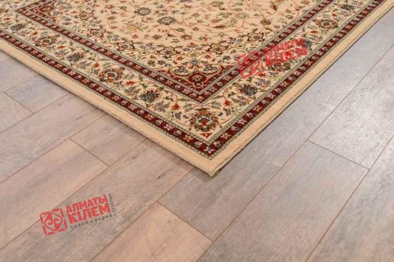 Великолепный ковер из натуральной шерсти с добавлением акрилового волокна для придания эластичности и устойчивости к износу станет главным украшением классических интерьеров. Сдержанная бежевая палитра в сочетании с бордовым и болотным смотрится одновременно роскошно и сдержанно. Классический дизайн с традиционными для персидских ковров ручной работы медальоном и бордюром подчеркивает богатство обстановки. Шерстяной ковер прекрасно смотрится абсолютно в любой комнате дома или квартиры. Оно отлично вписывается в интерьеры офисов, кабинетов, приемных. Высокий ворс оставляет после себя исключительно приятные тактильные ощущения.