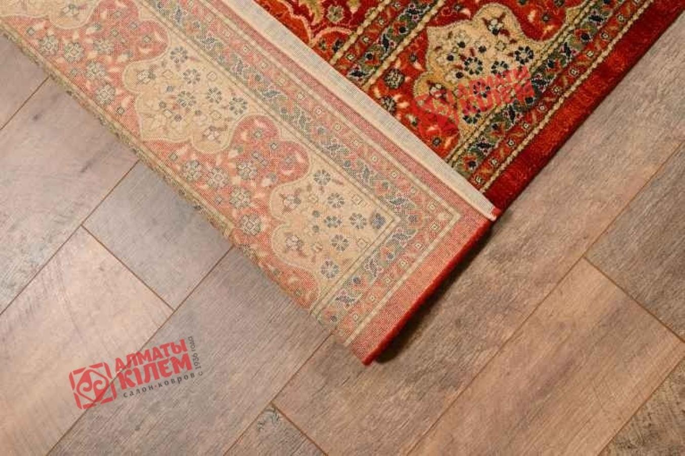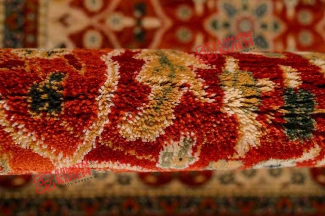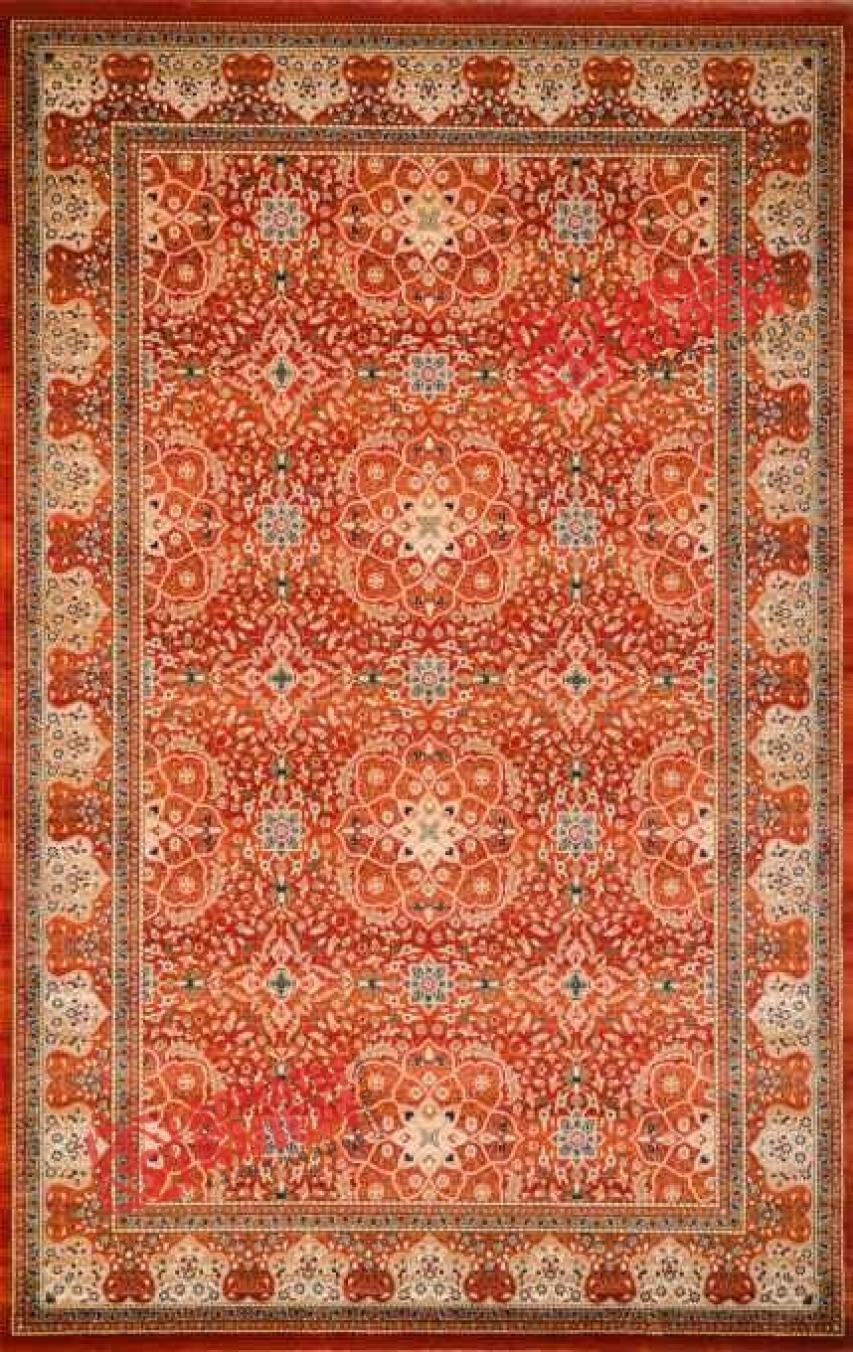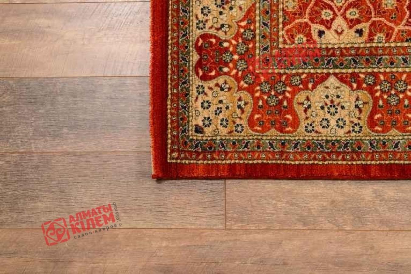 Роскошный терракотовый напольный ковер в классическом дизайне станет великолепным дополнением богато обставленных квартир, домов, офисов, административных и культурных учреждений. Он сочетает в себе лучшие традиционные черты, присущие признанным лучшими в мире персидским изделиям ручной работы. Высокий ворс придает рисунку особую изысканность и роскошь. Ходить по нему — это одно сплошное удовольствие как на босую ногу, так и в обуви. Терракотовый фон и бежевый узор на медальоне и бордюре придают модели особую красоту и изысканность. Синие вкрапления добавляют покрытию яркости и свежести, а ажурные элементы — нежности и воздушности, которые передаются обстановке.