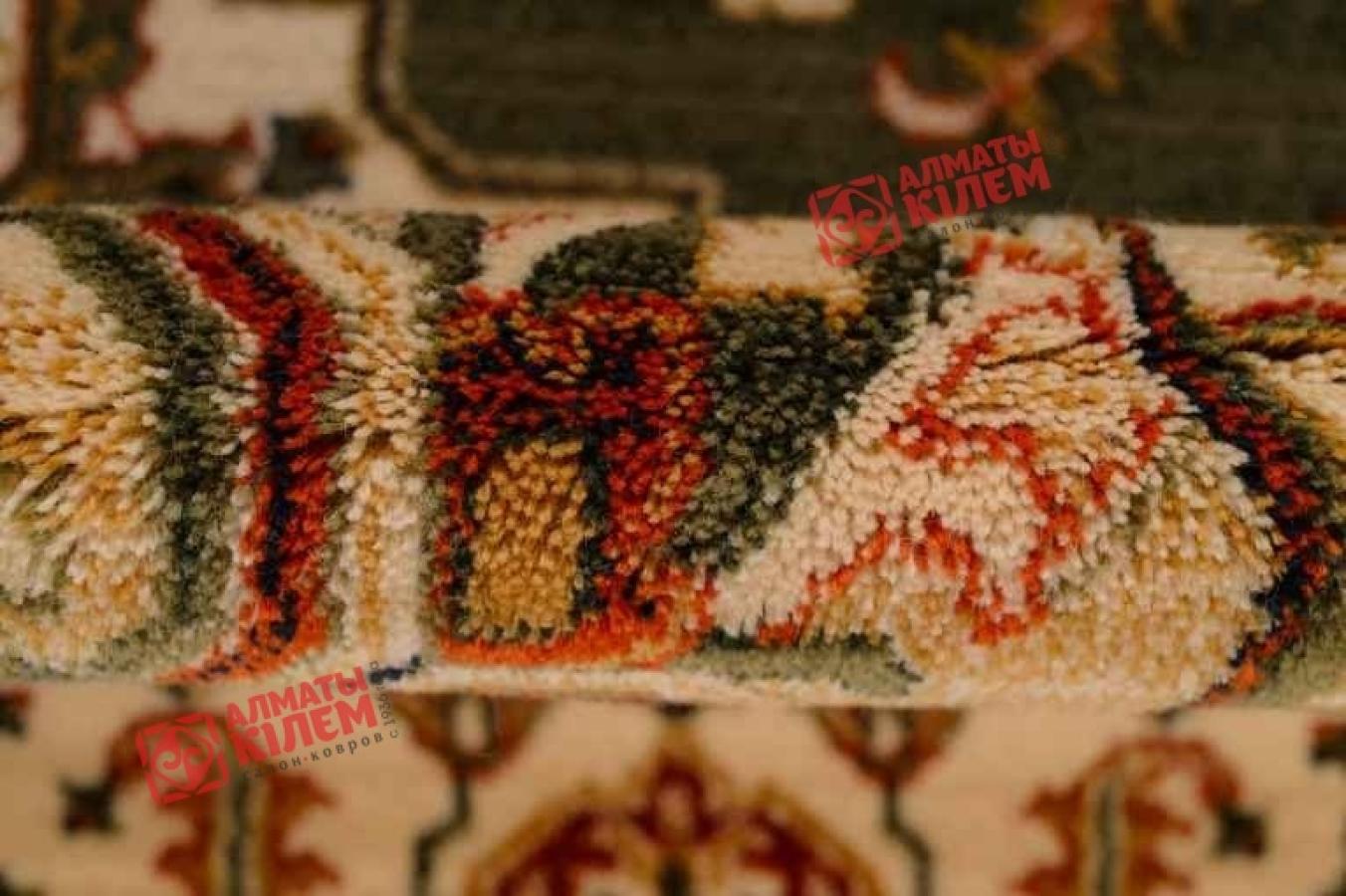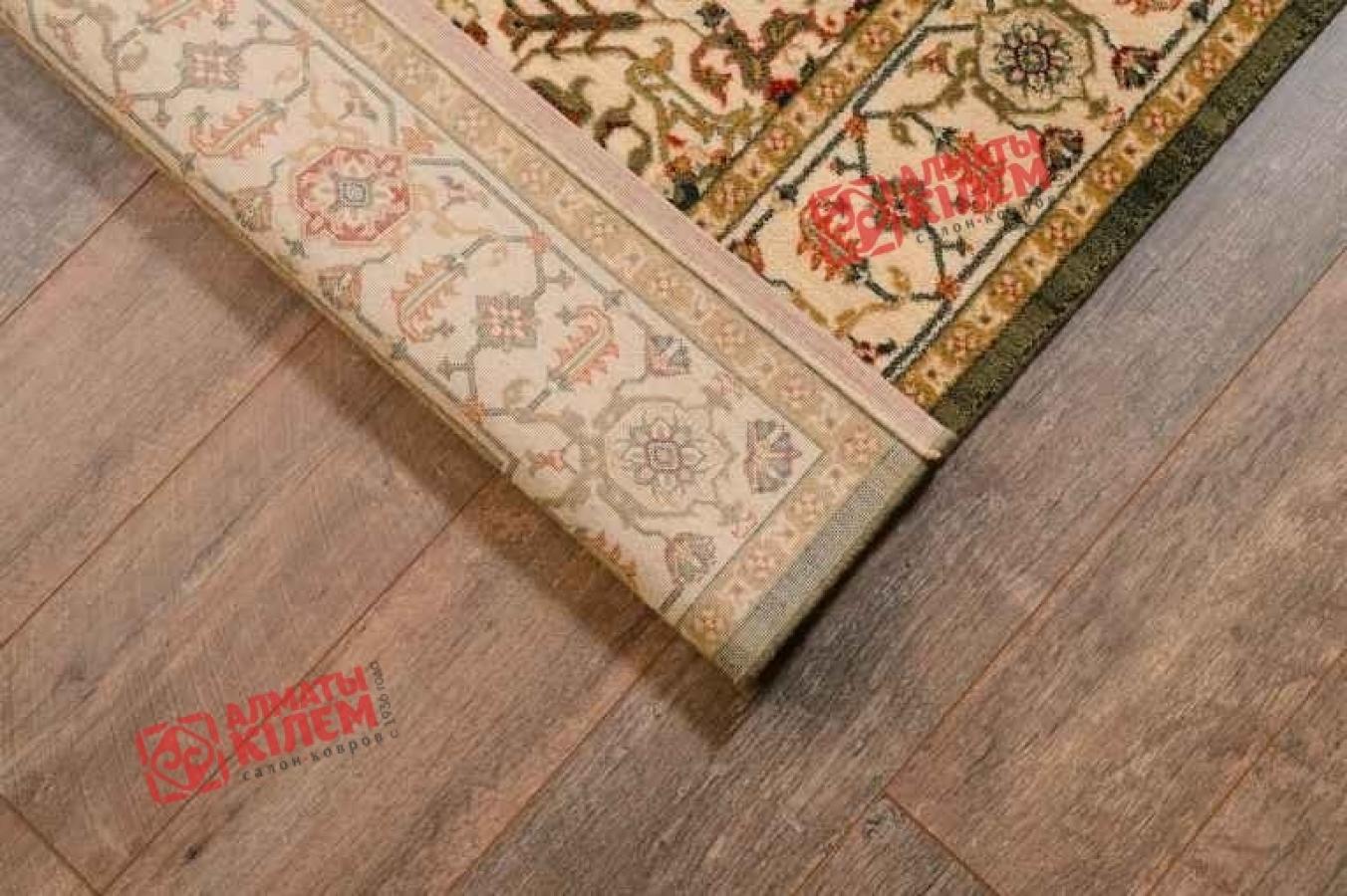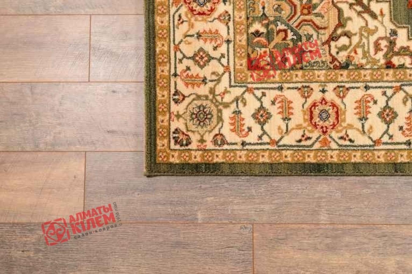 Классический шерстяной ковер с традиционным для персидского ковра узором станет идеальным решением для богато обставленных гостиных, спален, столовых, кухонь, прихожих, офисов, личных и рабочих кабинетов. Он придает интерьерам особую атмосферу уюта, комфорта. Его роскошная фактура с высоким ворсом прекрасно смотрится в сочетании с мебельными группами и может служить для зонирования, а также обособленно. Центральный медальон зеленого цвета с роскошной розеткой посередине обрамлен ажурным узором, переходящим в бордюр. Цветочный ковер декорирован флористическим узором, который разбавляет сдержанность дизайна, придавая покрытию особое очарование.