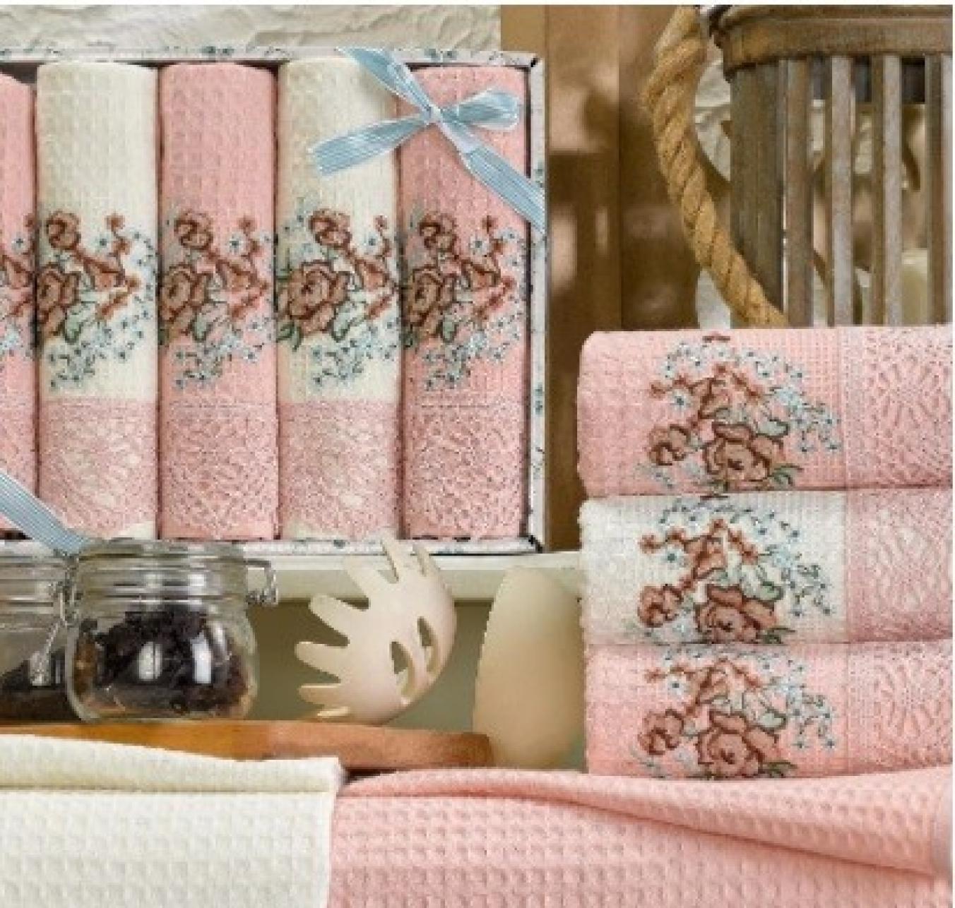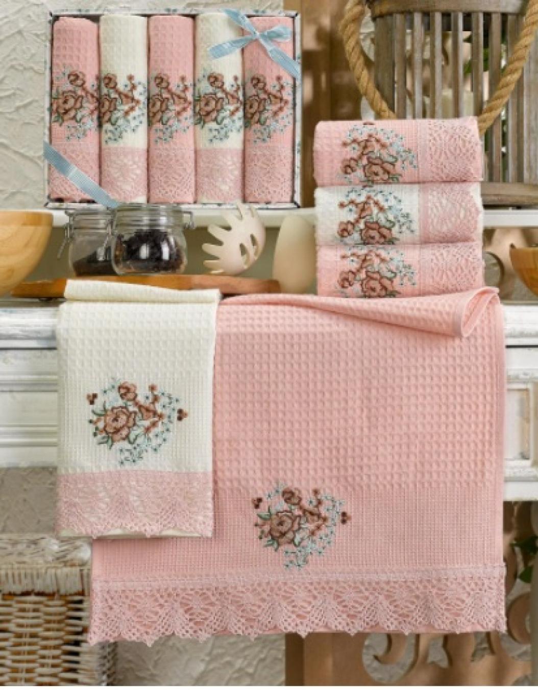 Набор вафельных полотенец Meteor от турецкого бренда TAC. Изделия выполнены в розовом и белом цвете, украшены вышивкой и гипюровым кружевом. В комплект входит пять полотенец. Все они изготовлены из натурального стопроцентного хлопка, не вызывающего аллергических реакций. Особое плетение придает полотенцам хорошую гигроскопичность и лишает высокой требовательности к уходу. Комплект продается в красивой упаковке. Это позволяет выбирать его в качестве подарка.
