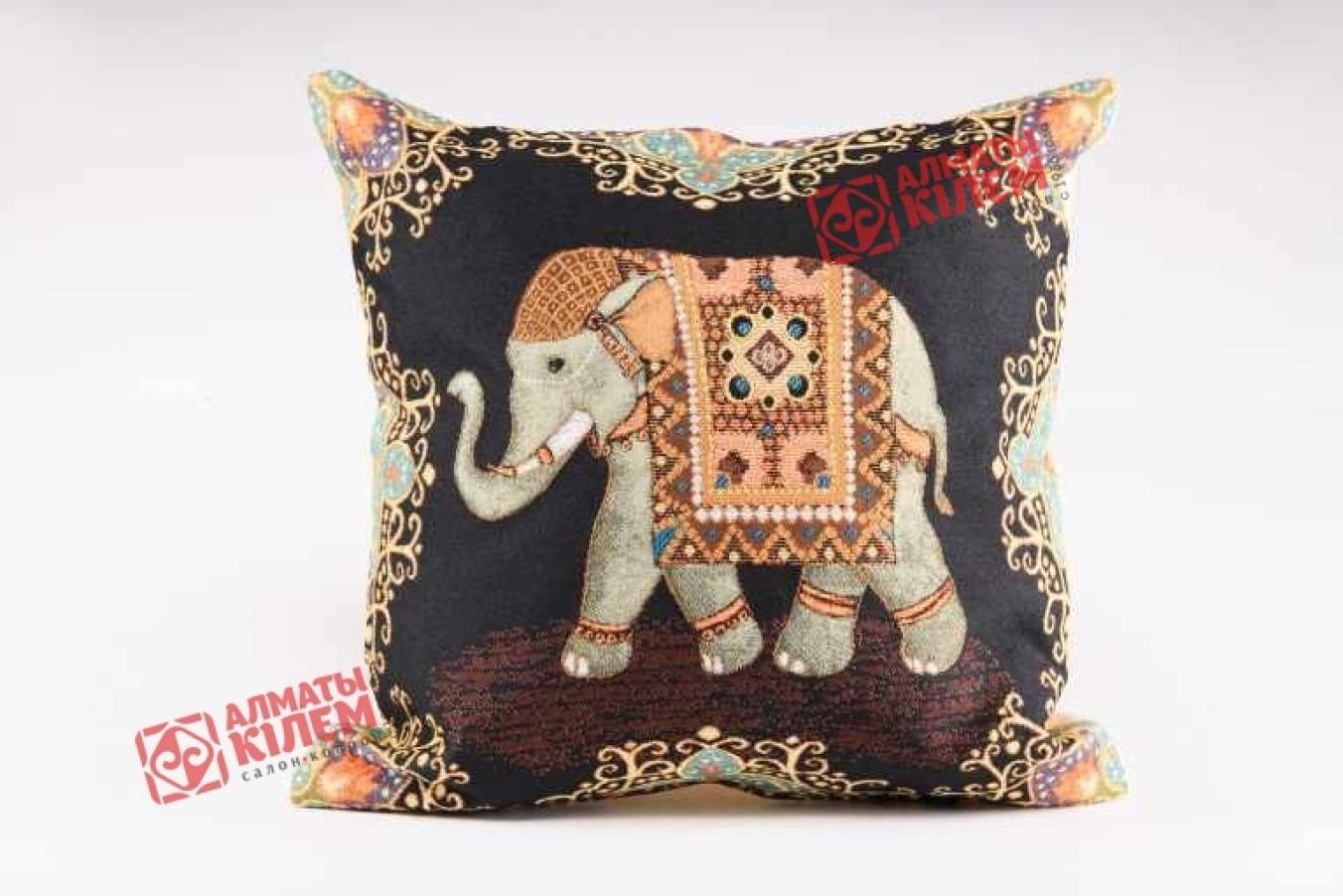 Оригинальная наволочка для декоративной подушки. На гобеленовом полотне изображен слон в красивом «одеянье». Седло расшито драгоценными камнями и покрыто индийскими узорами. Даже на бивнях красуются золотые кольца. Это величественное животное на черном фоне олицетворяет собой благополучие, разум и удачу. По краю наволочки пущена рамочка из характерных индийских узоров. Если в доме будет изображение слона, значит, удача будет на вашей стороне. Декоративная подушка с наволочной «Удача» идеально впишется практически в любой интерьер, но лучше всего будет смотреться в богато обставленной гостиной, спальне, холле или столовой, где обеденная группа дополнена диванчиком.
