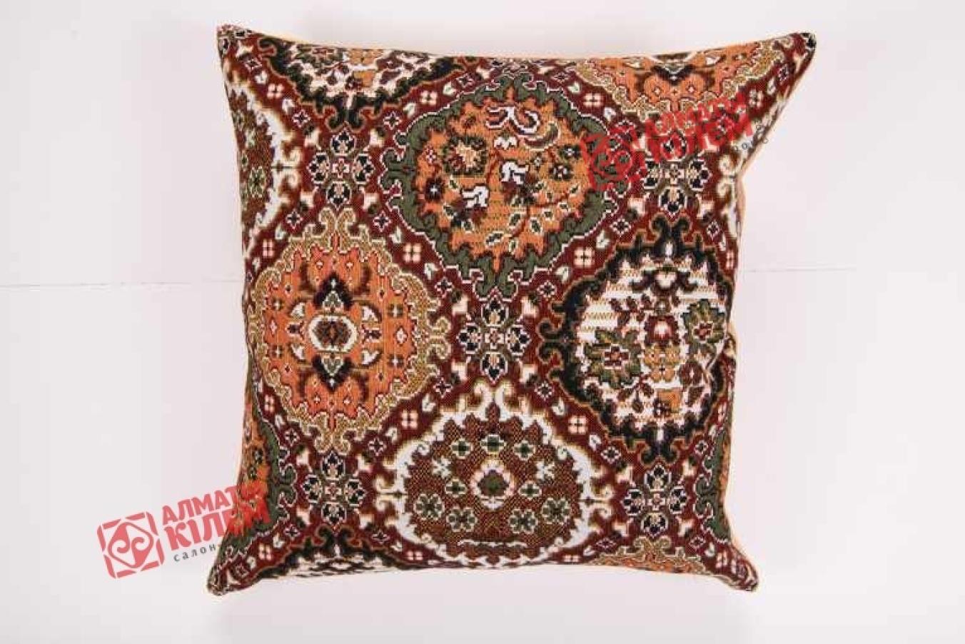Декоративная наволочка из гобеленовой ткани с оригинальным орнаментом. Рисунок сочетает множество оттенков, но смотрится утонченно и изысканно благодаря умелому и грамотному подбору цветовой палитры. Узоры представляют собой розетки, напоминающие те, которыми украшают дорогие персидские ковры. Гобелен высоко ценится за свои декоративные свойства и простоту в уходе. Он практически не вбирает пыль и устойчив к загрязнениям. Такой текстиль будет великолепно смотреться в богато обставленном интерьере гостиной, спальни, столовой, холла. Идеальным вариантом станет комната с коврами на полу, множеством декоративных элементов, с мягкой мебелью. Стиль может быть практически любой.