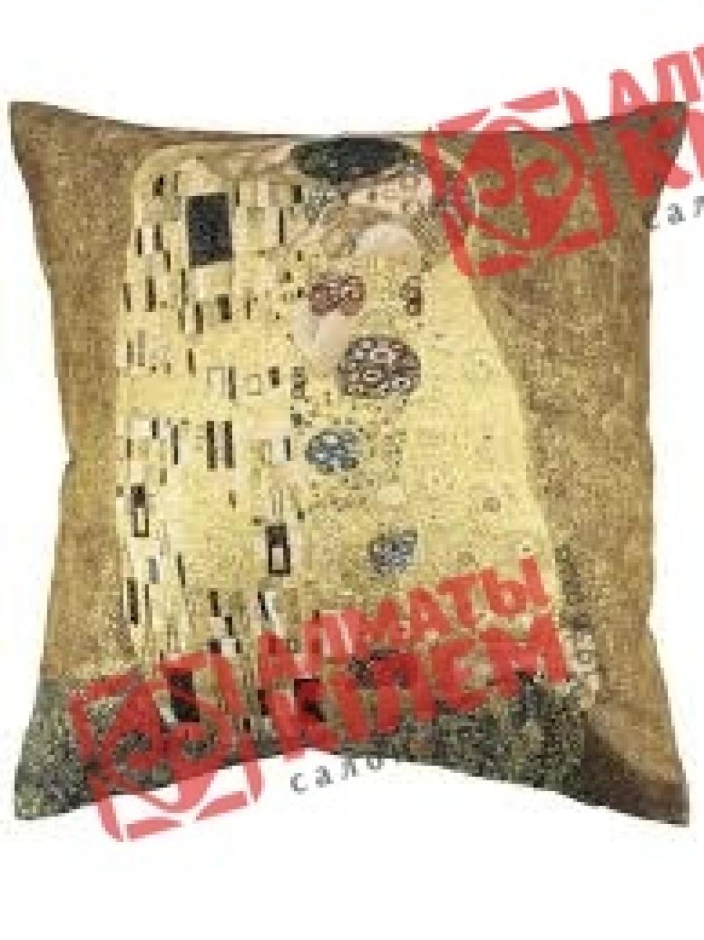 Изысканная и роскошная декоративная наволочка из гобеленовой ткани. На полотне изображена картина Густава Климта «Поцелуй», Имитация подобно оригиналу выполнена полностью в золотых тонах. Декор станет прекрасным украшением богато обставленной гостиной или спальной комнаты. Он становится главным акцентным элементом, который прекрасно сочетается с массивной мебелью из натурального дерева, обивкой из кожи, дорогой отделкой стен и пола. Подушка, «одетая» в такую наволочку, может быть одной единственной с декором в окружении шелковых или гобеленовых однотонных и без рисунка. Она будет идеально сочетаться с золотым, черным, стальным оттенками.