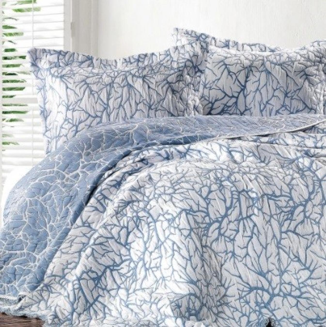 Роскошное покрывало производства Турция станет великолепным украшением спальни как в классическом, так и в современно стиле. Выполнено оно из смесового волокна — полиэстера и хлопка. Синтетическая примесь позволяет добиться высокой устойчивости к износу, упростить уход за изделием. Покрывало выполнено в синей палитре с роскошным рисунком, полностью соответствующим названию модели «Zebra Casa». Оно отлично сочетается с аналогичным комплектом постельного белья от бренда TAC.